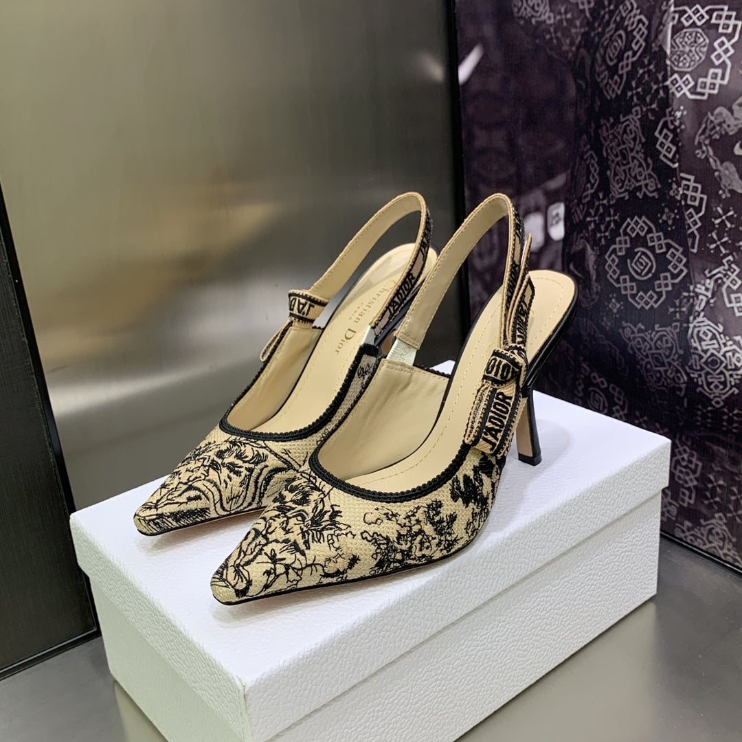 Décolleté JAdior Slingback 95 in cotone ricamato nero con filo metallico color oro