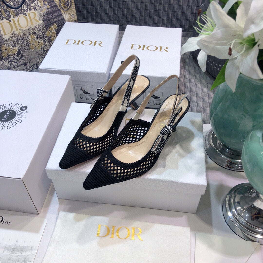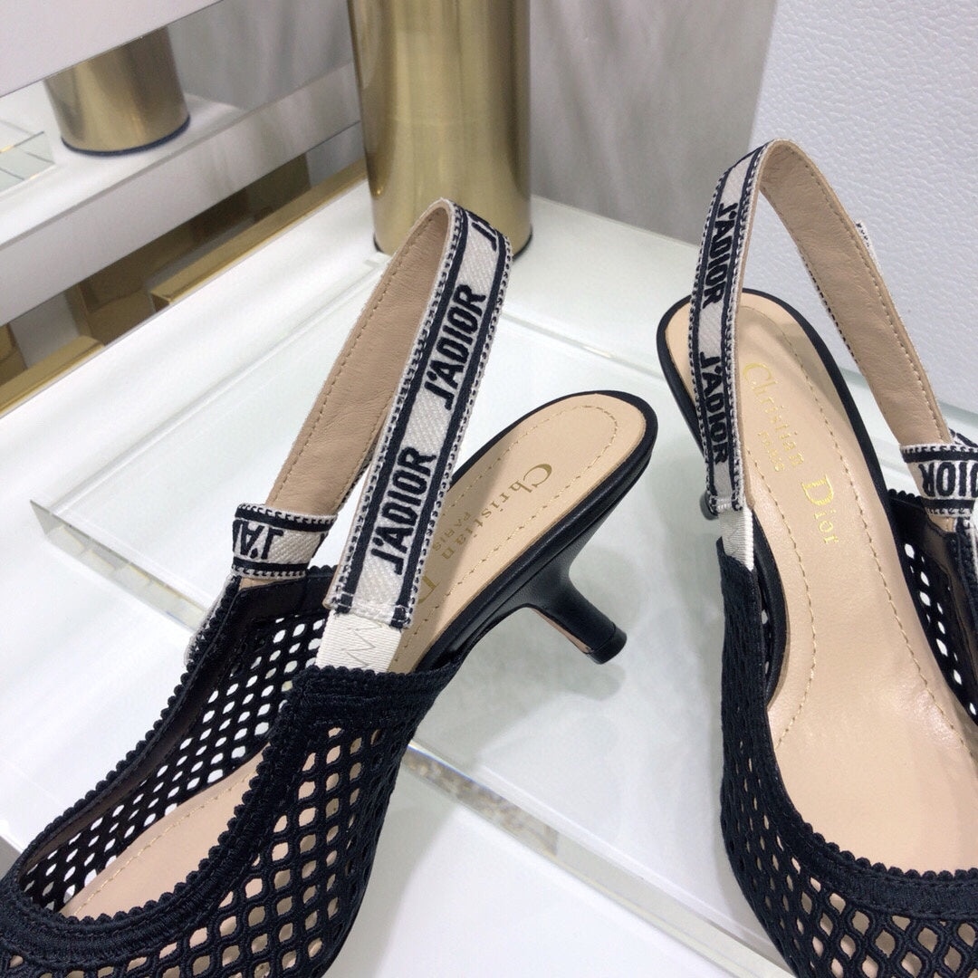 Décolleté JAdior slingback 65 in rete trasparente nera in cotone ricamato