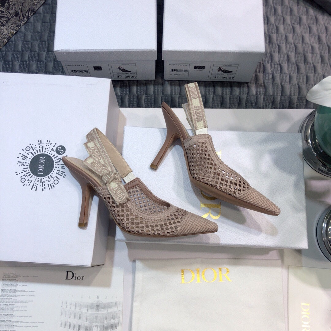 Décolleté JAdior con cinturino posteriore 95 in rete trasparente rosa cannella in cotone ricamato