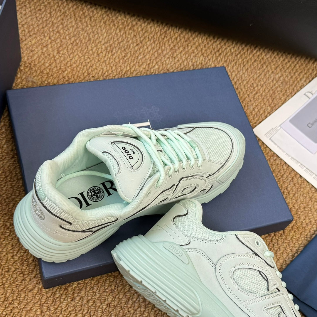 Sneaker CD e Stone Island B30 in pelle di vacchetta turchese chiaro e tessuto a rete in poliestere