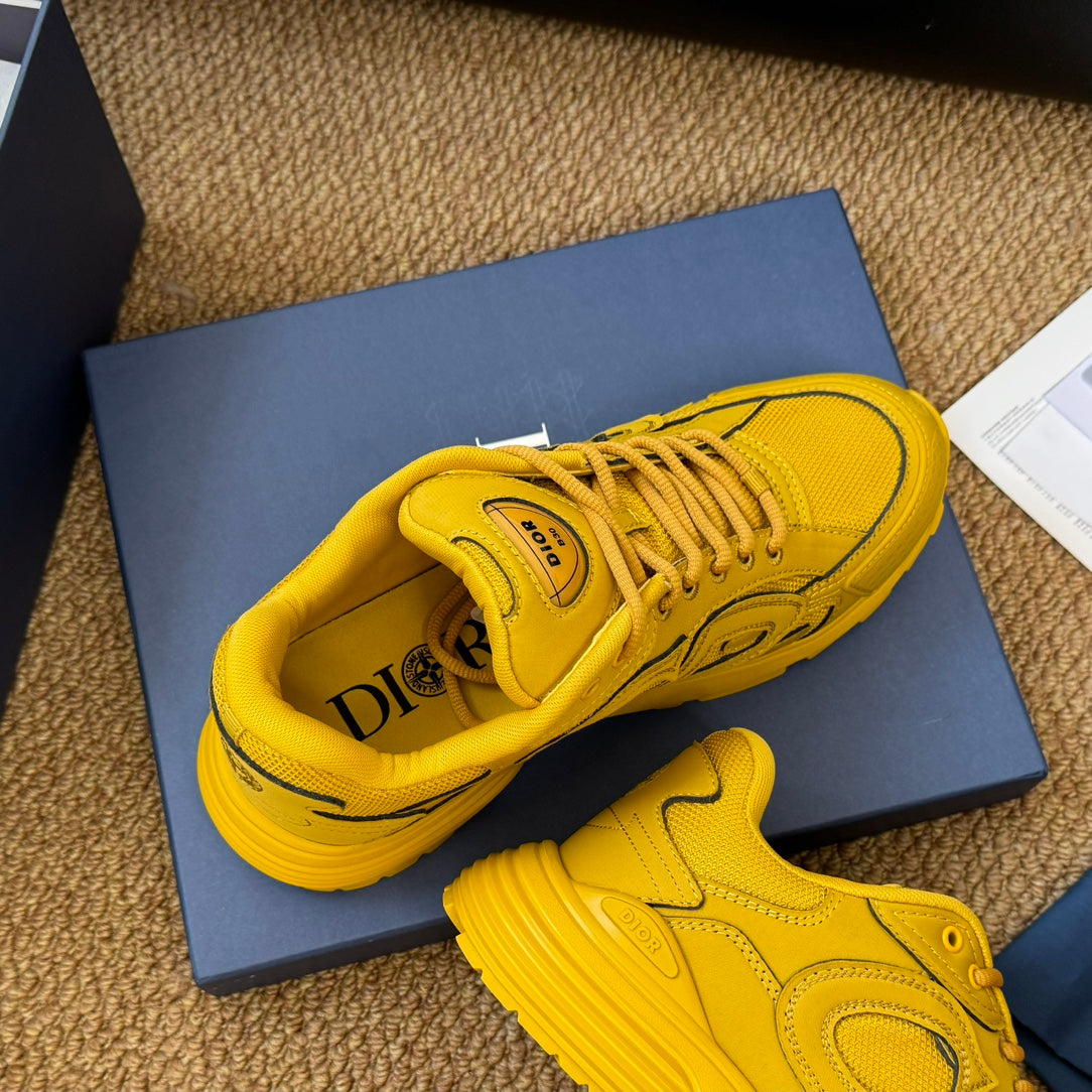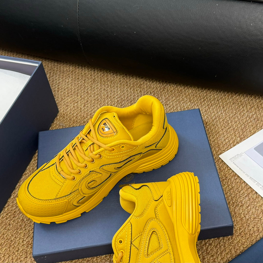 Sneaker CD e Stone Island B30 in pelle di vacchetta gialla e tessuto a rete in poliestere