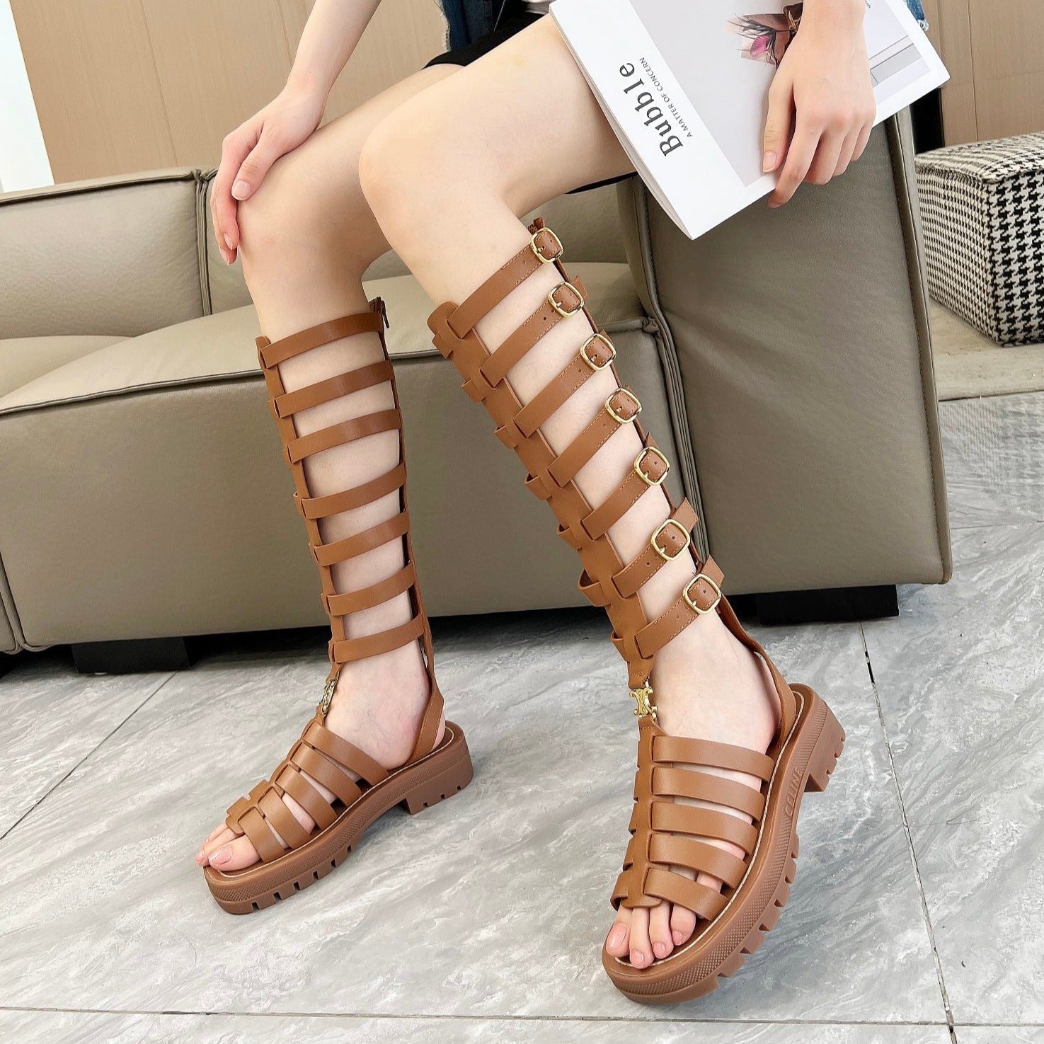Stivali alti Triomphe con fibbie in pelle color marrone pan di zenzero
