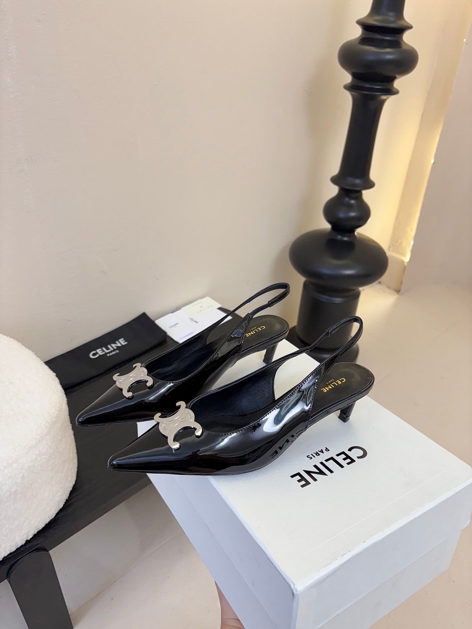 CELINE Alma Triomphe Slingback in pelle di vitello verniciata nera 235705