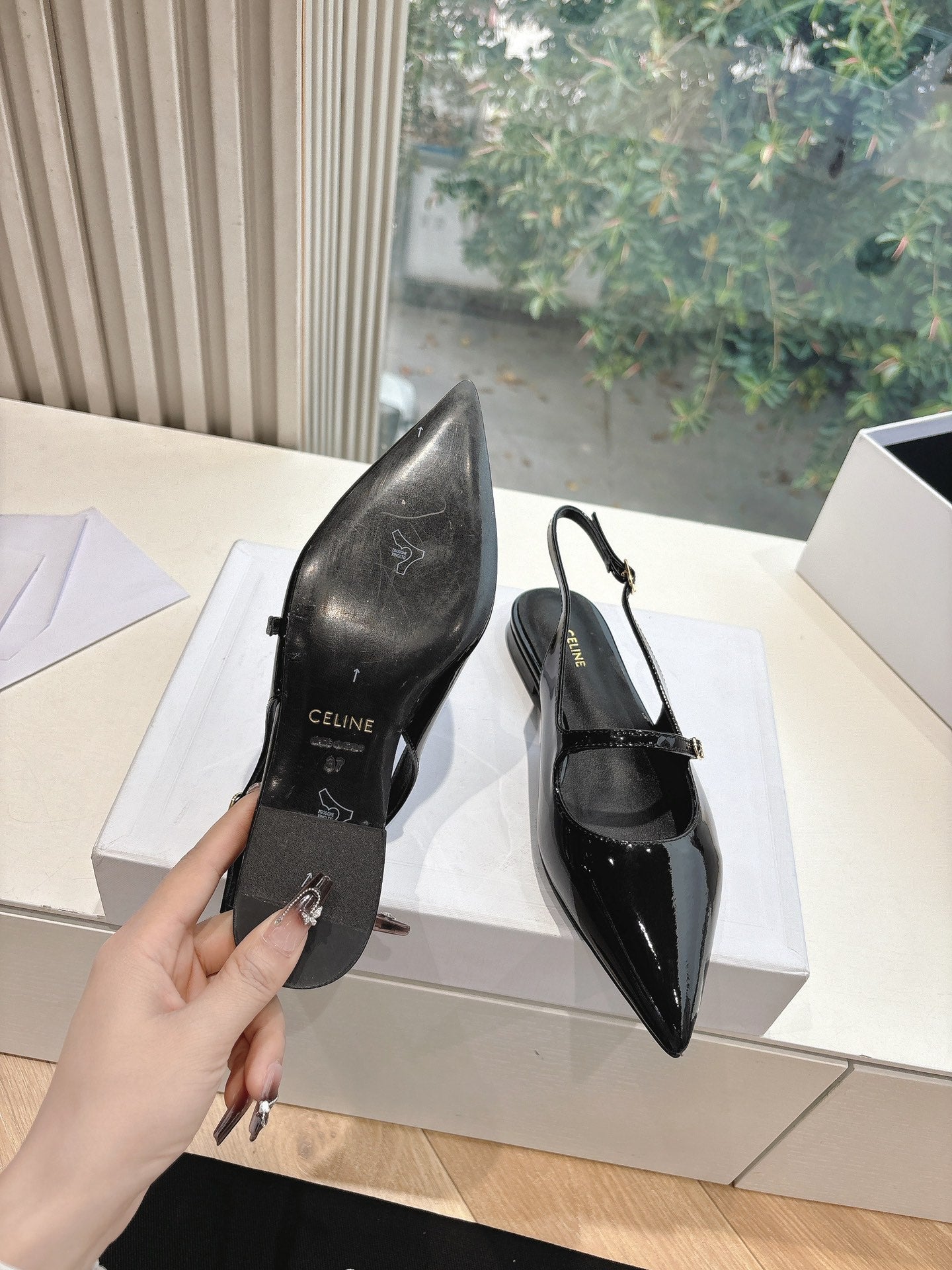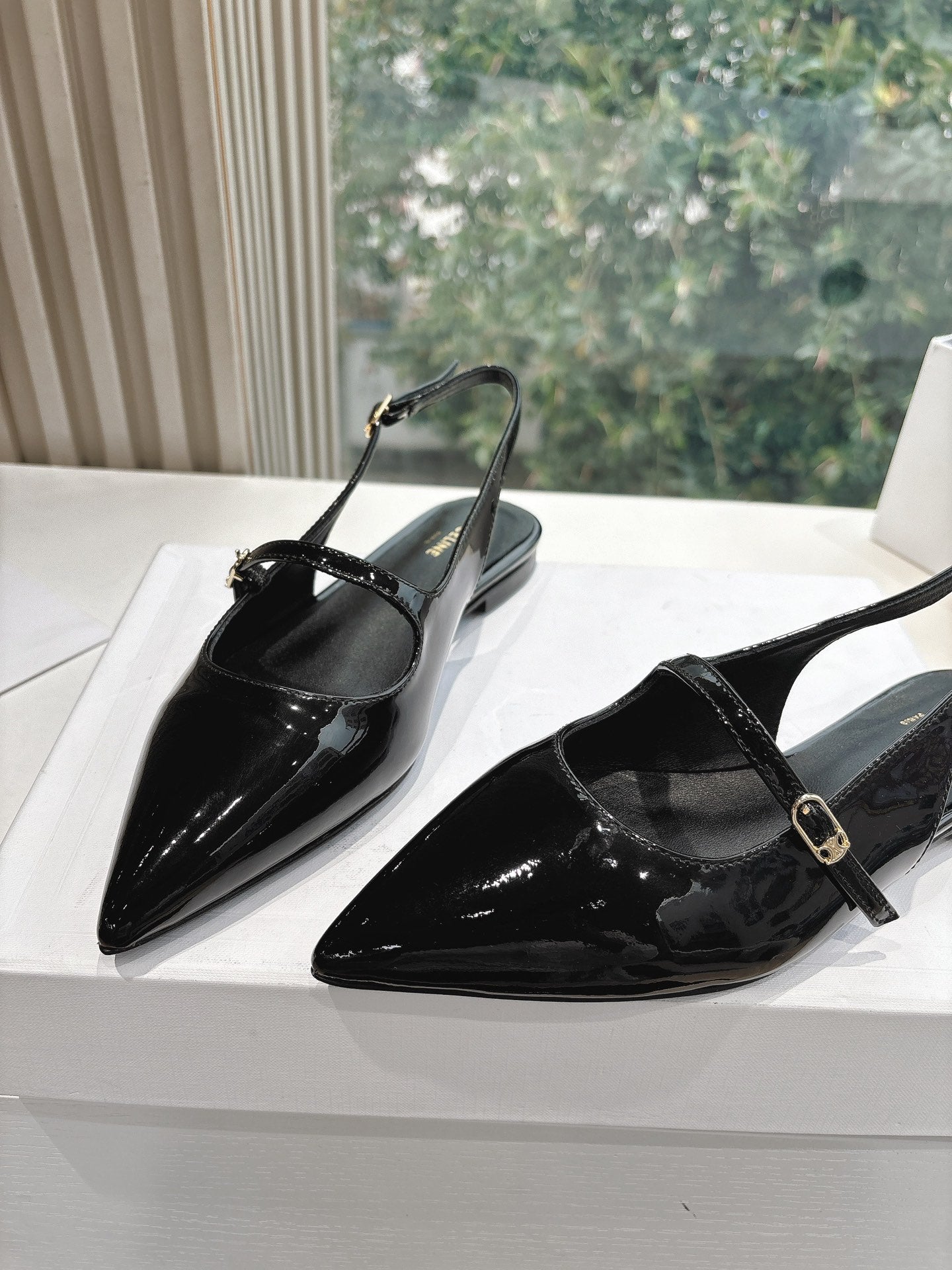 CELINE Slingback in pelle verniciata nera 285952