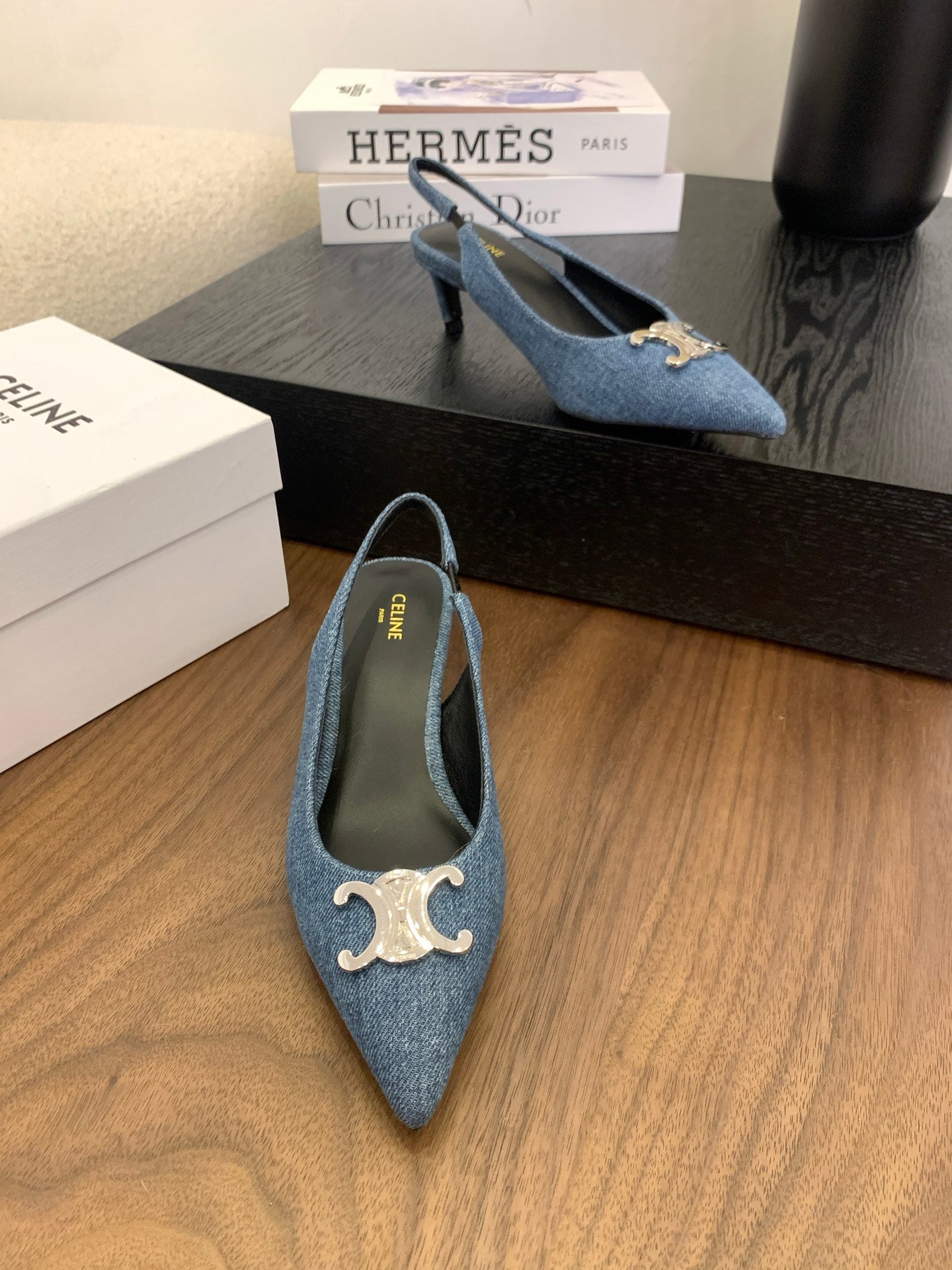 CL Alma Triomphe Slingback 50mm In Denim Blu 318794