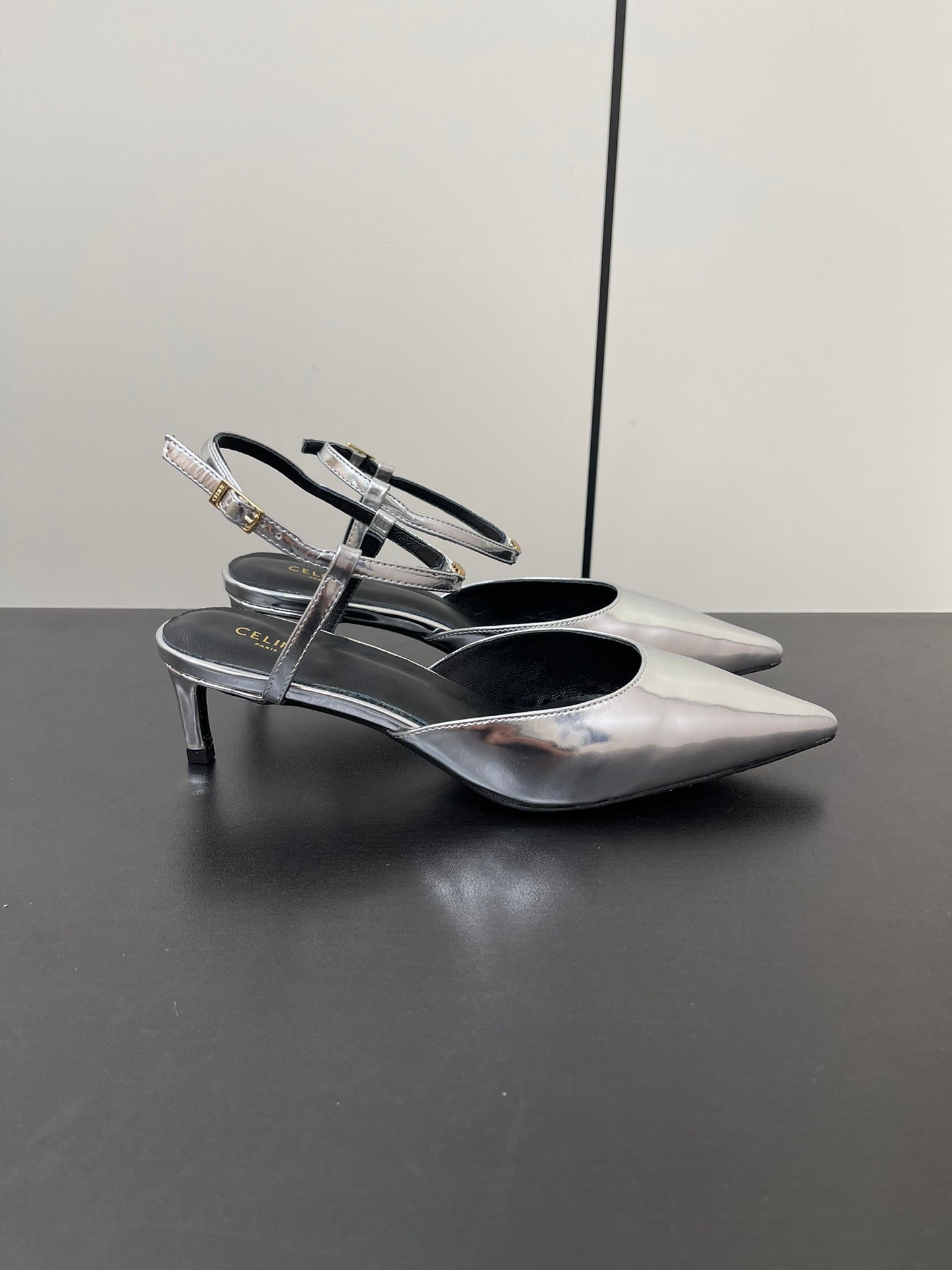 DÉCOLLETÉ MORRAINE CON CINTURINO IN PELLE DI VITELLO ARGENTO