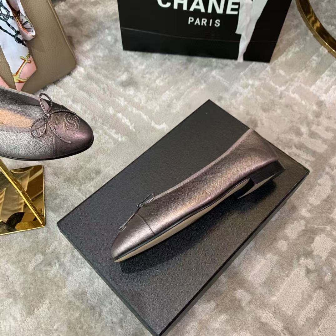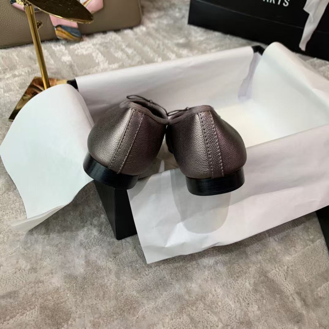 Ballerina in pelle di vitello martellata color cioccolato grigio