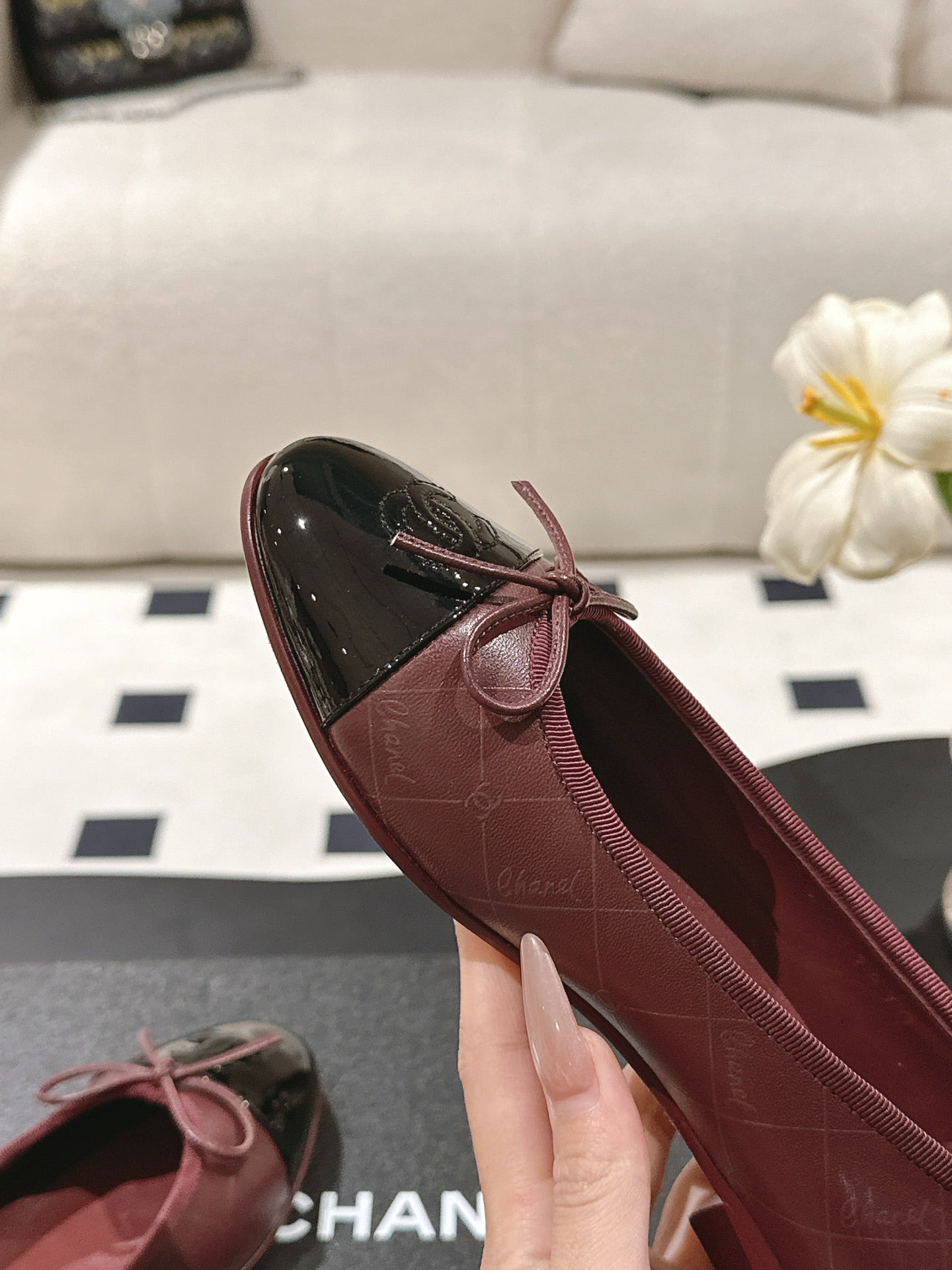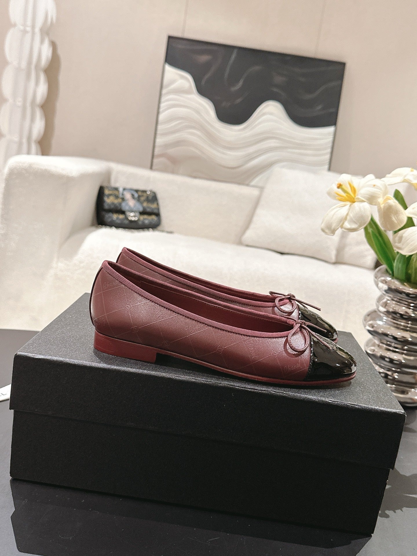 cc 25c ballerina con motivo a linee incrociate in pelle di agnello bordeaux 237483