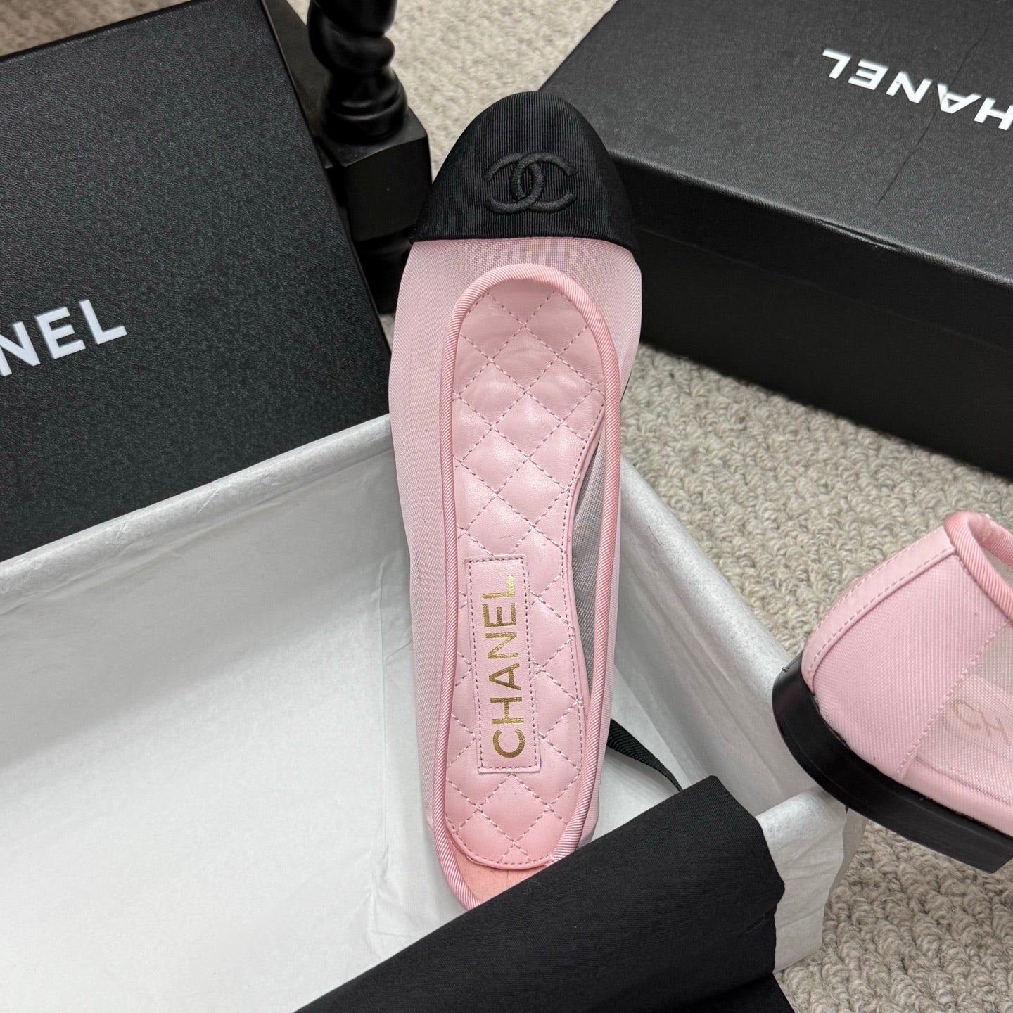 CC 25p Ballerina in tessuto a rete rosa grosgrain
