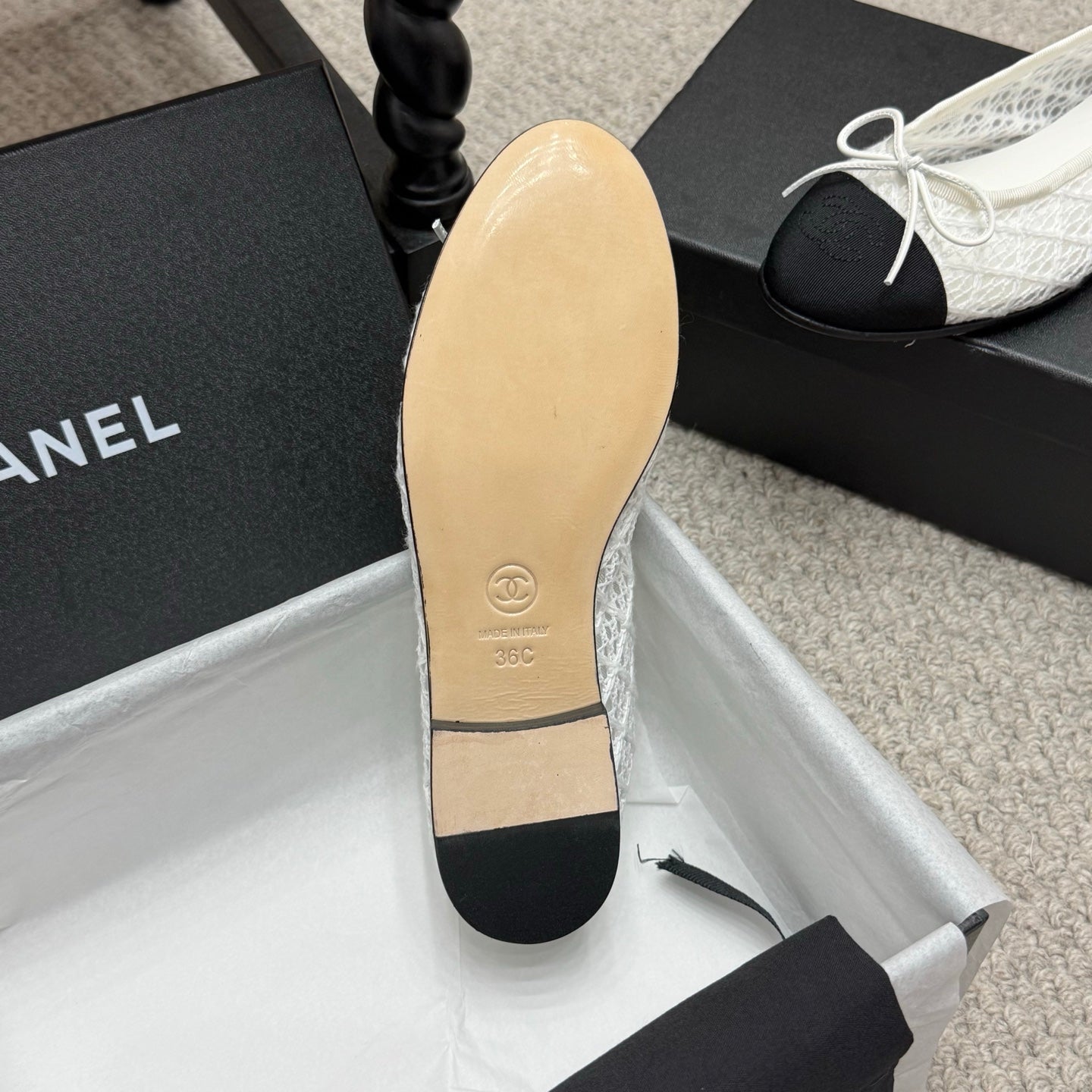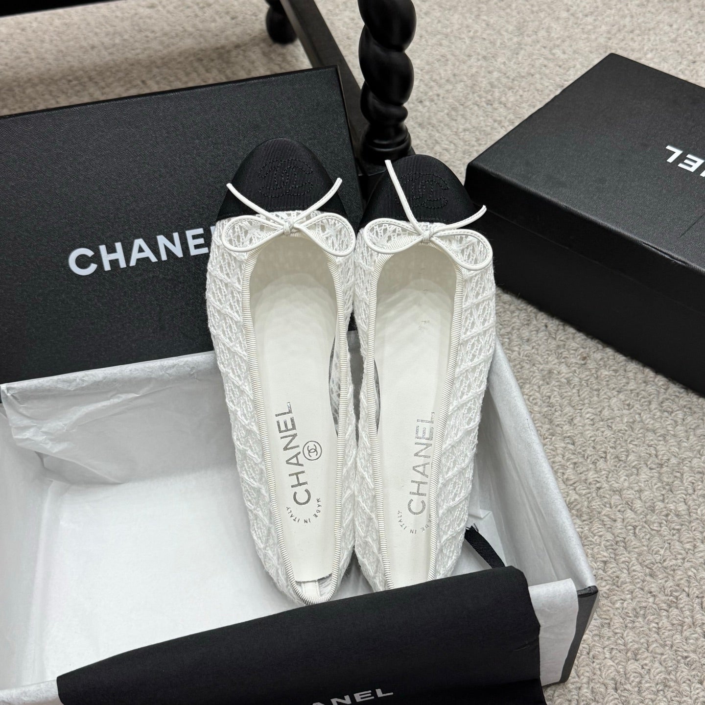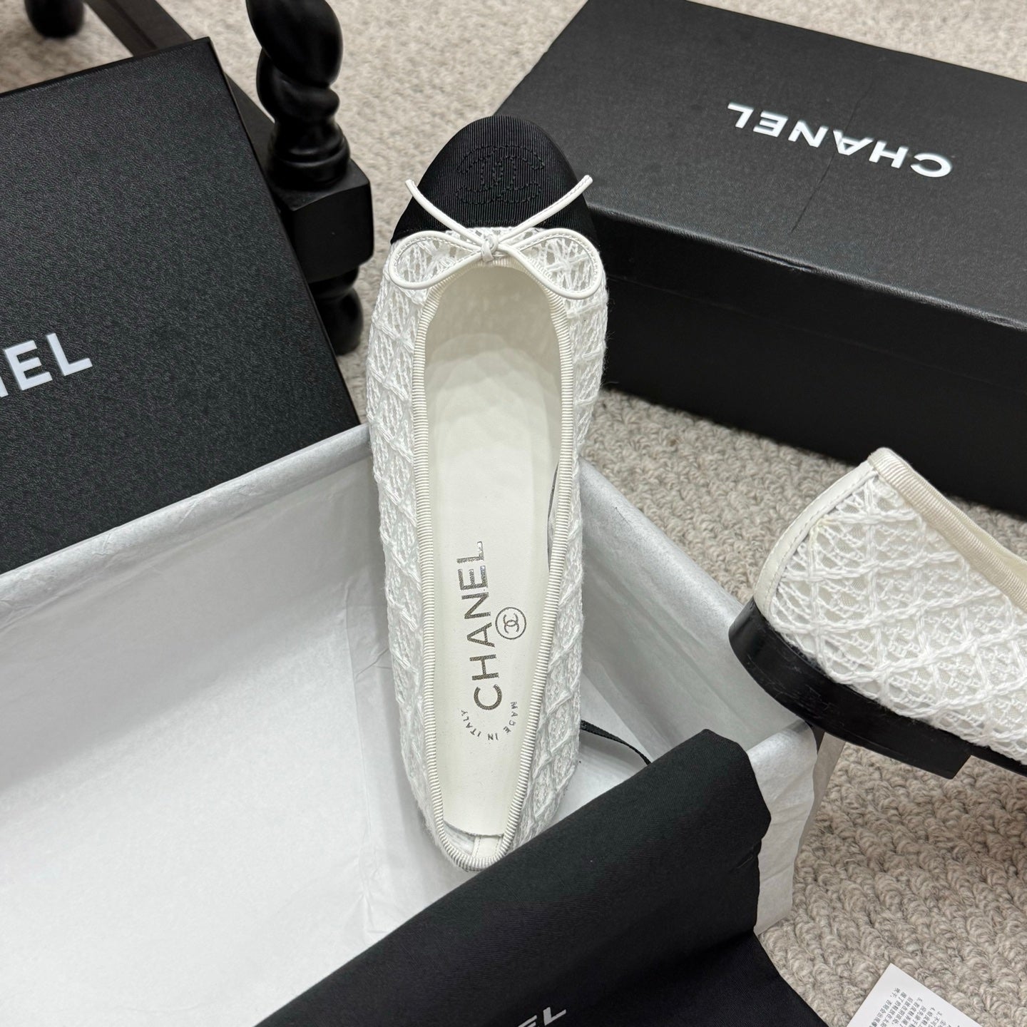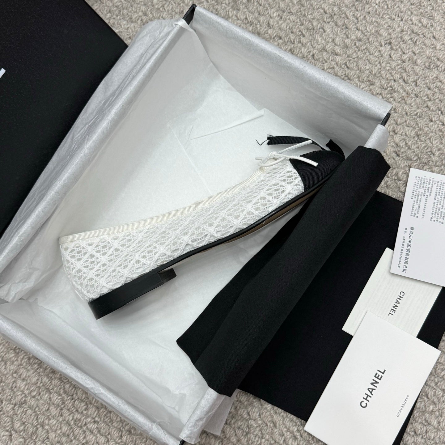 CC 25p Ballerina in tessuto di cotone a rete bianco grosgrain