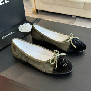 BALLERINA IN PELLE SCAMOSCIATA NERA CON FIOCCO BIANCO