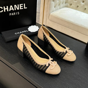 CC 25P Tacco da ballerina 50mm Nero Beige Rafia Grande Logo