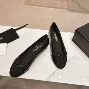 BALLERINA IN PELLE NERA CON FIOCCO BIANCO