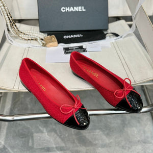 ballerina in tweed rosso in pelle di vitello verniciata nera
