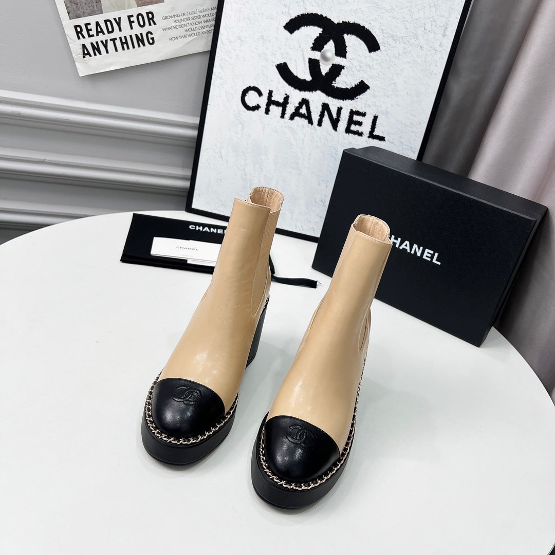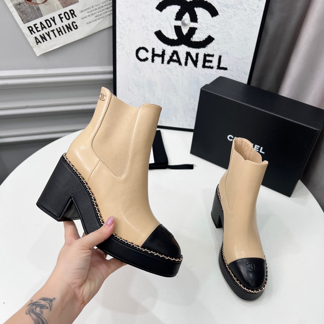 CC 25 Stivaletti Chelsea con catena 85mm Beige Nero Pelle di pecora 374034