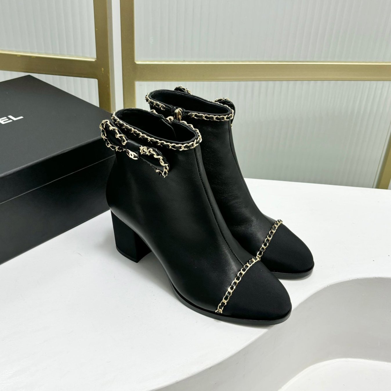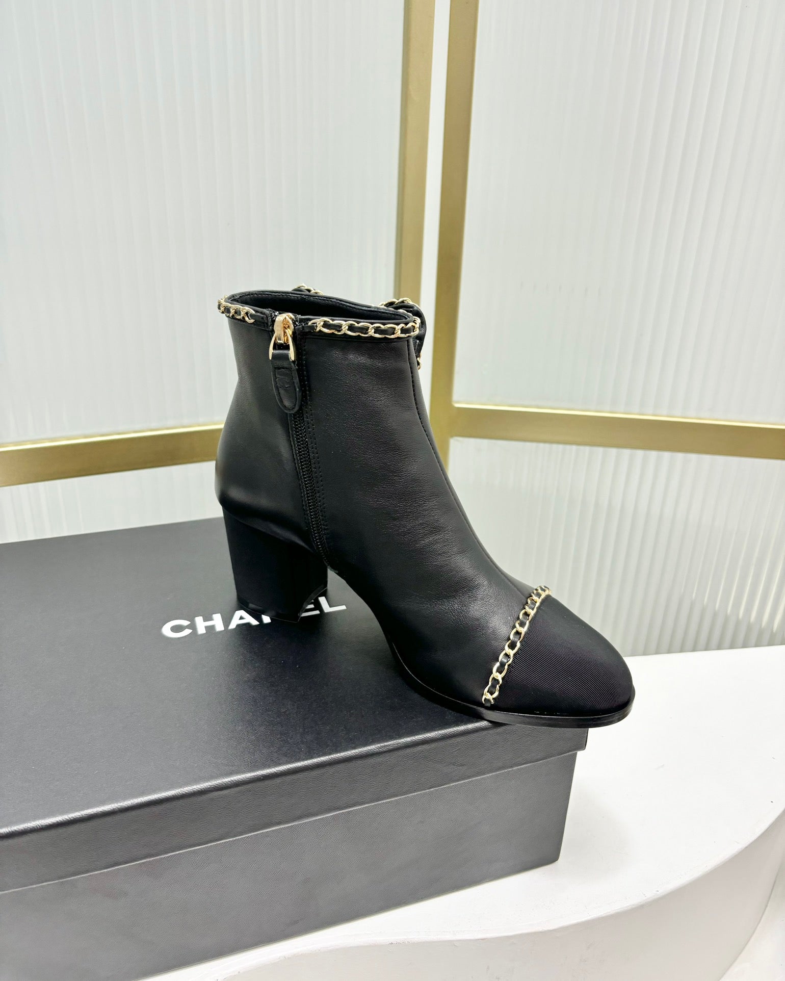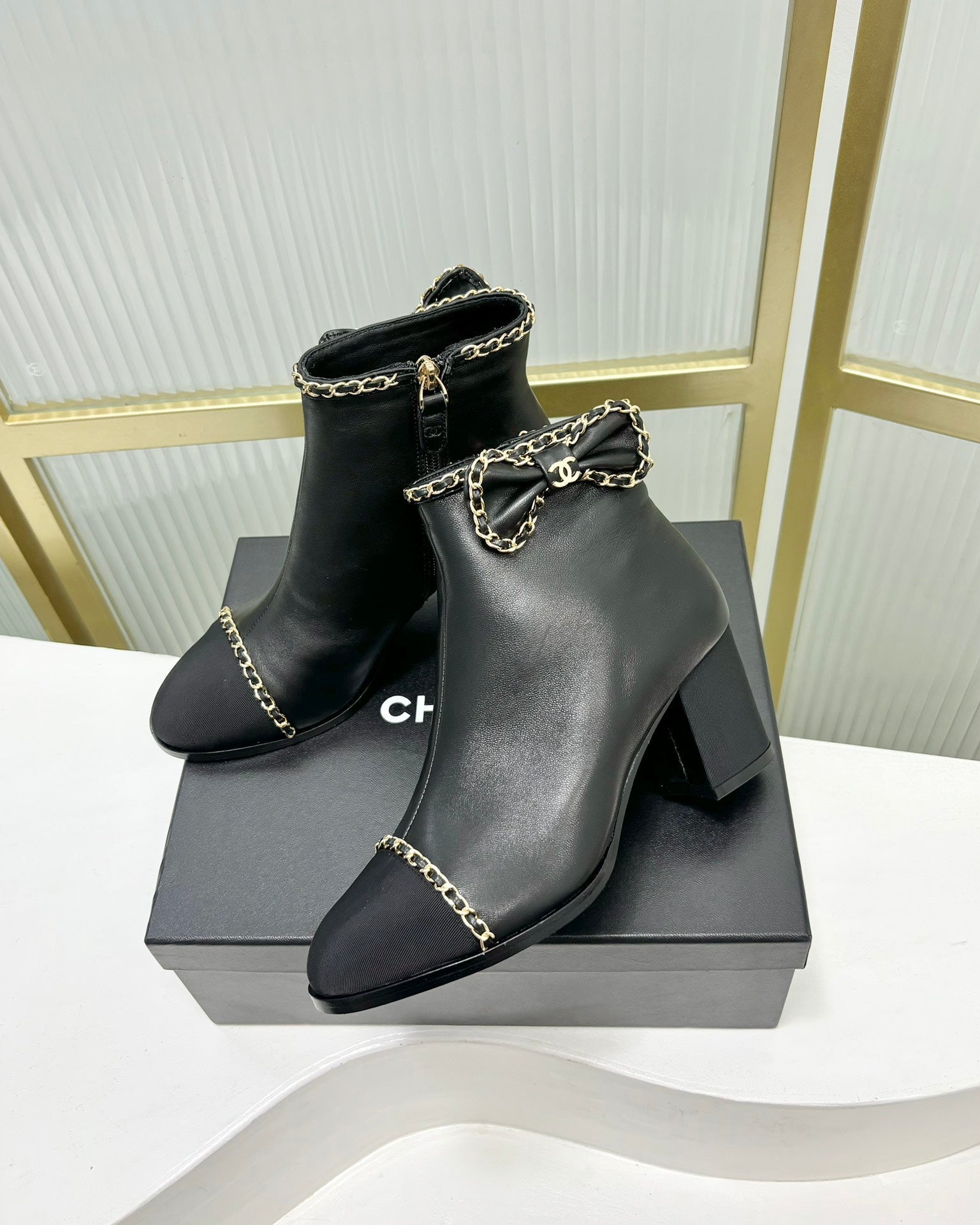 Stivaletto CC 65 in vitello nero con cinturino in pelle grosgrain
