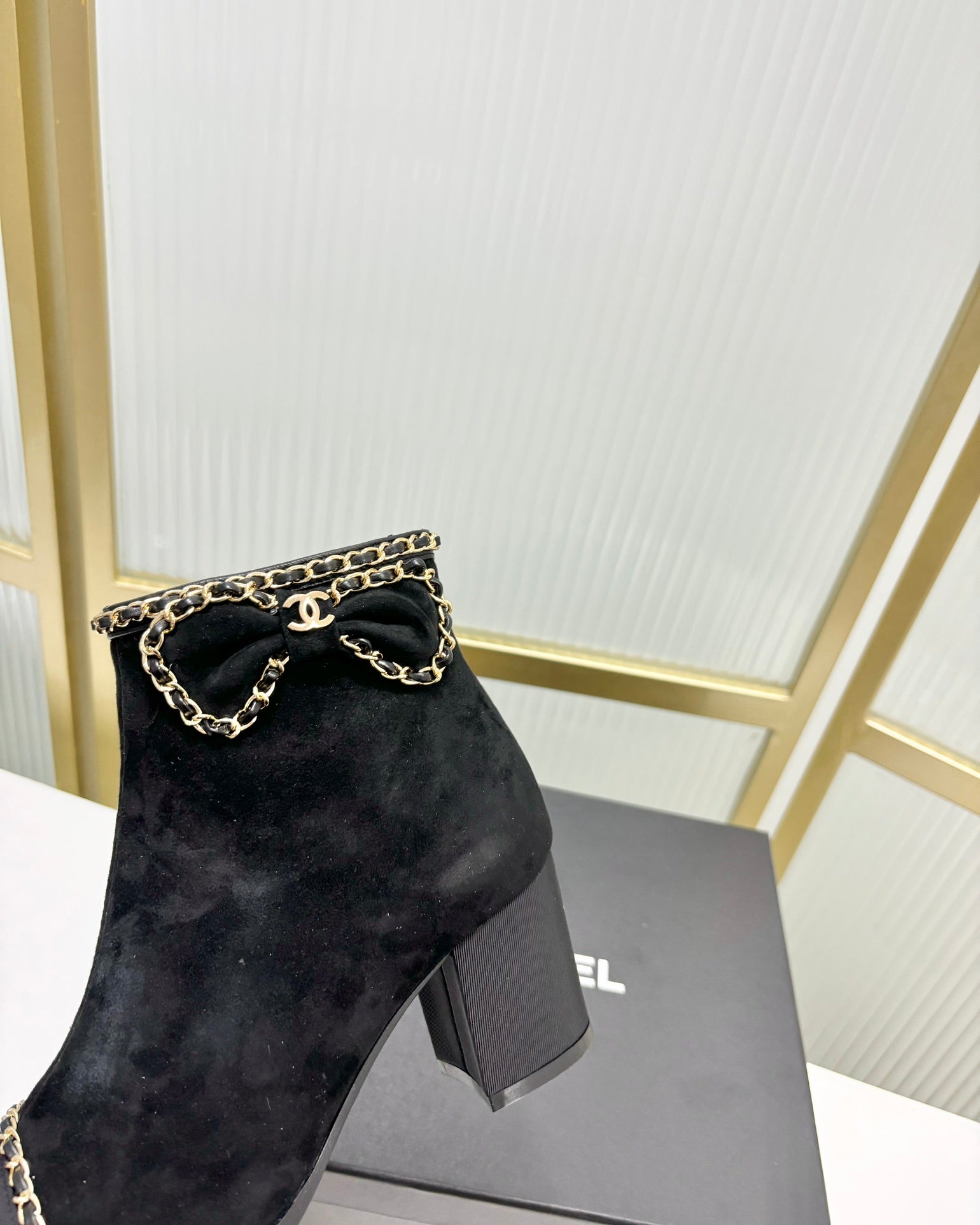 Stivaletto CC 65 in pelle scamosciata nera con cinturino in grosgrain