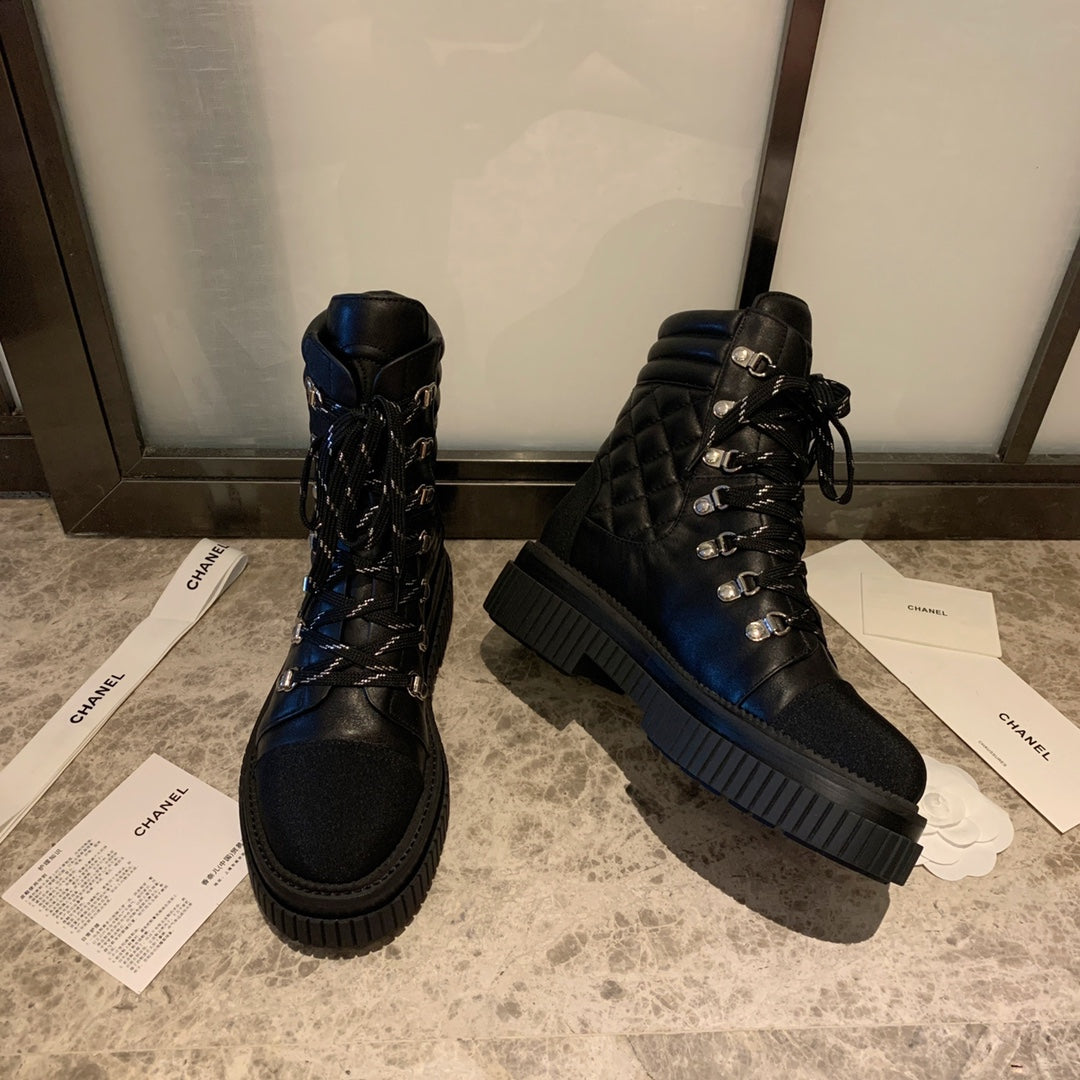Stivali da combattimento CC 50mm in pelle di vitello nera trapuntata e tessuto in lycra 940072