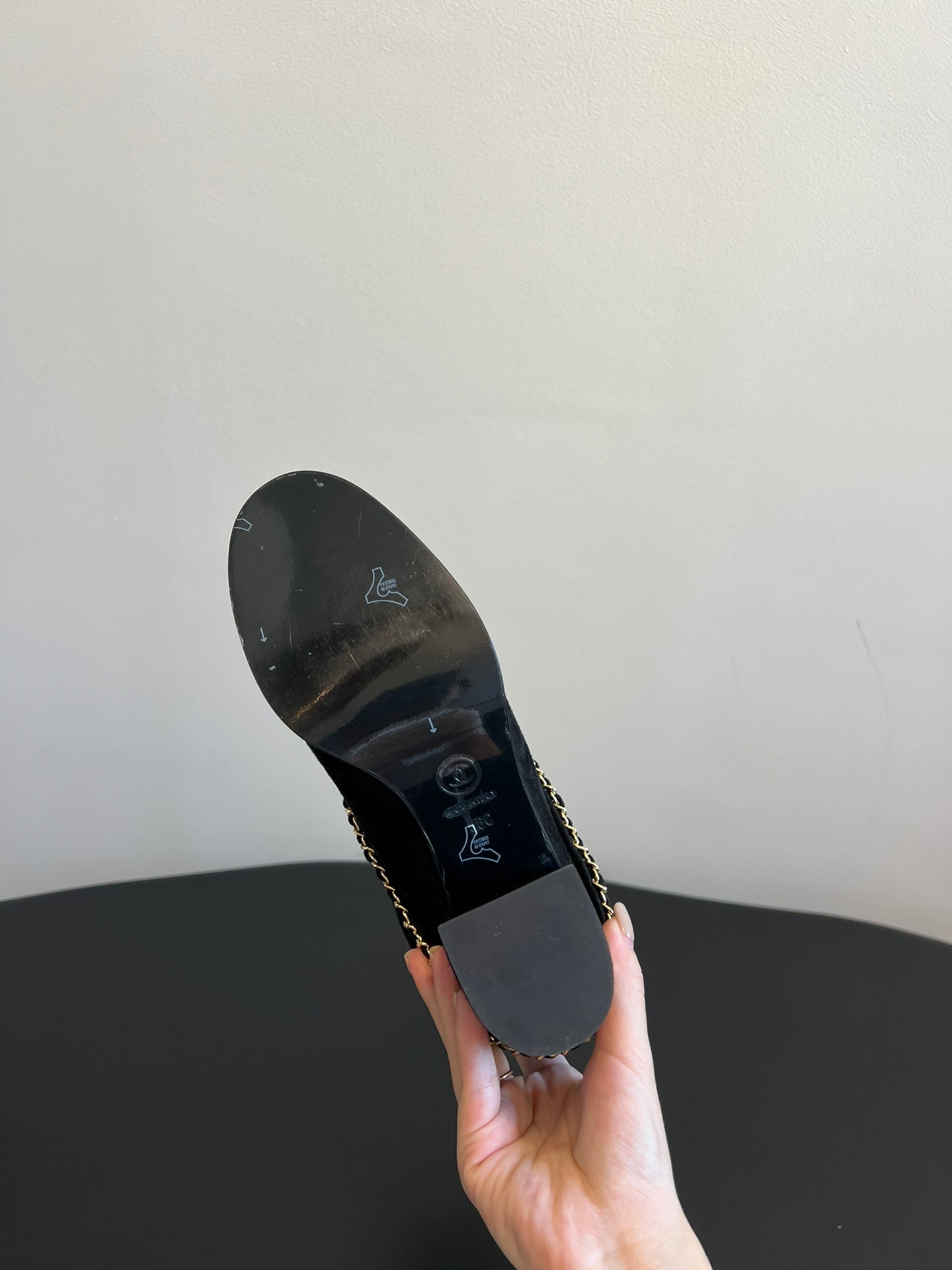 Stivali corti CC neri con catena in pelle scamosciata e vacchetta 944963