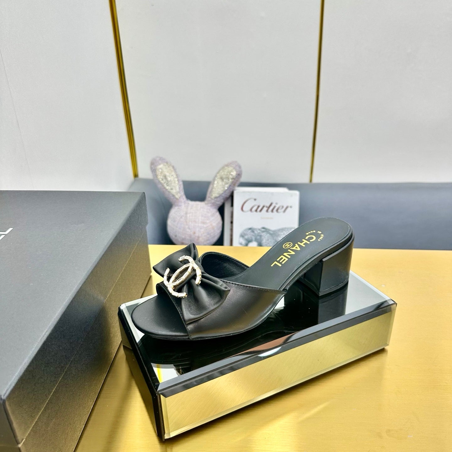 cc 25 sandalo mulo fiocco 50mm pelle di pecora nera 238478