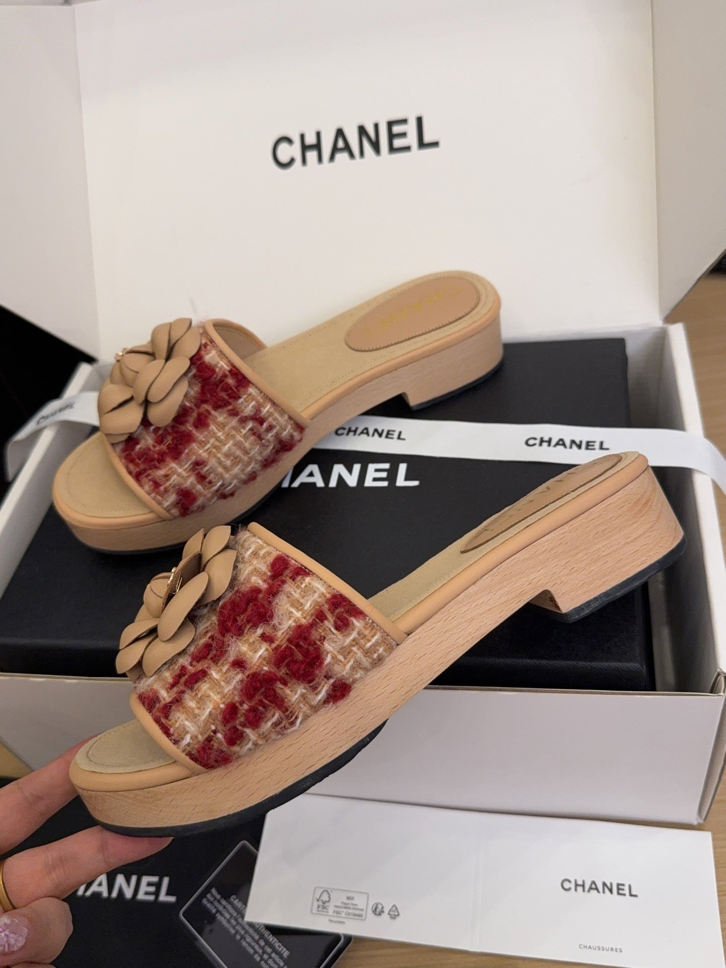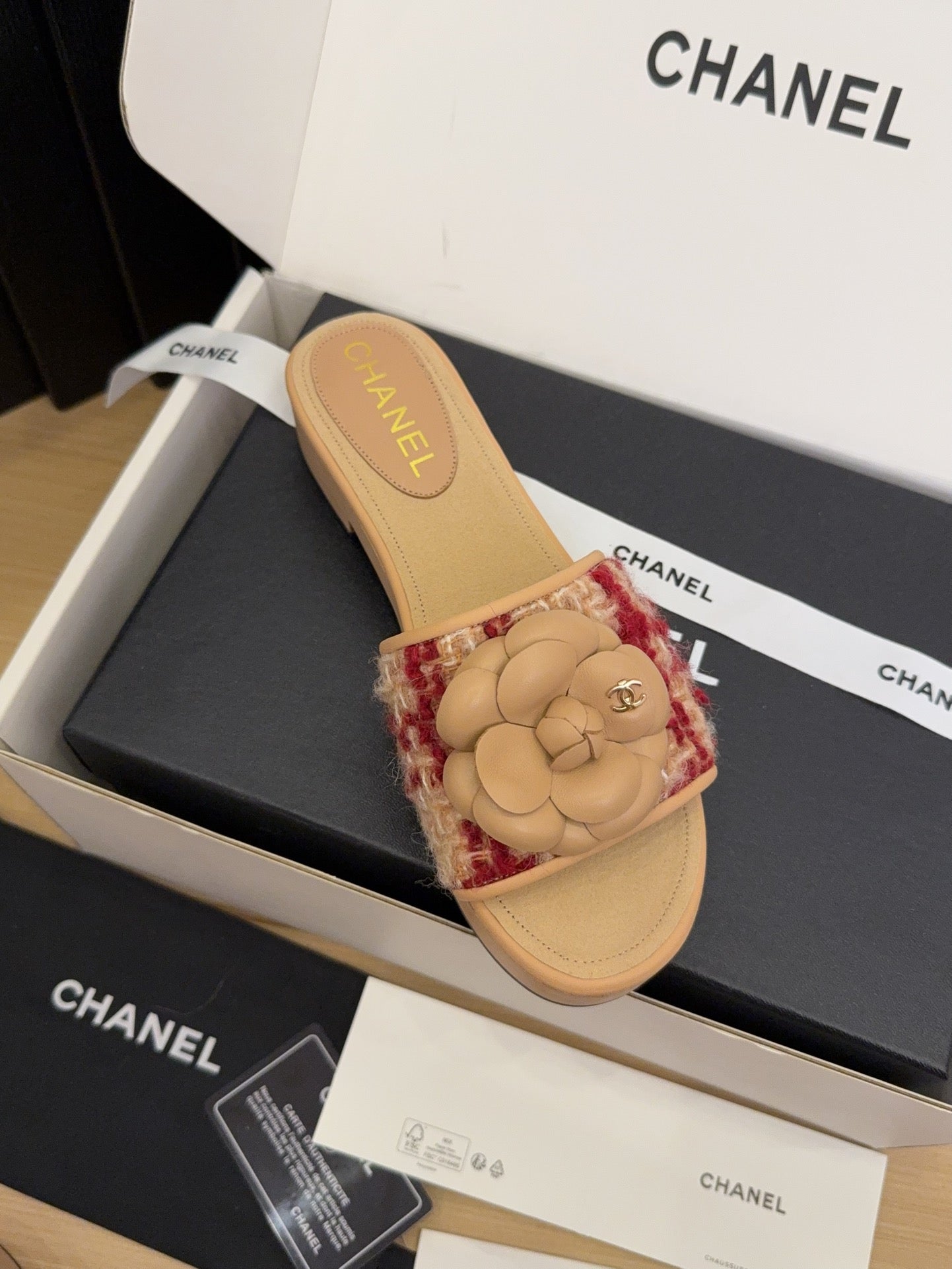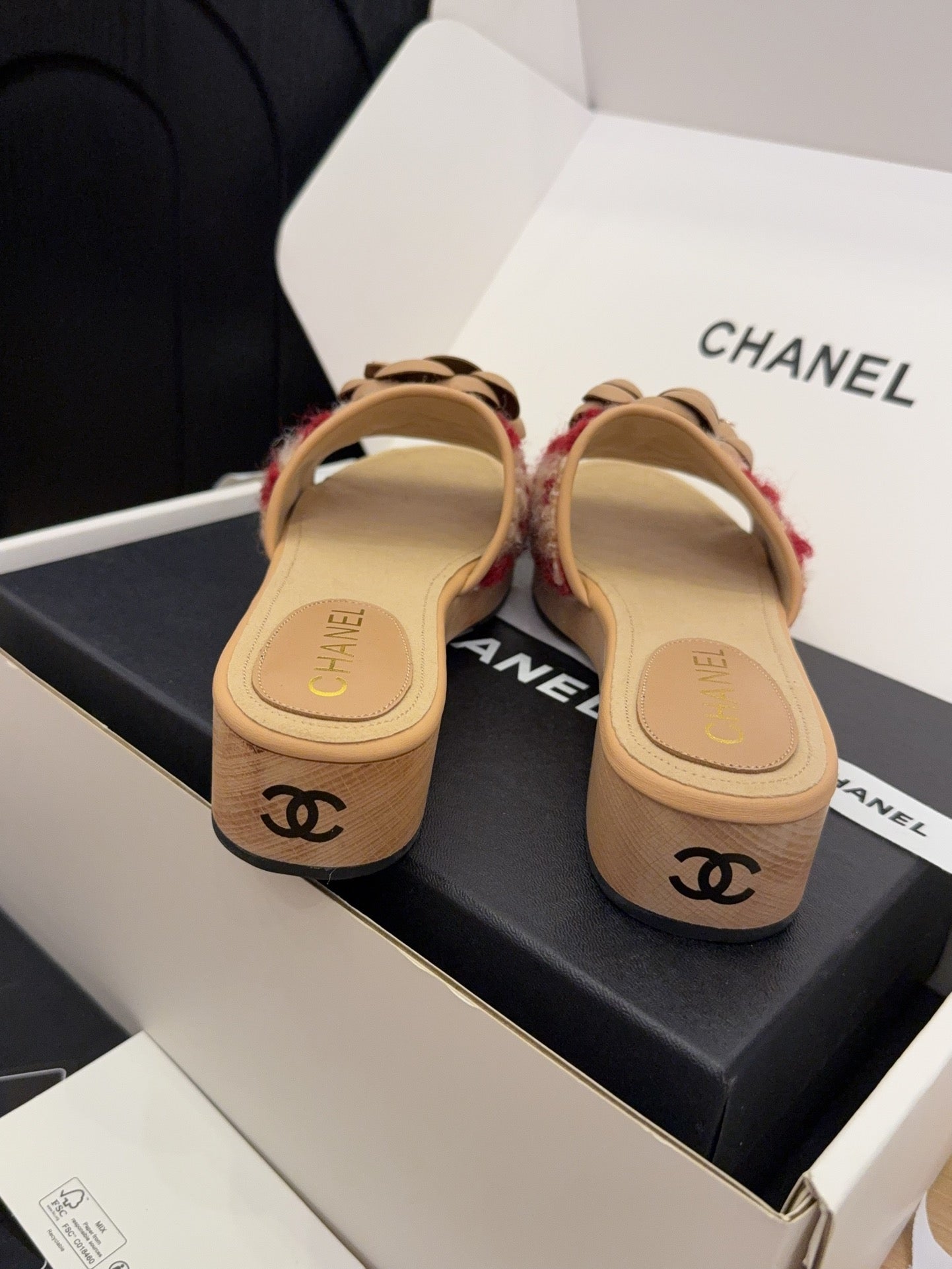 CC 25 Camellia Mule 40 Rosso Mix Beige Tweed e Pelle Beige 277719