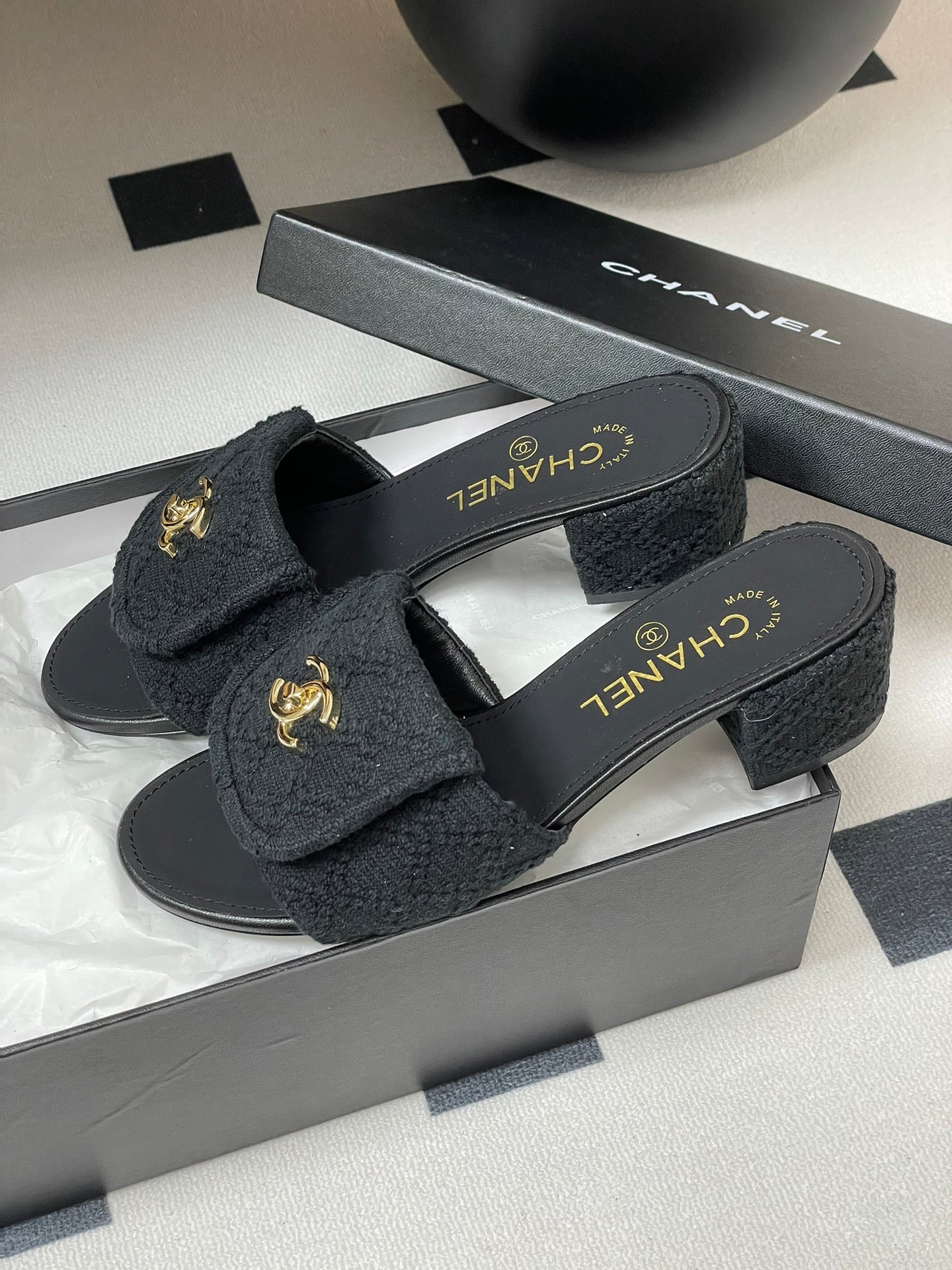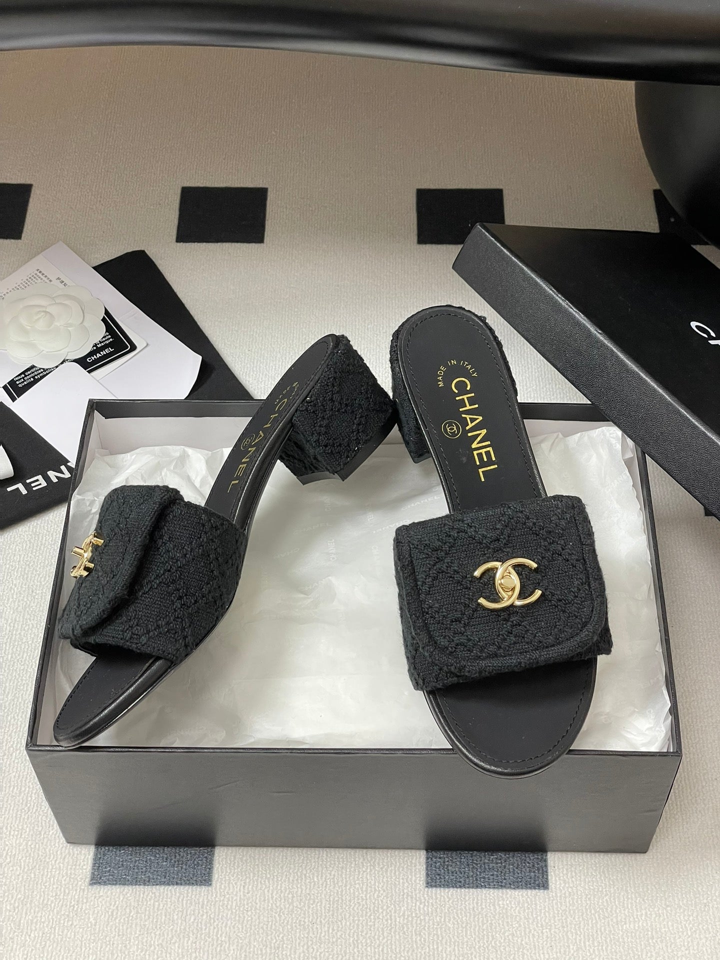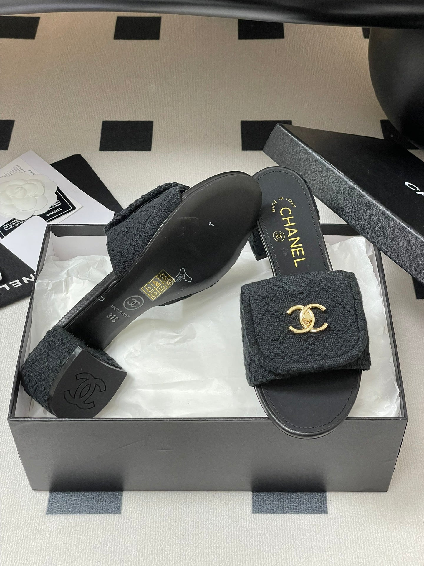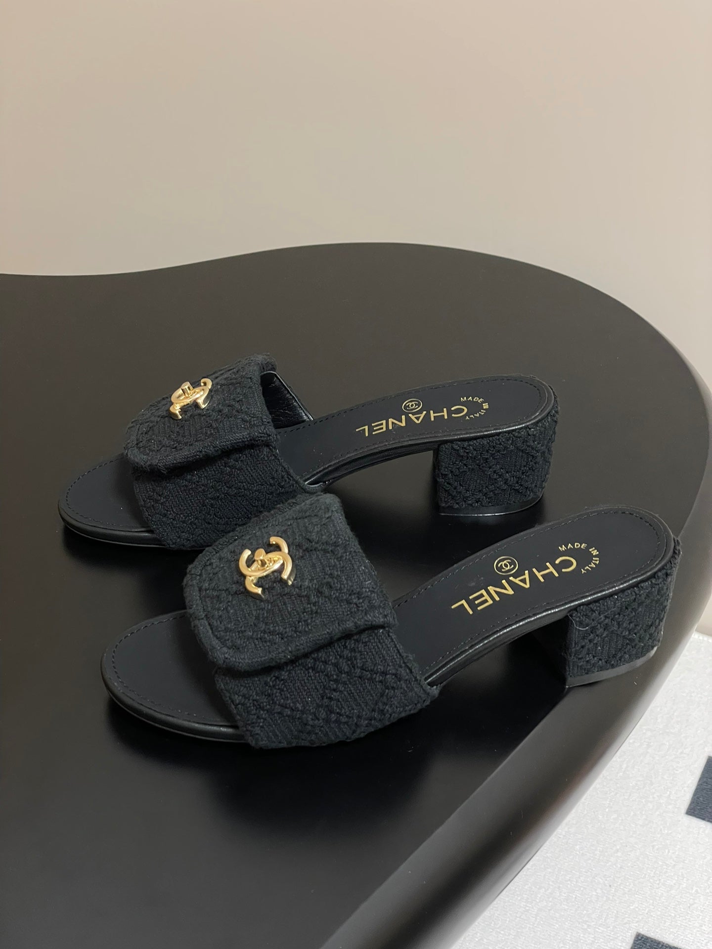CC 25S Sandalo con fibbia e mulo 50mm Tessuto nero e pelle di pecora 247600