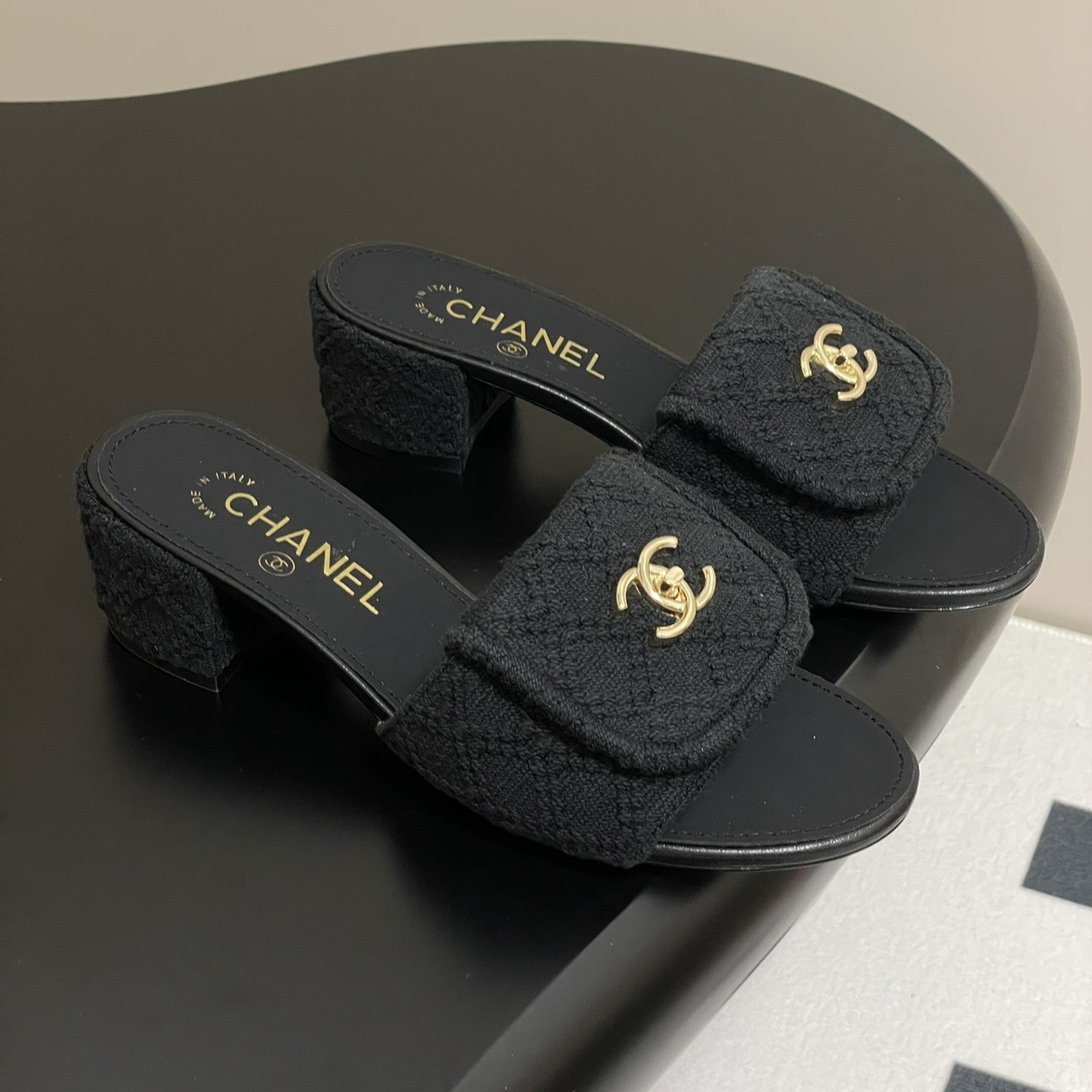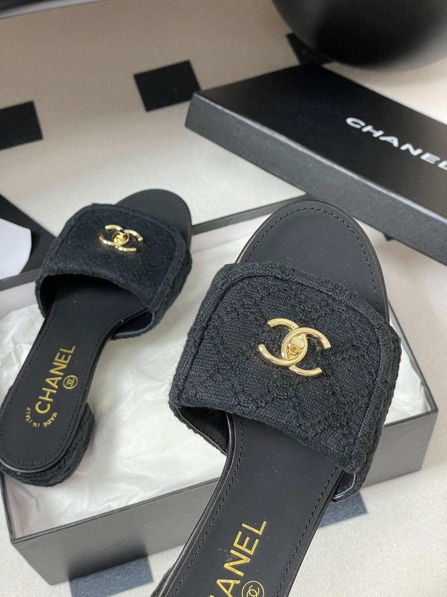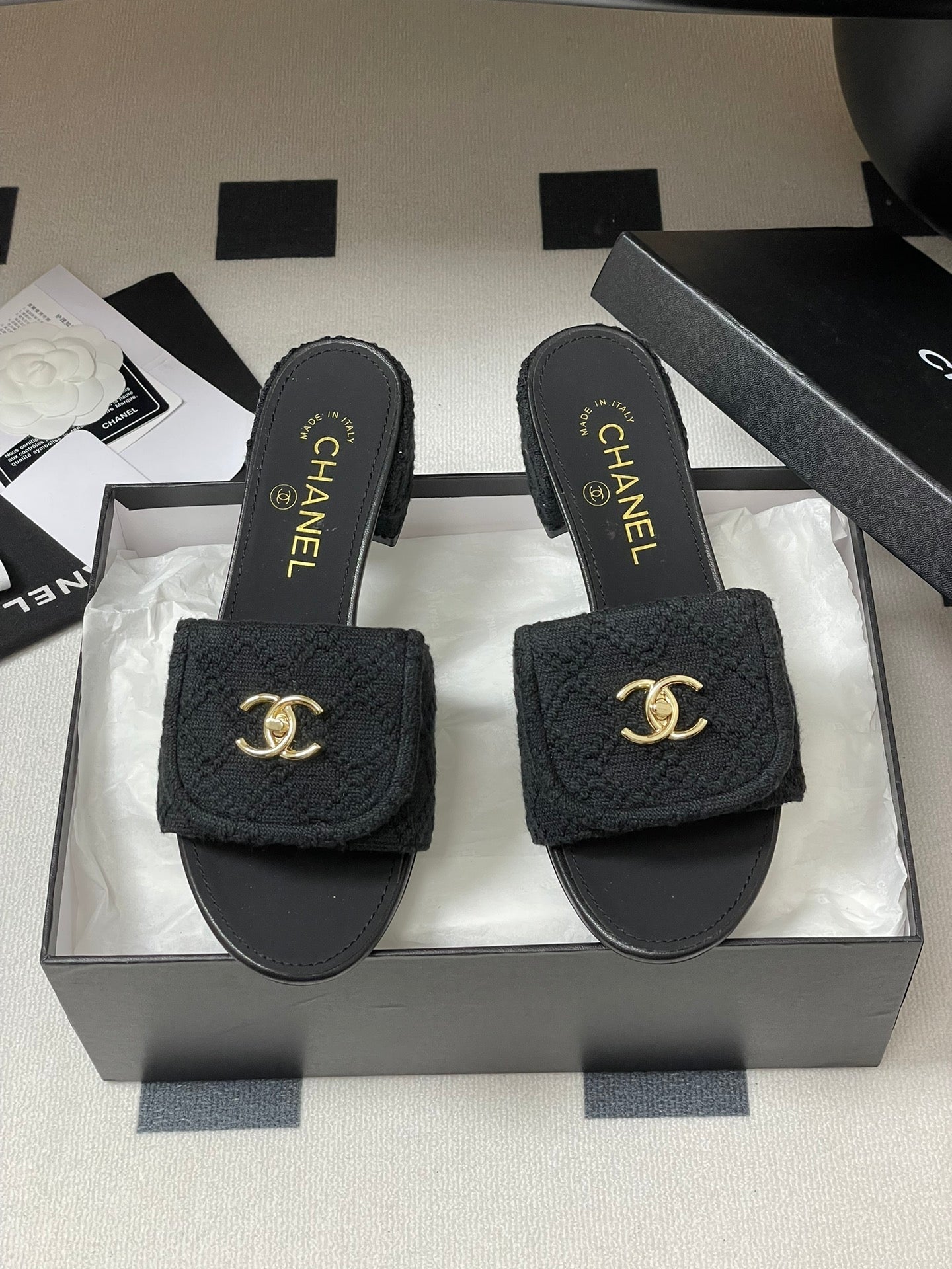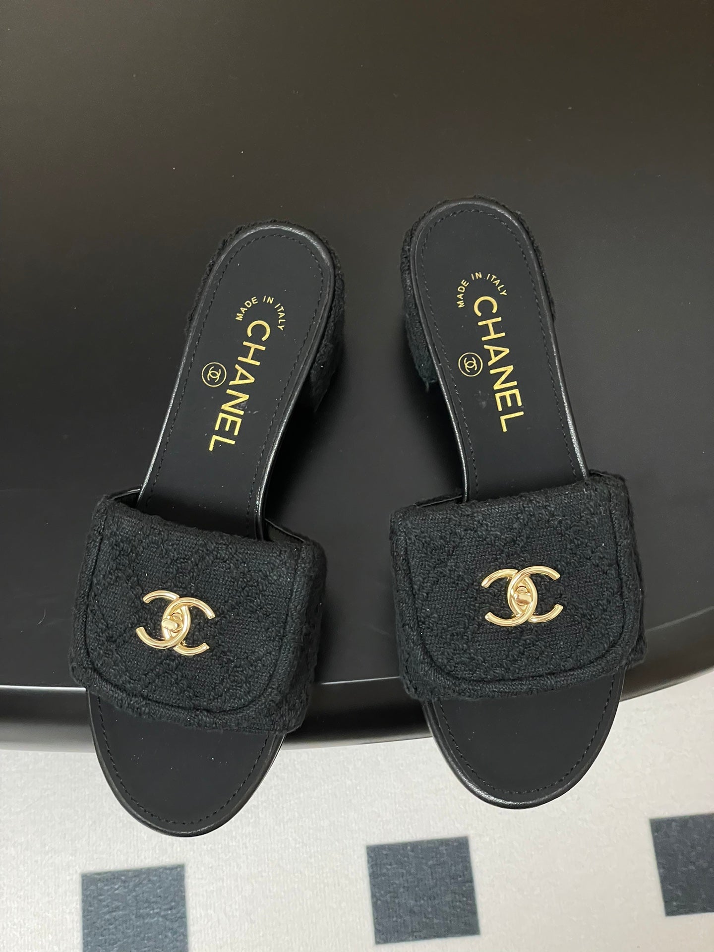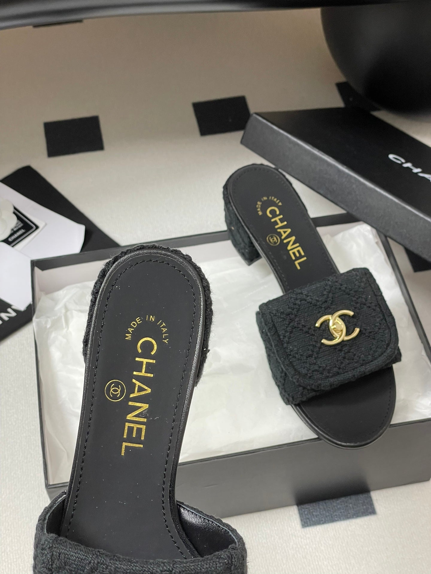 CC 25S Sandalo con fibbia e mulo 50mm Tessuto nero e pelle di pecora 247600
