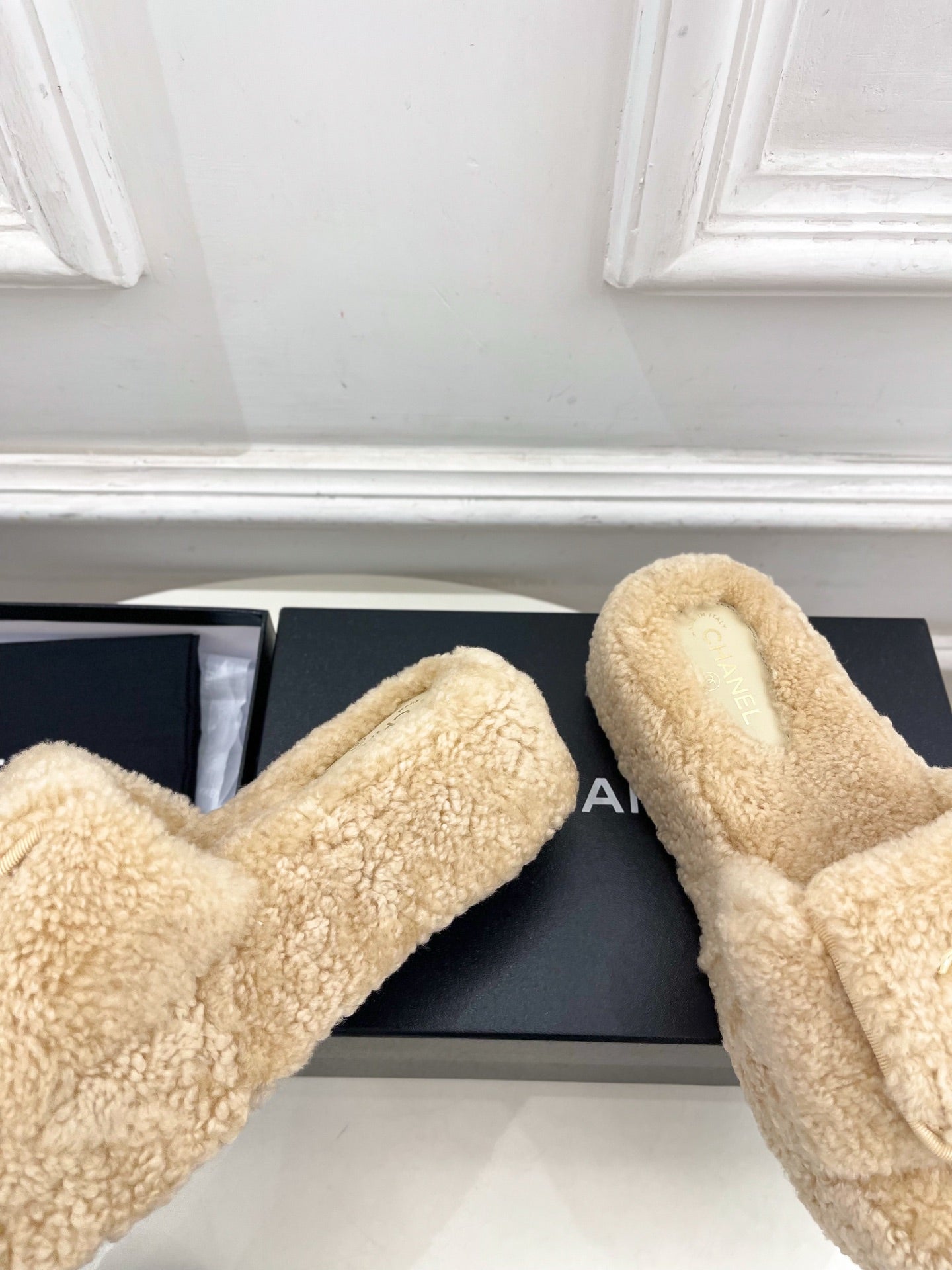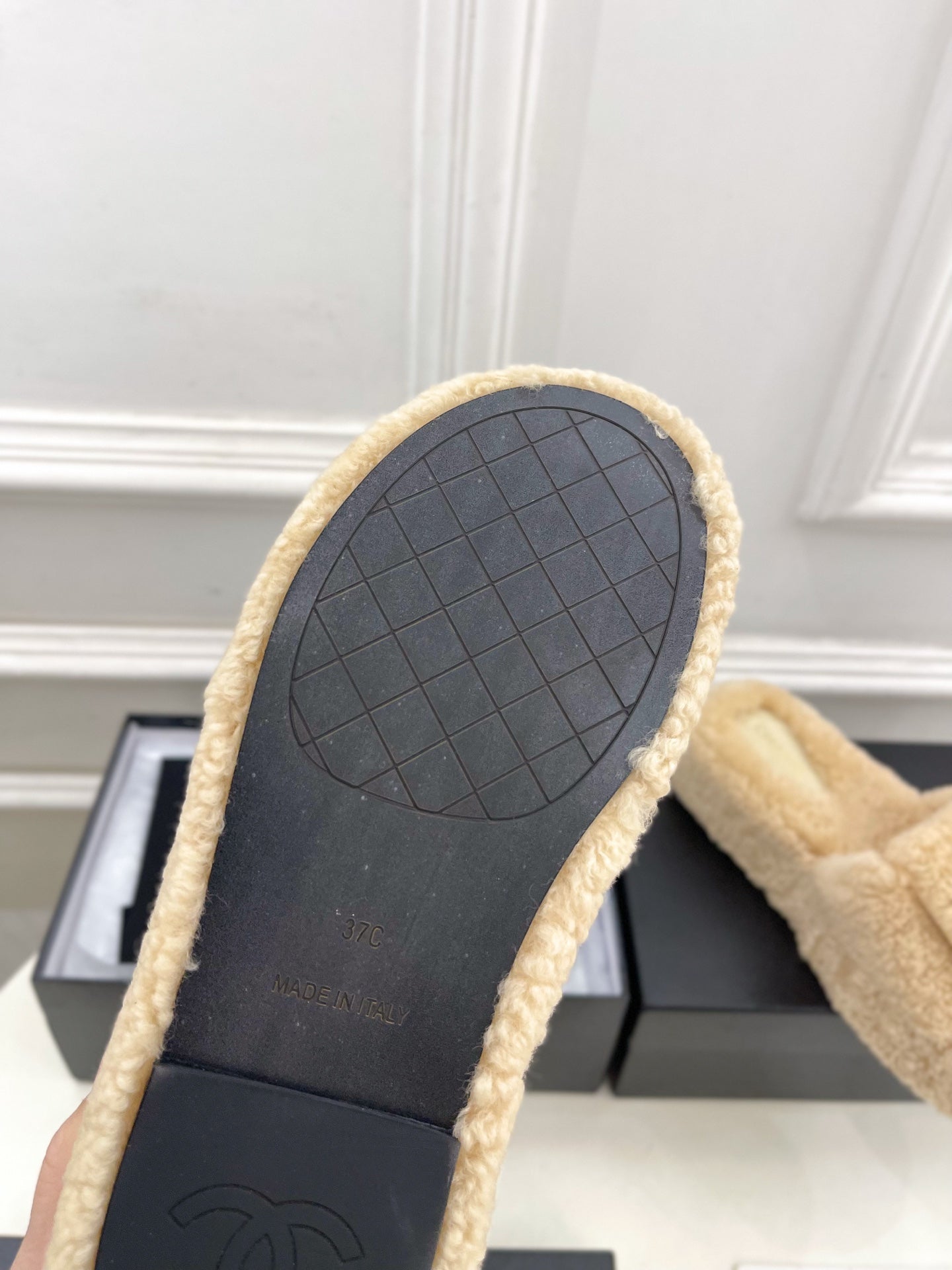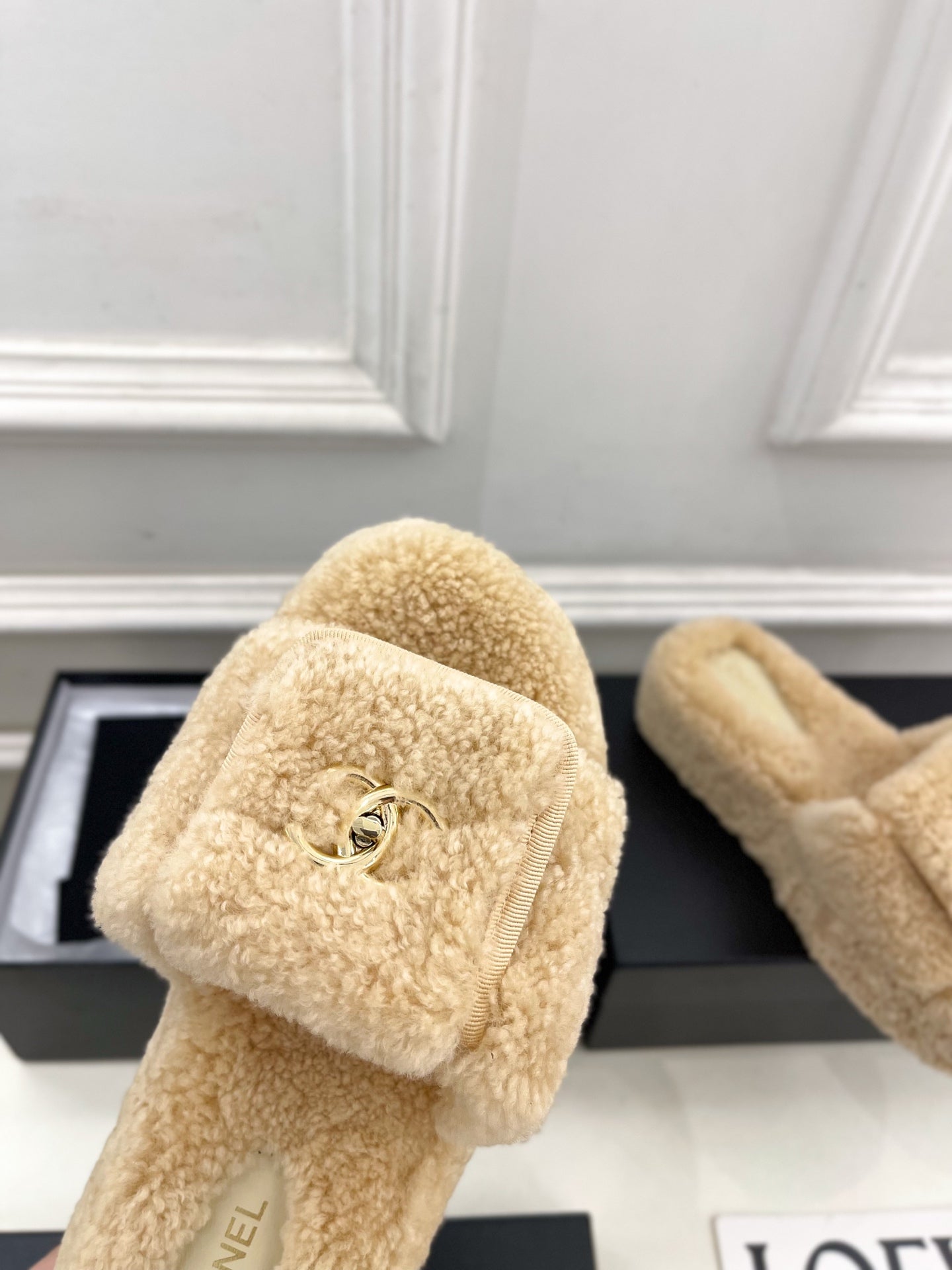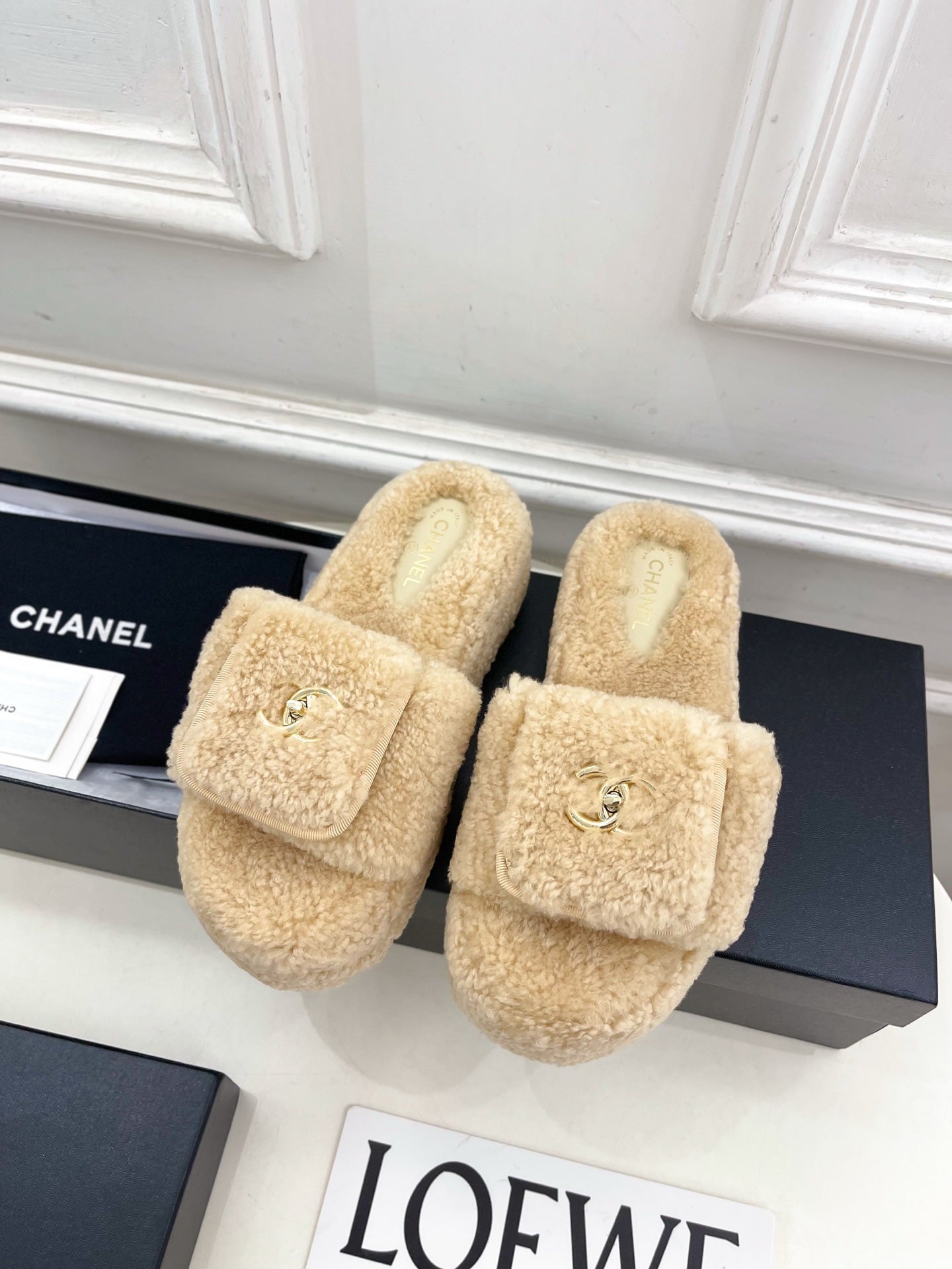 Ciabatte con logo CC 25s 50mm Beige Lana GHW 435264