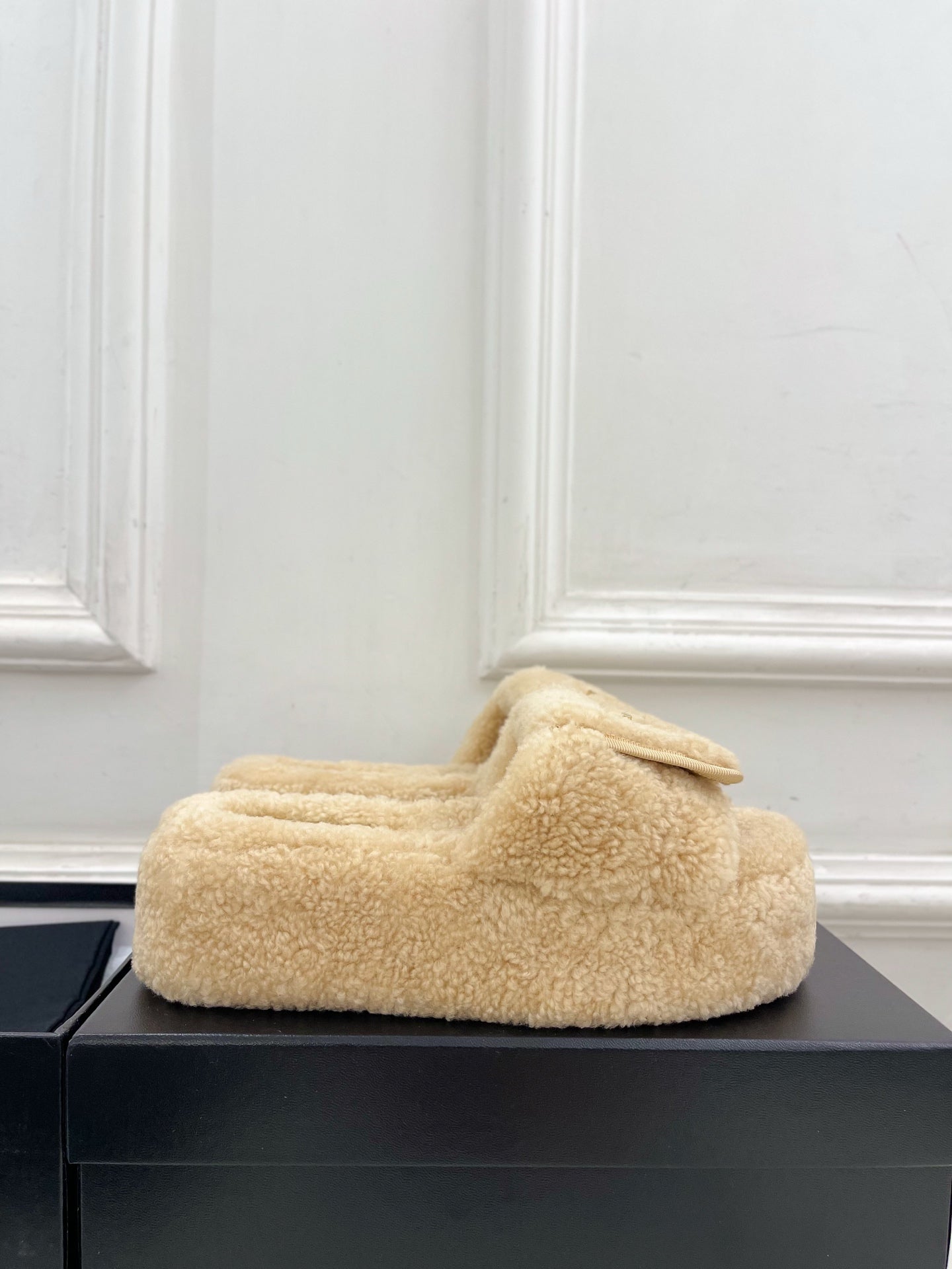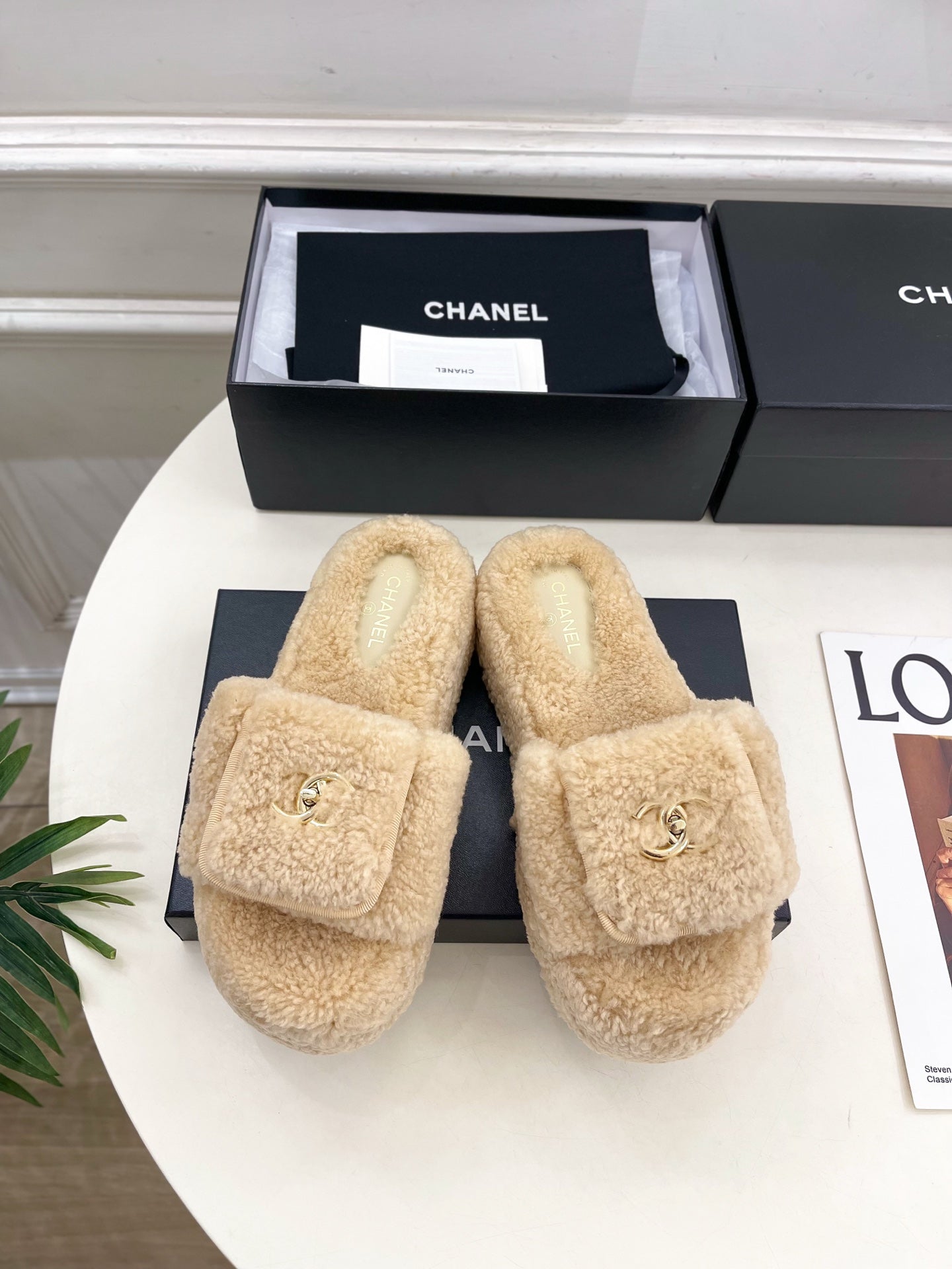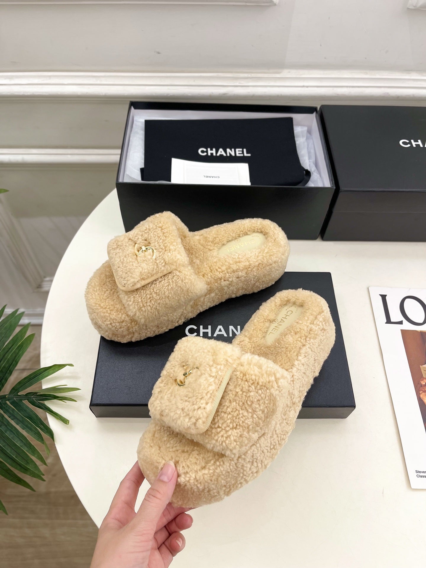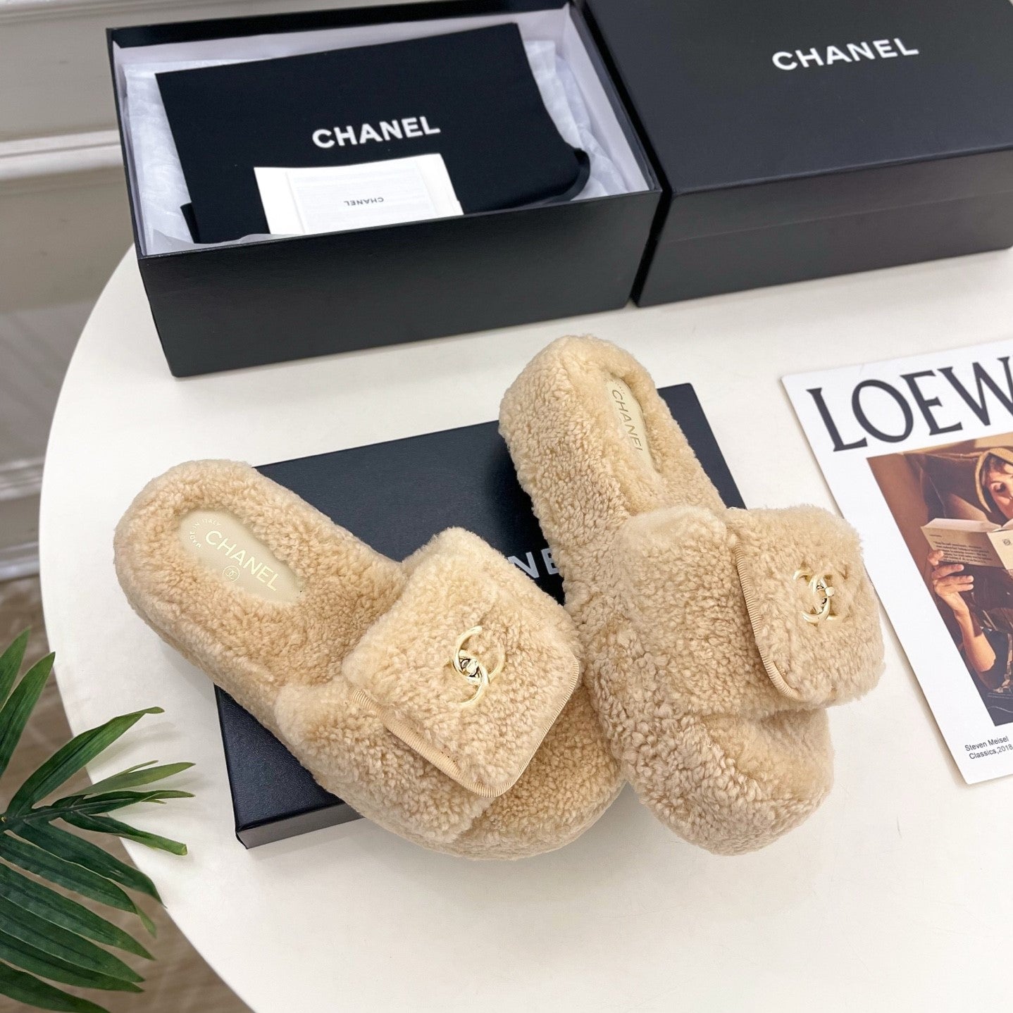 Ciabatte con logo CC 25s 50mm Beige Lana GHW 435264