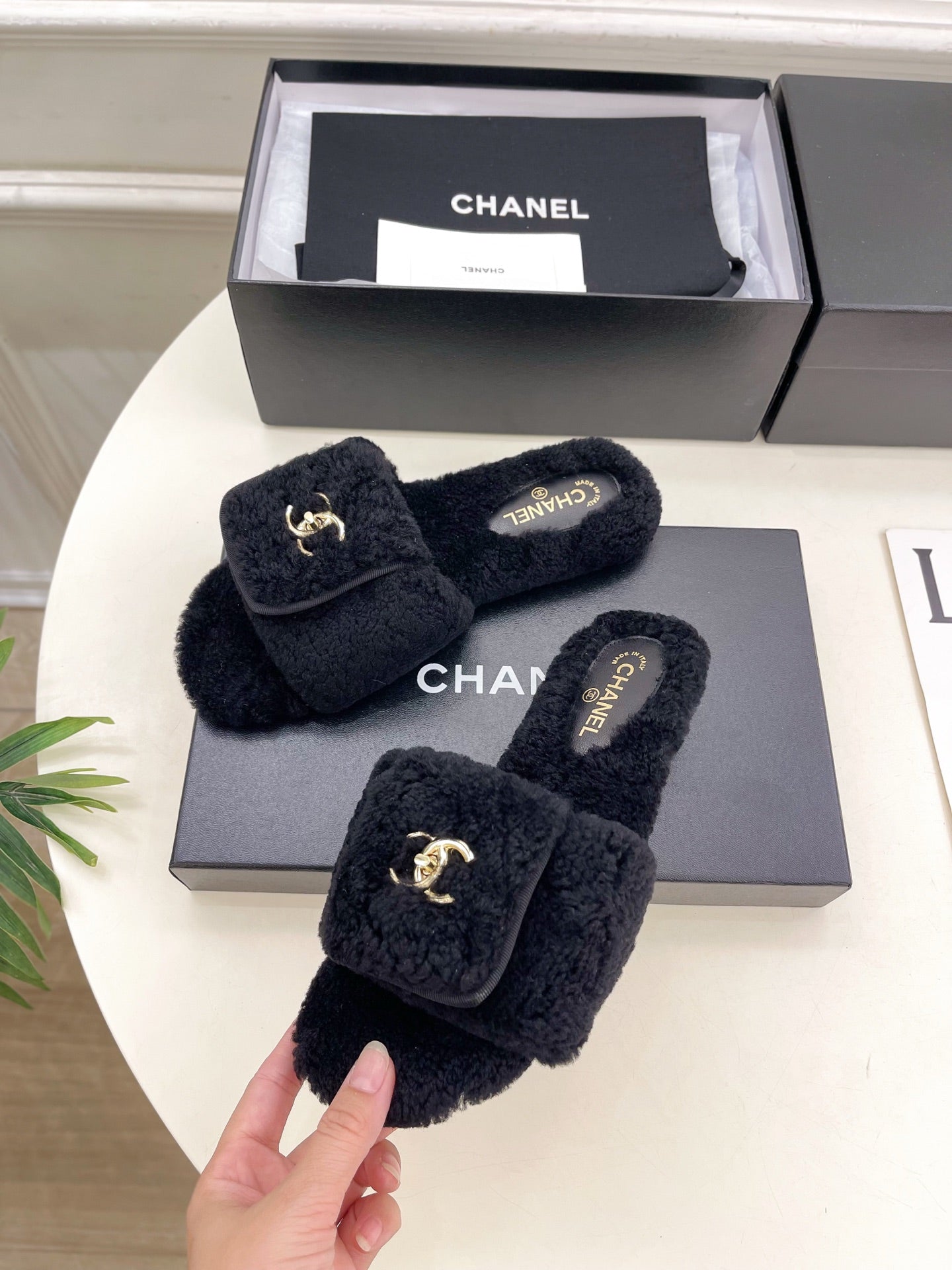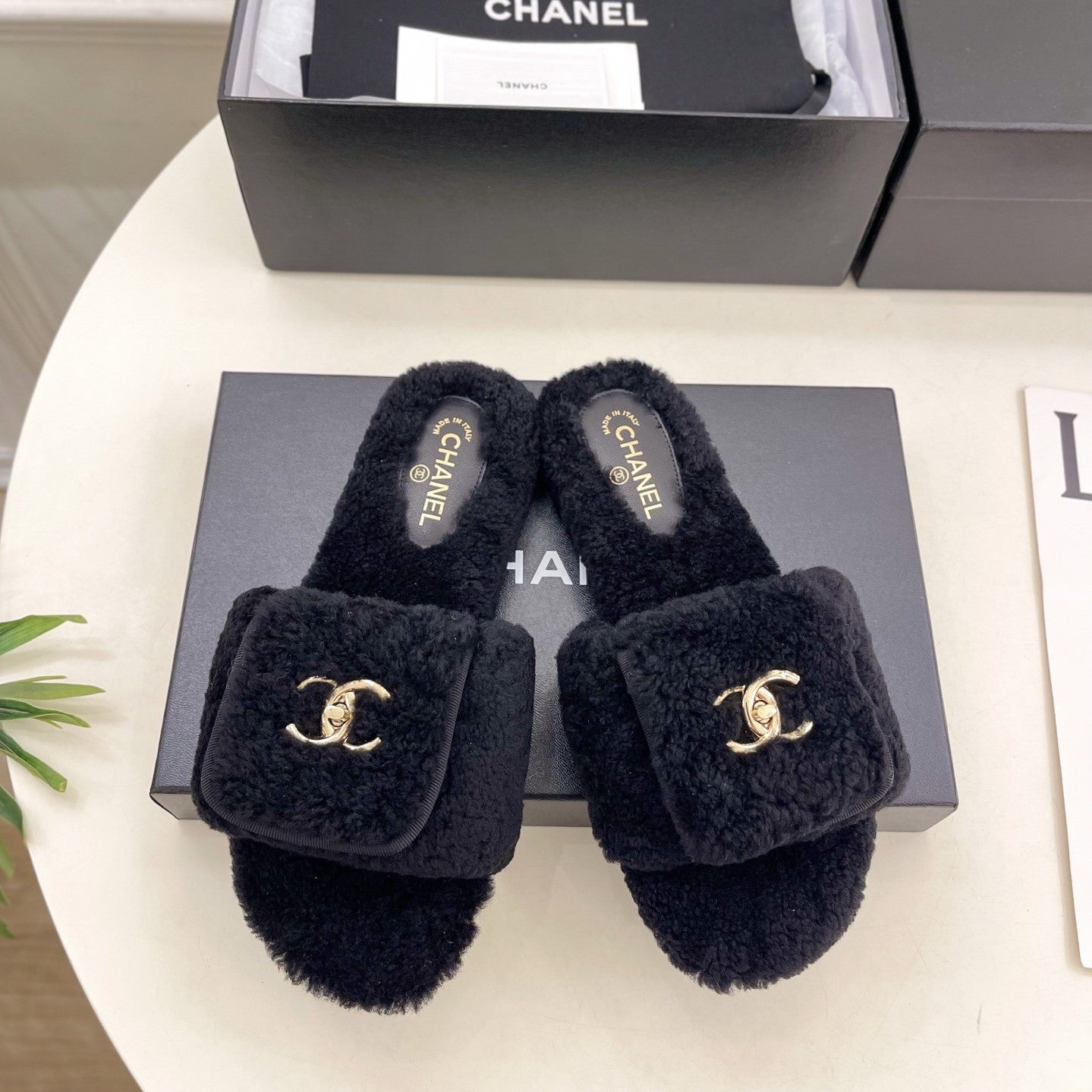 Ciabatte con logo CC 25s in lana nera GHW 435265