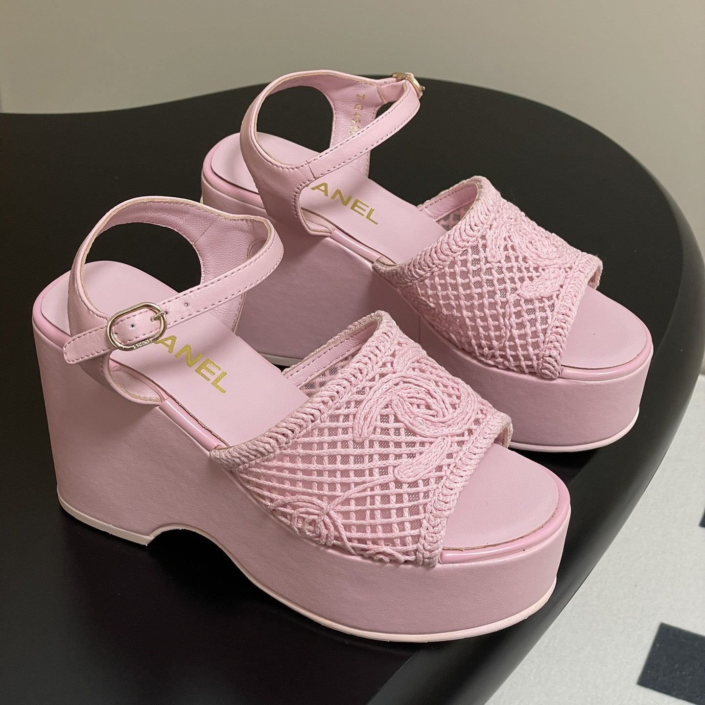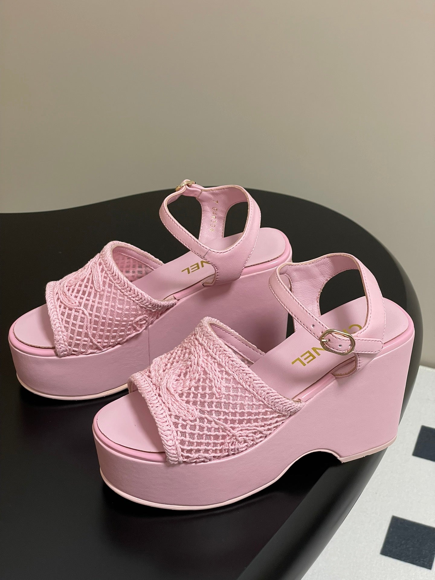 CC 25S Sandalo con zeppa piccola e suola spessa 10 cm Rosa intrecciato 247604