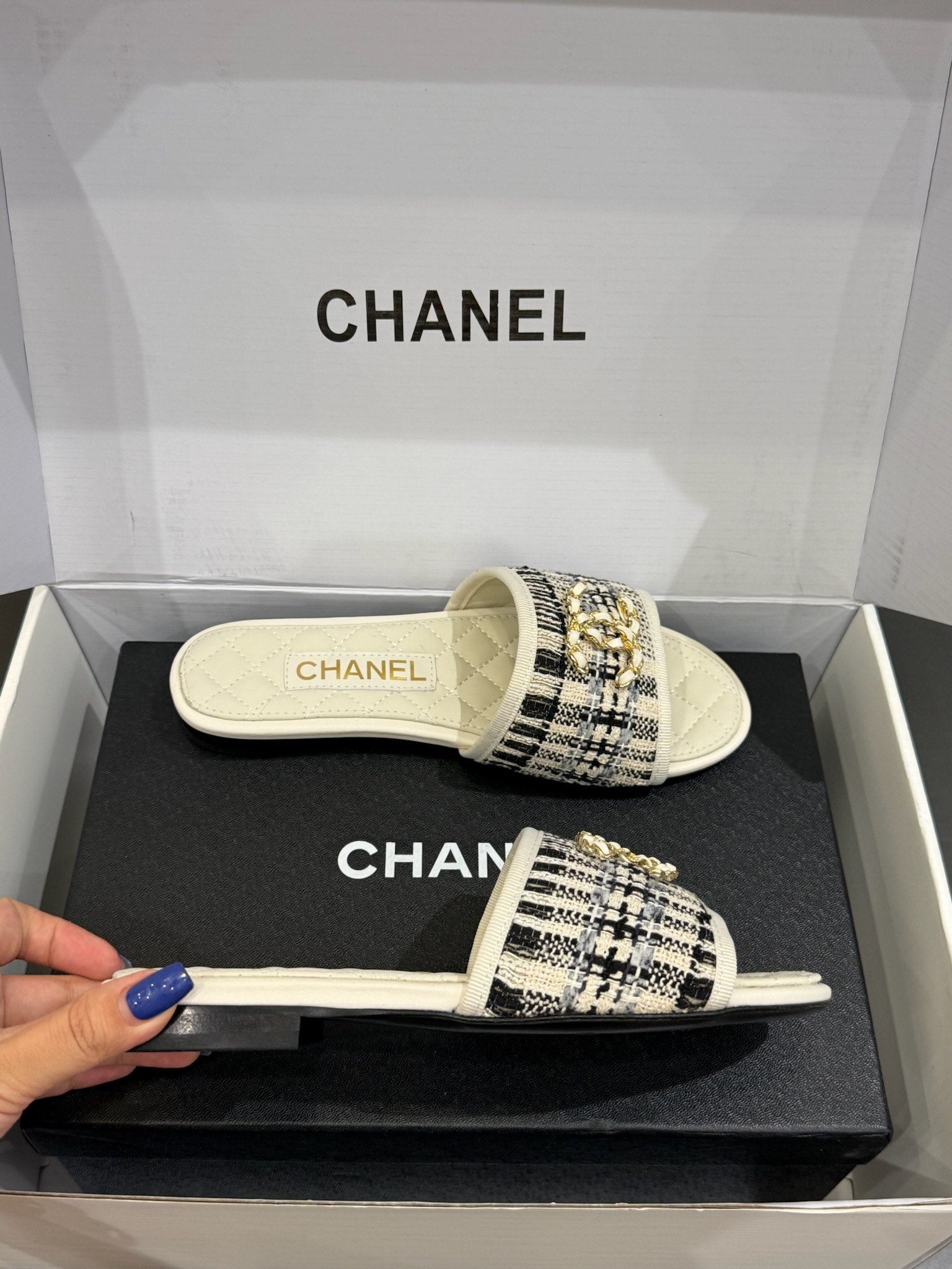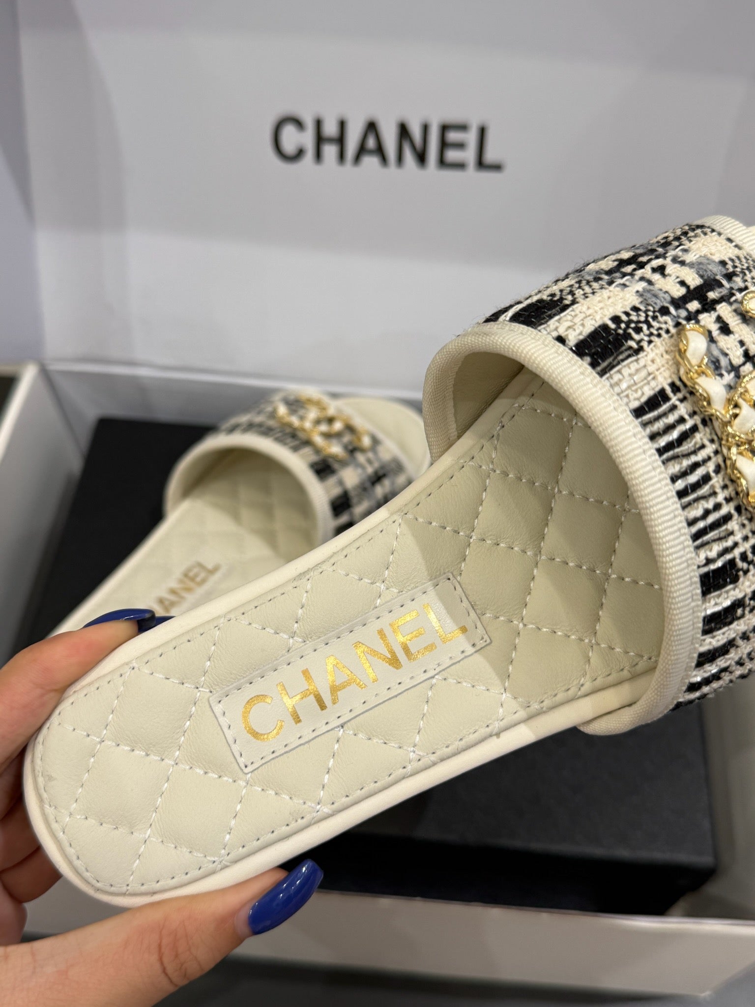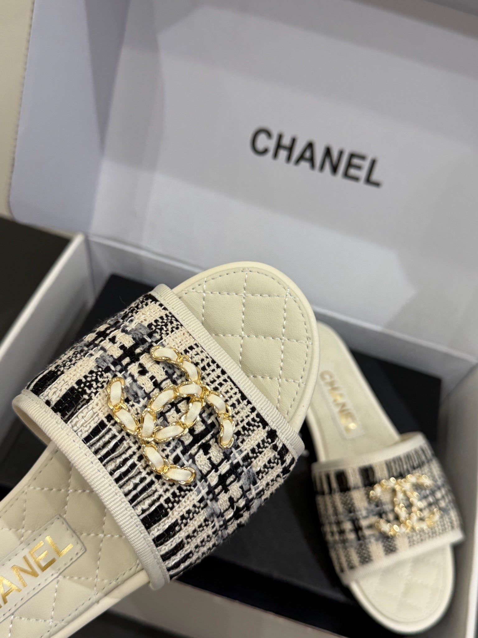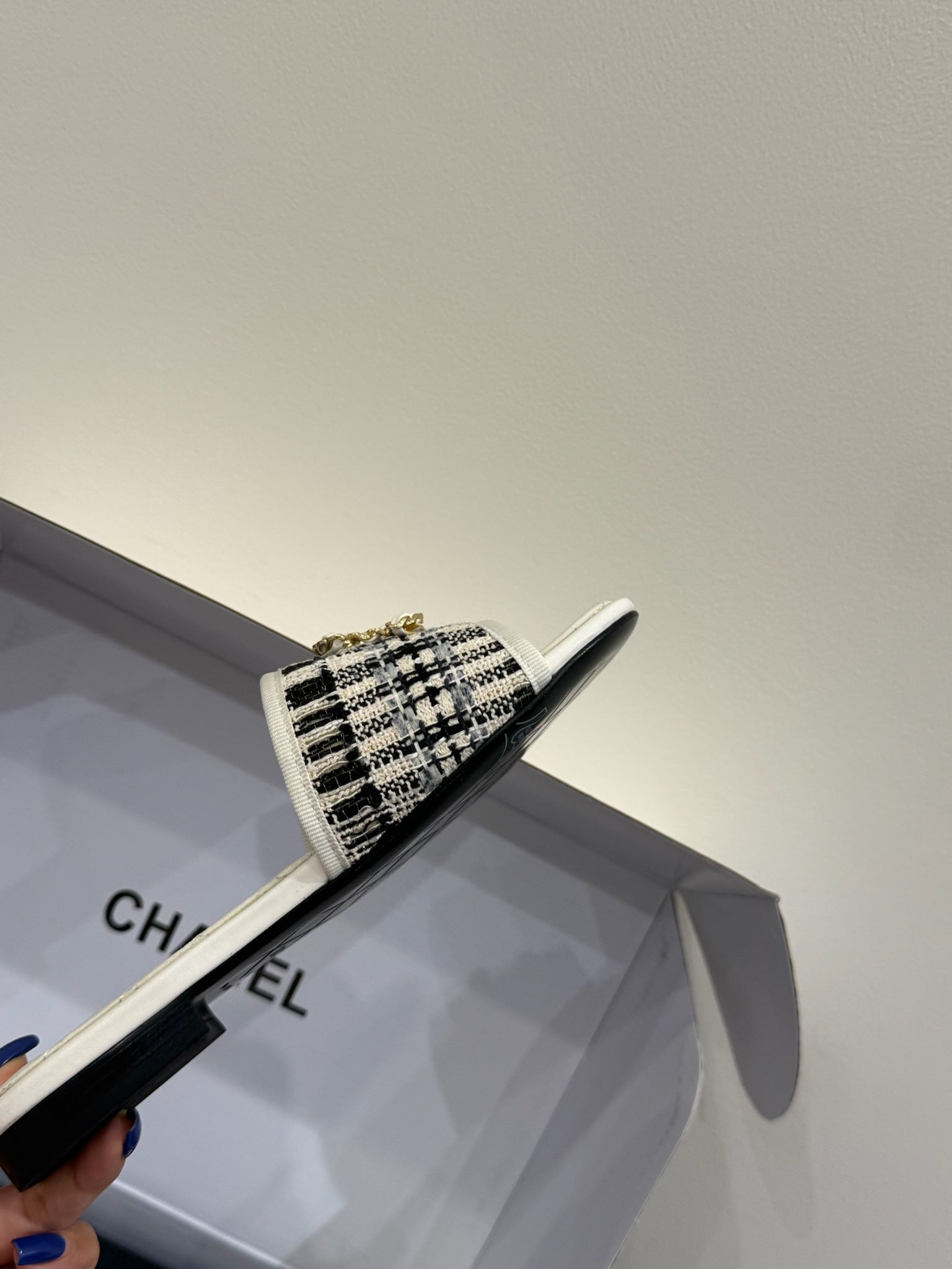 Ciabatte basse con catena CC 25ss nere bianche in pelle di vacchetta e pecora 417563