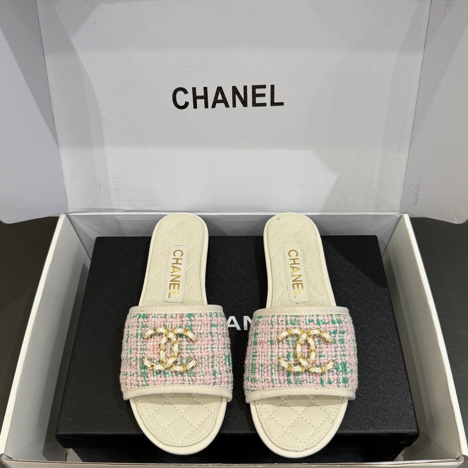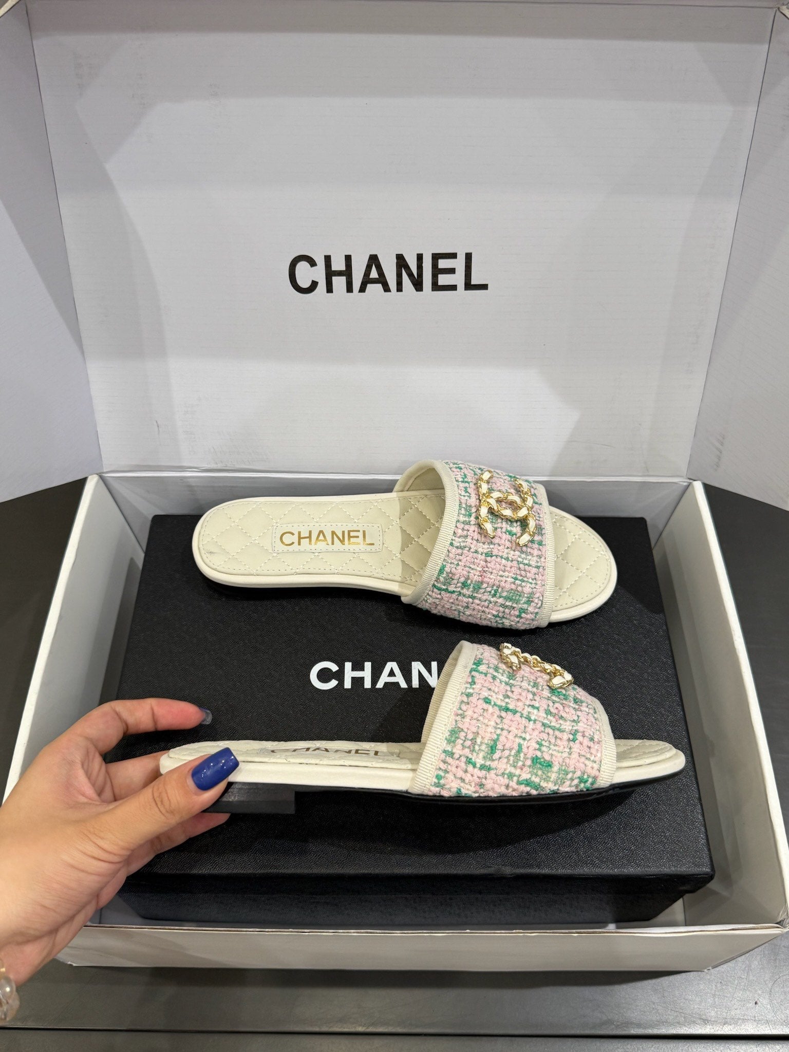 Ciabatte piatte con catena CC 25ss in pelle di mucca e pecora multicolore 417562