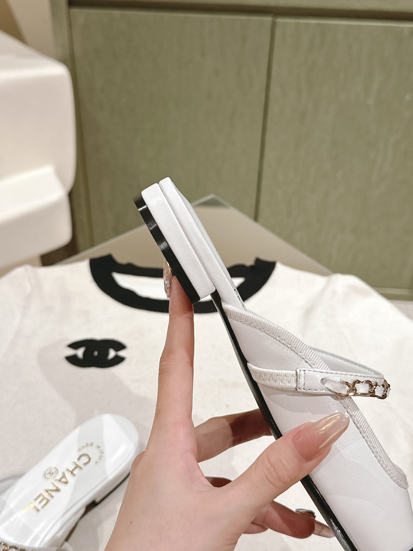 cc mule catena in pelle vitello bianco vitello verniciato nero