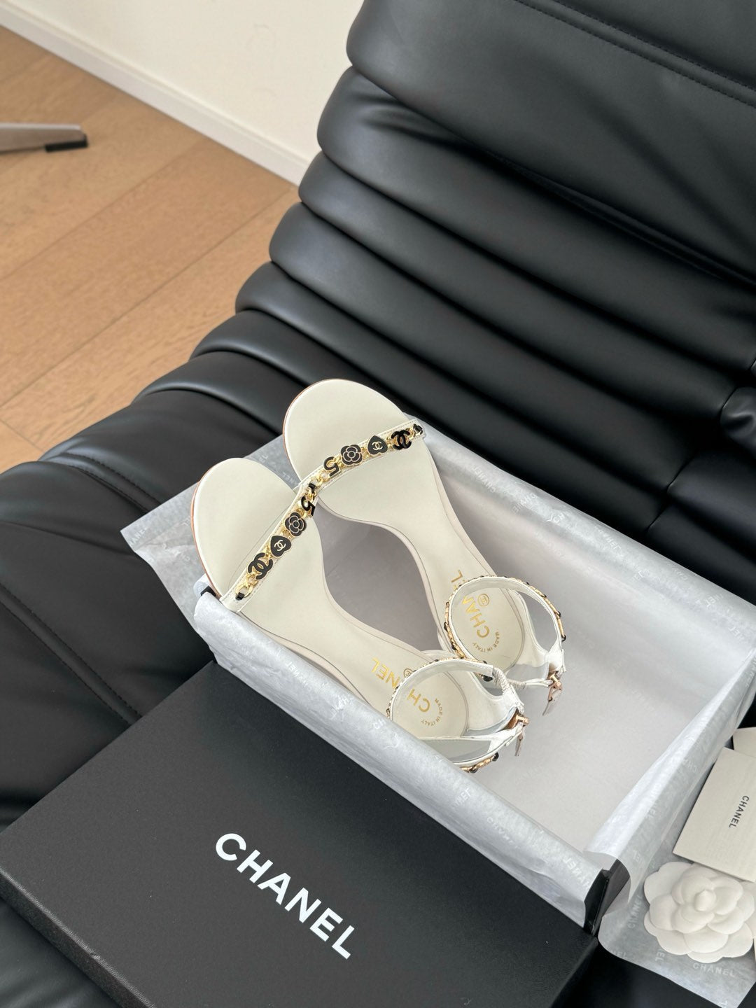SANDALO TACCO MEDIO 35 MM IN MONTONE BIANCO CON ADESIVI