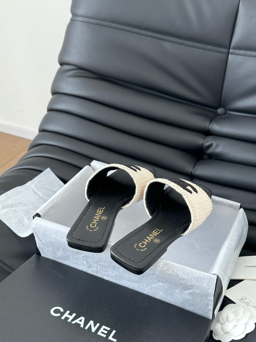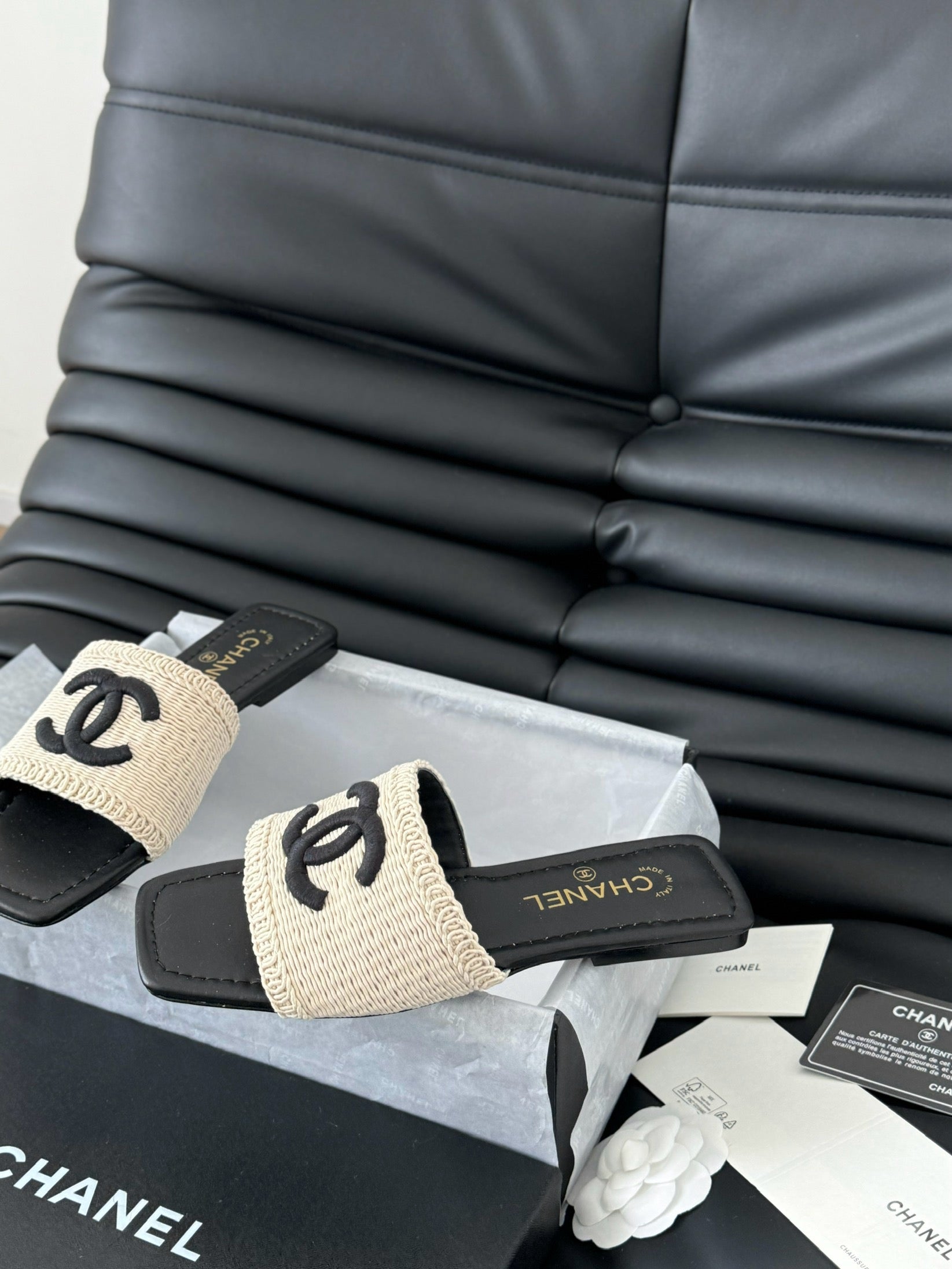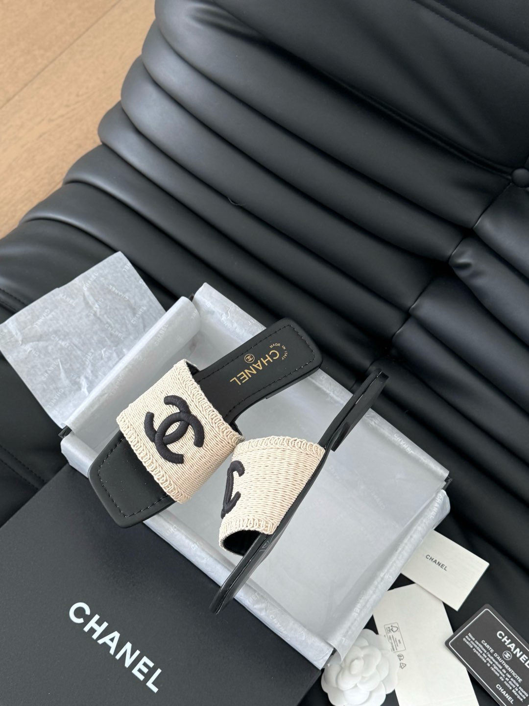 CIABATTA INTRECCIATA IN RAFIA E PELLE DI AGNELLO NERA