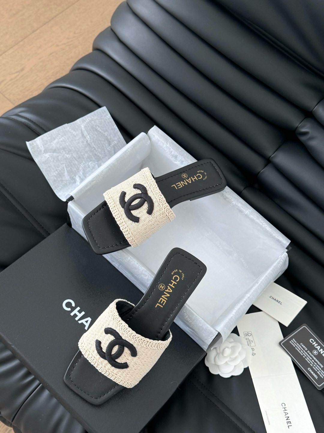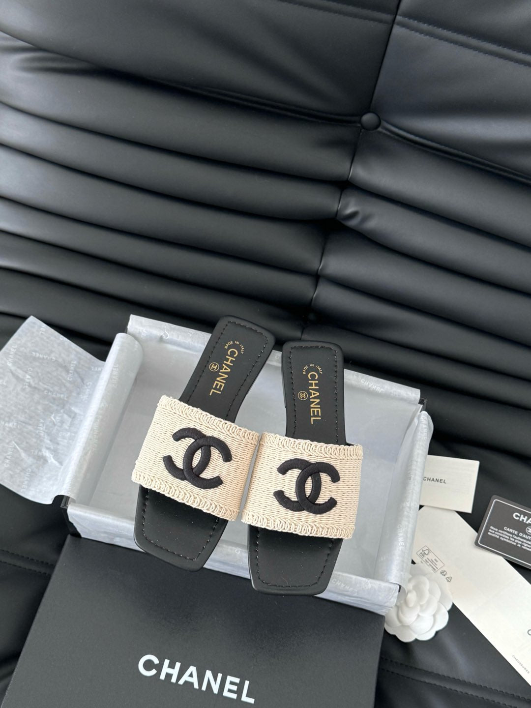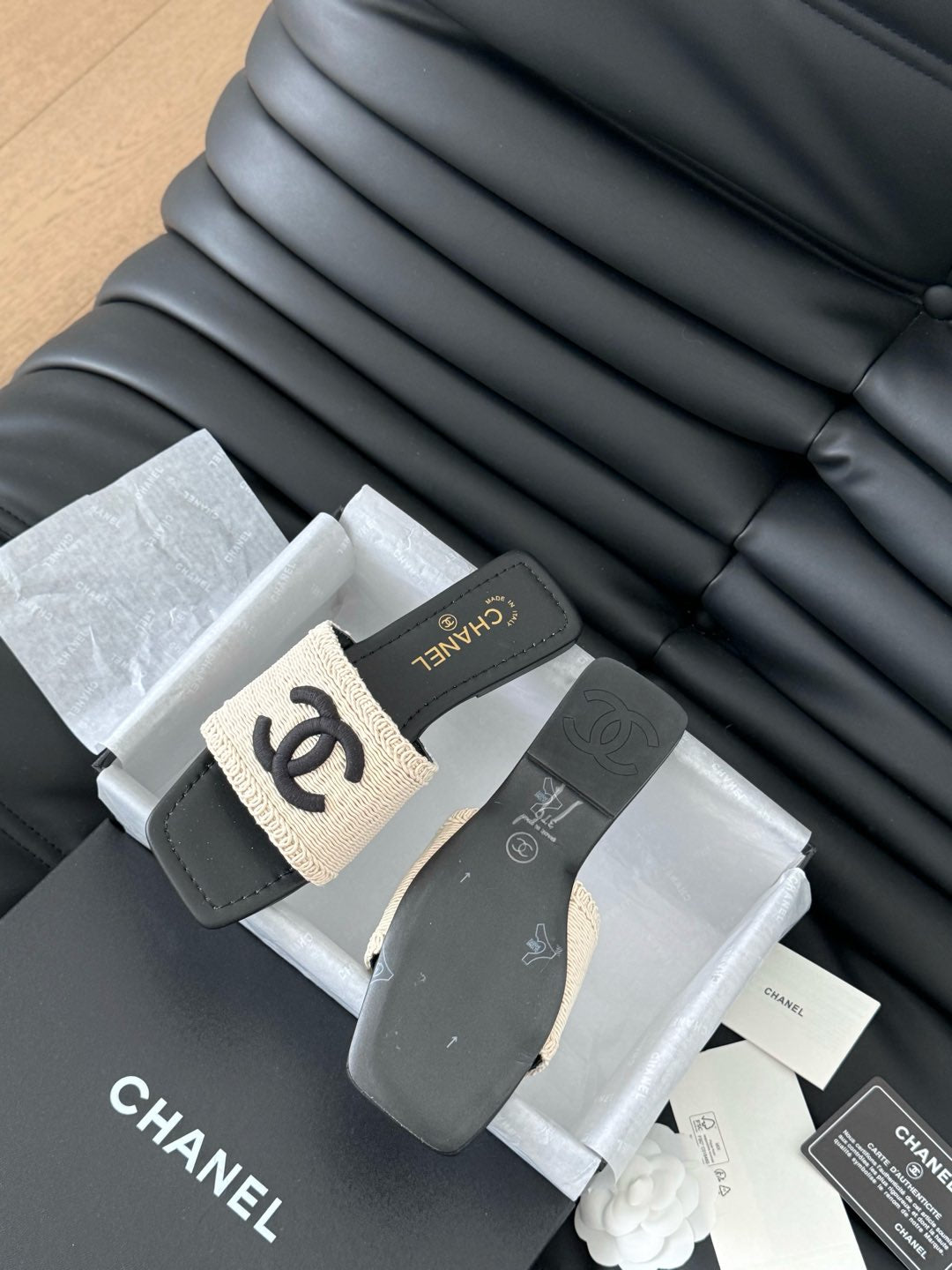 CIABATTA INTRECCIATA IN RAFIA E PELLE DI AGNELLO NERA