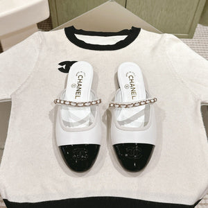 cc mule catena in pelle vitello bianco vitello verniciato nero