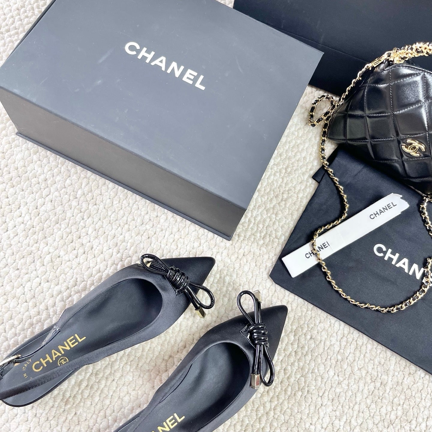 CC 25 Ballerine con cinturino posteriore in seta nera 330921