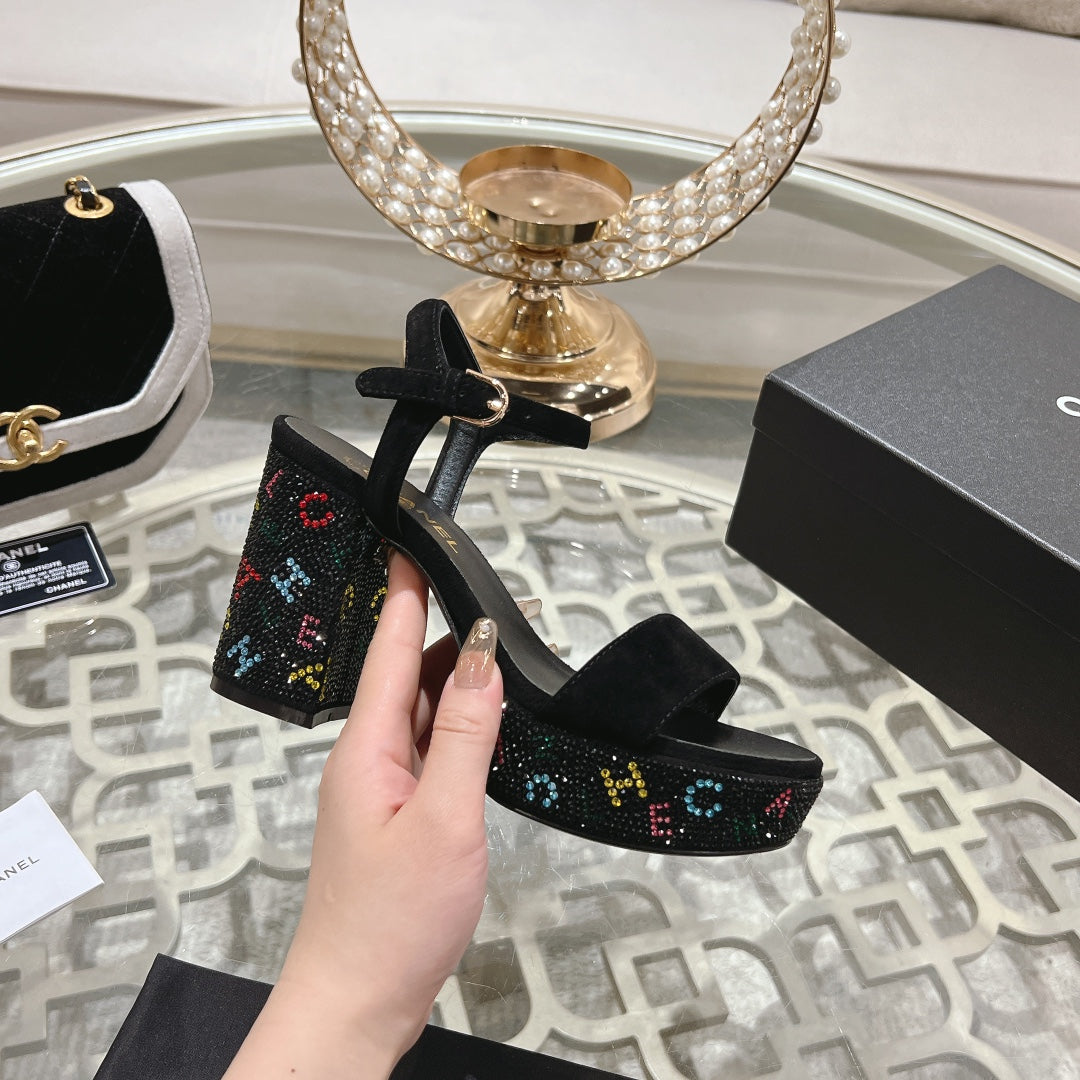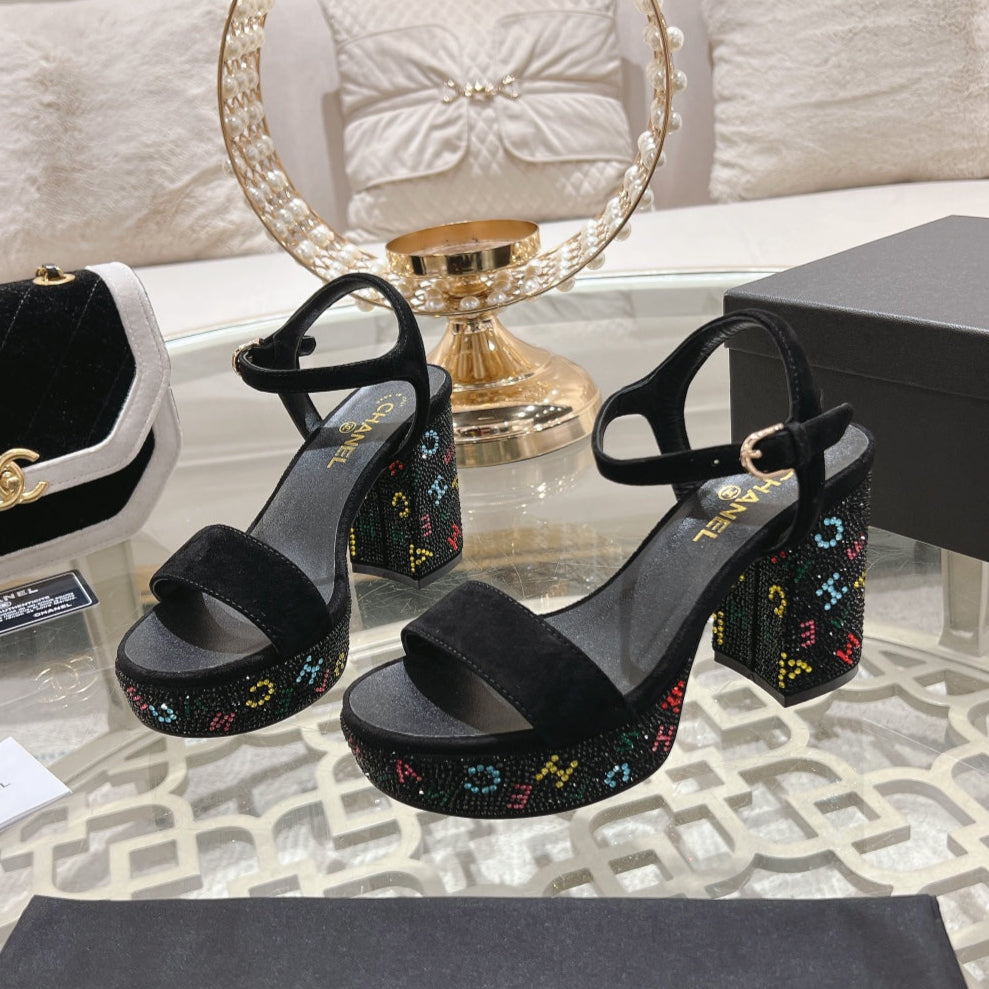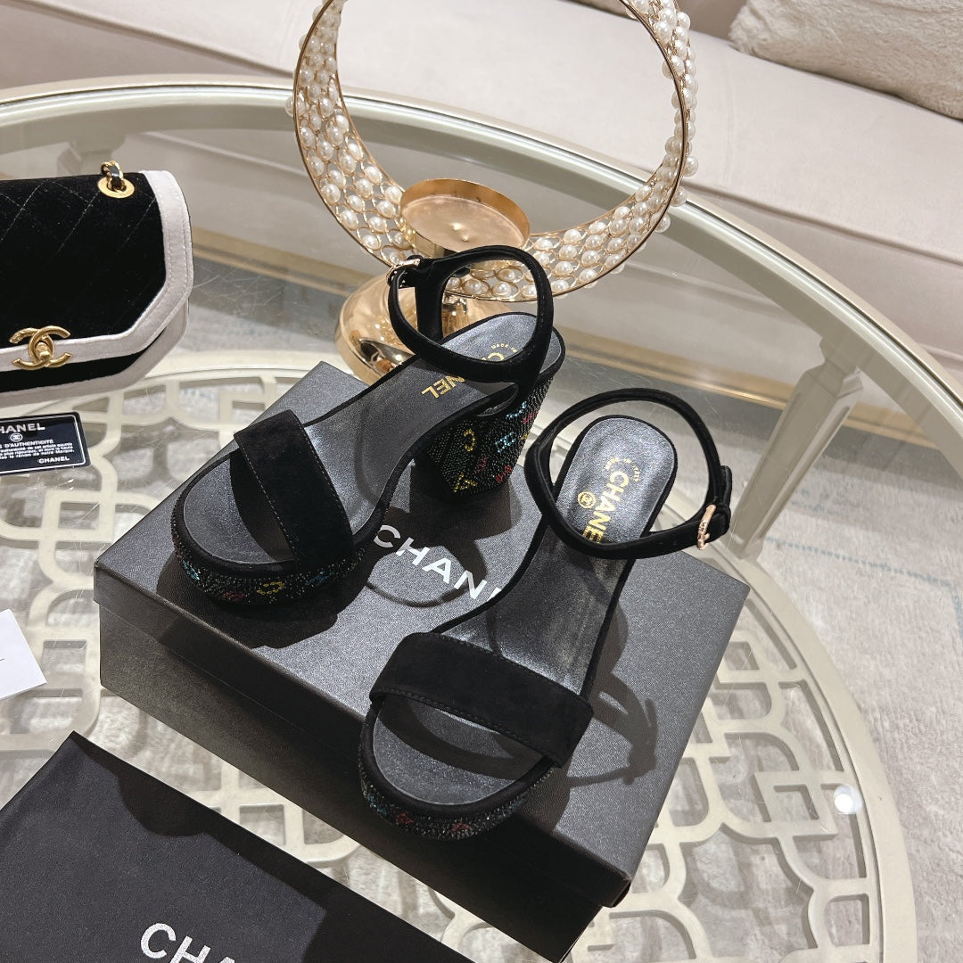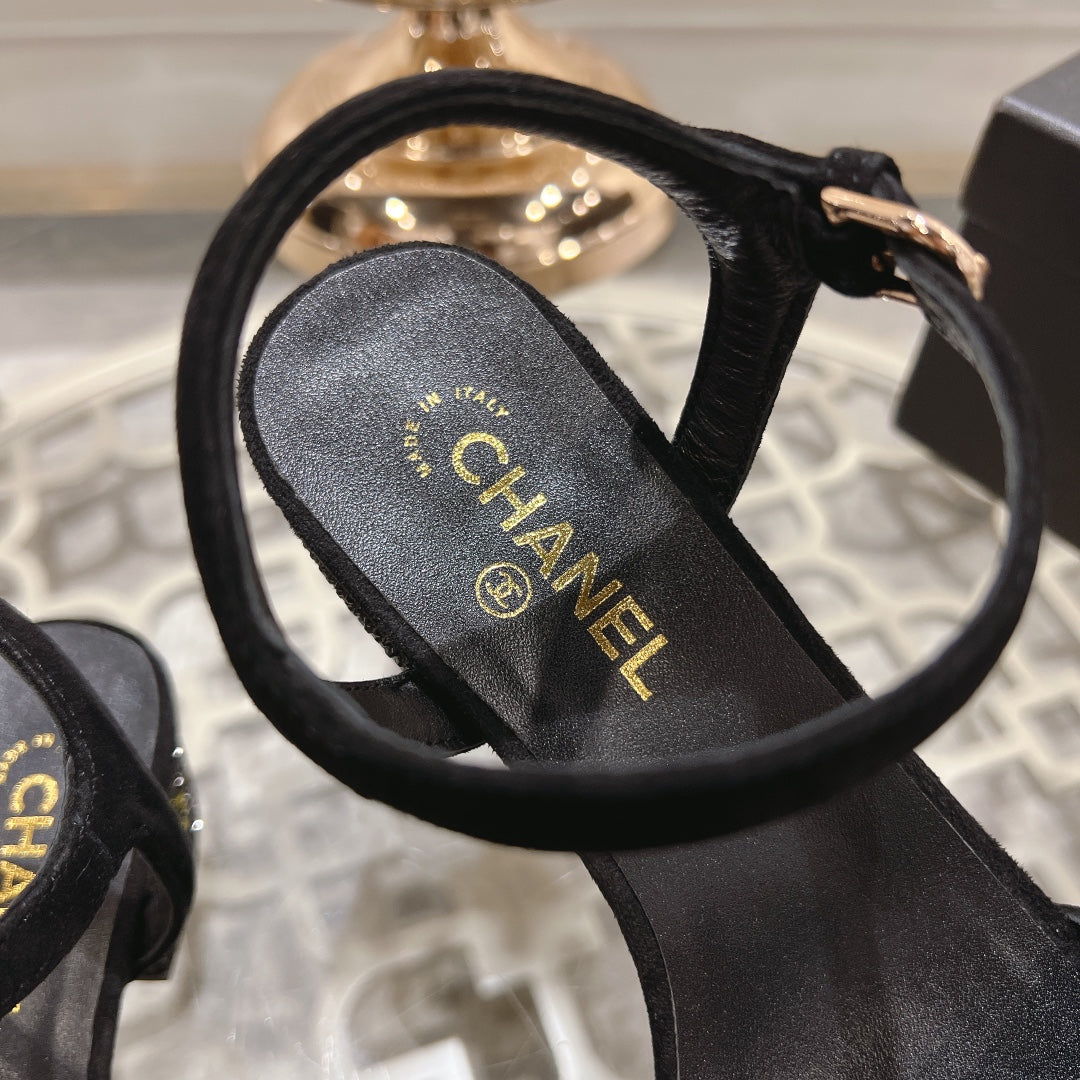 CC 25C 10CM Sandali con tacco medio in pelle scamosciata nera 213328