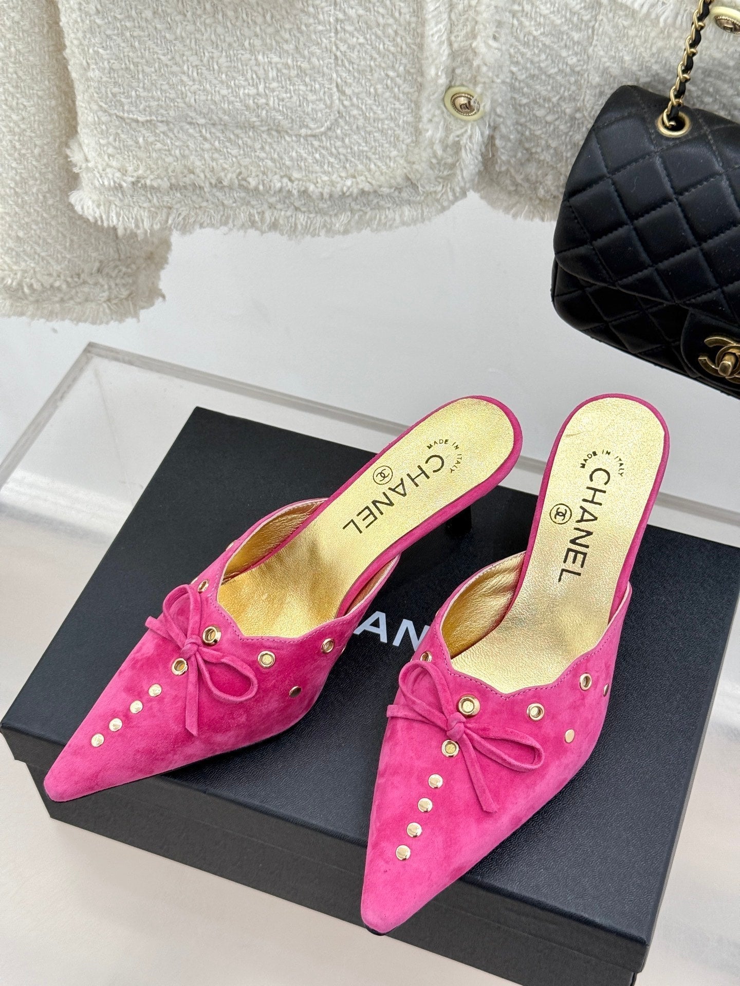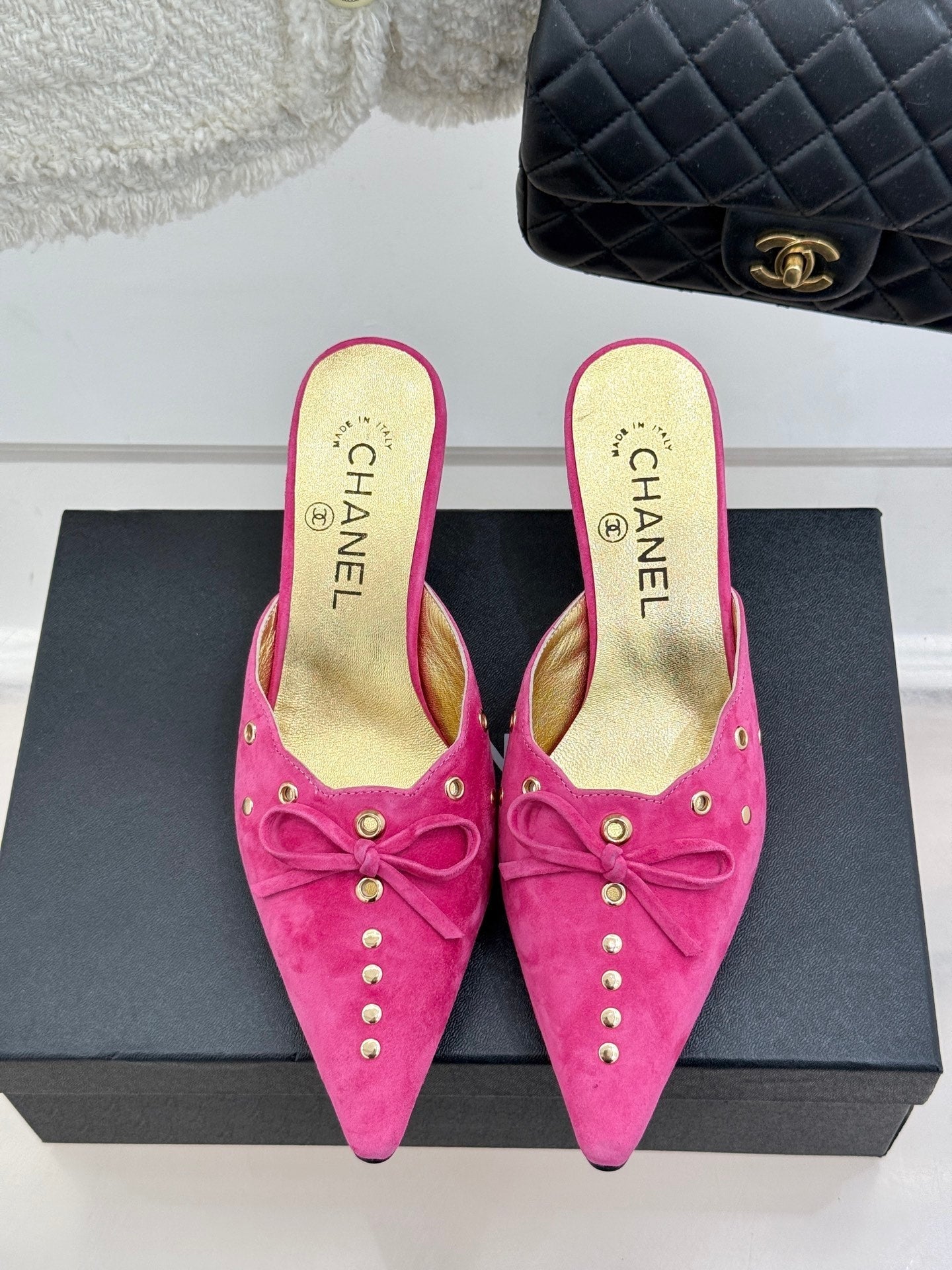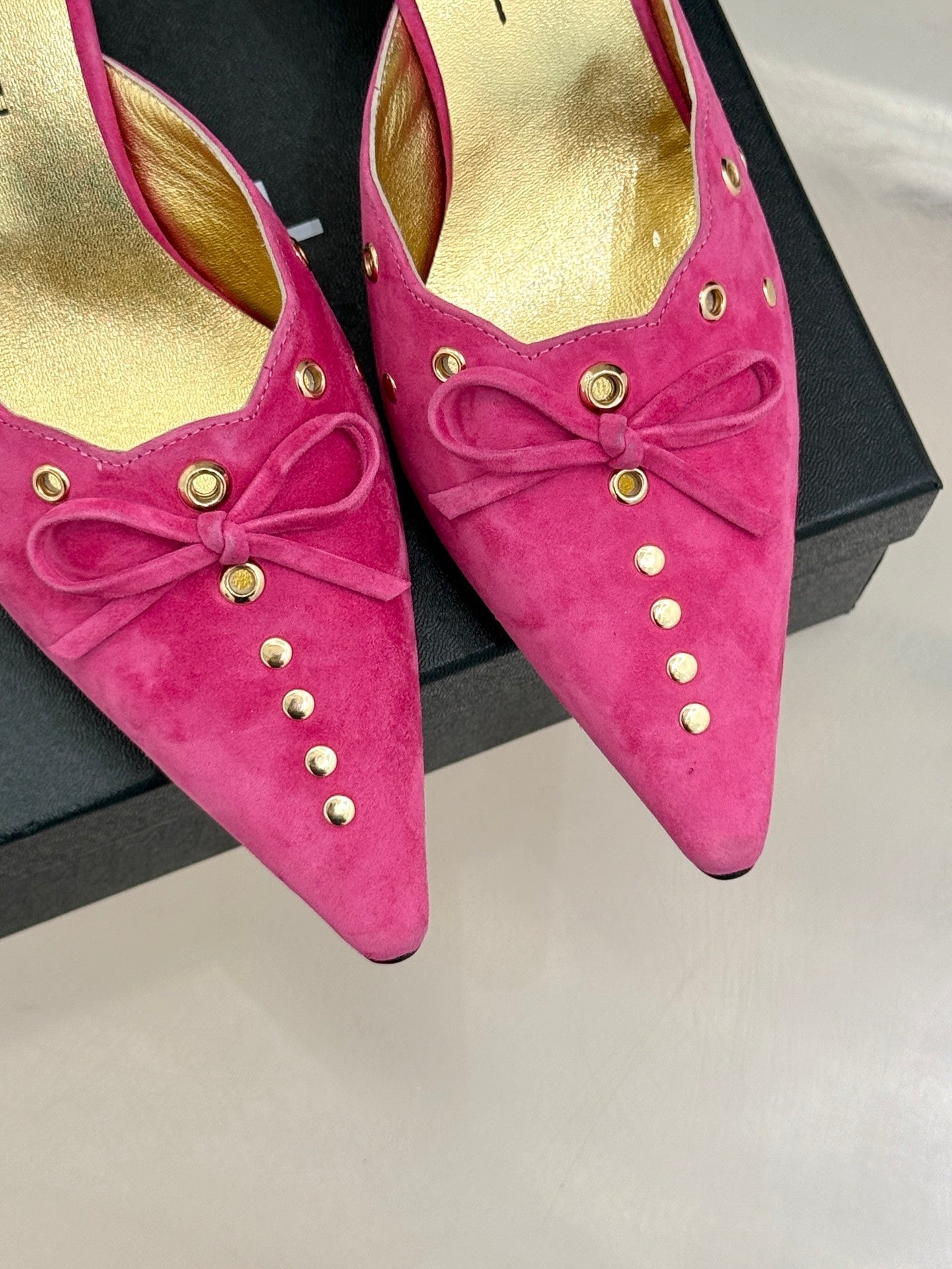 CC 25C Ciabatte con tacco alto e punta a fiocco 60 mm in pelle scamosciata rosa 265656