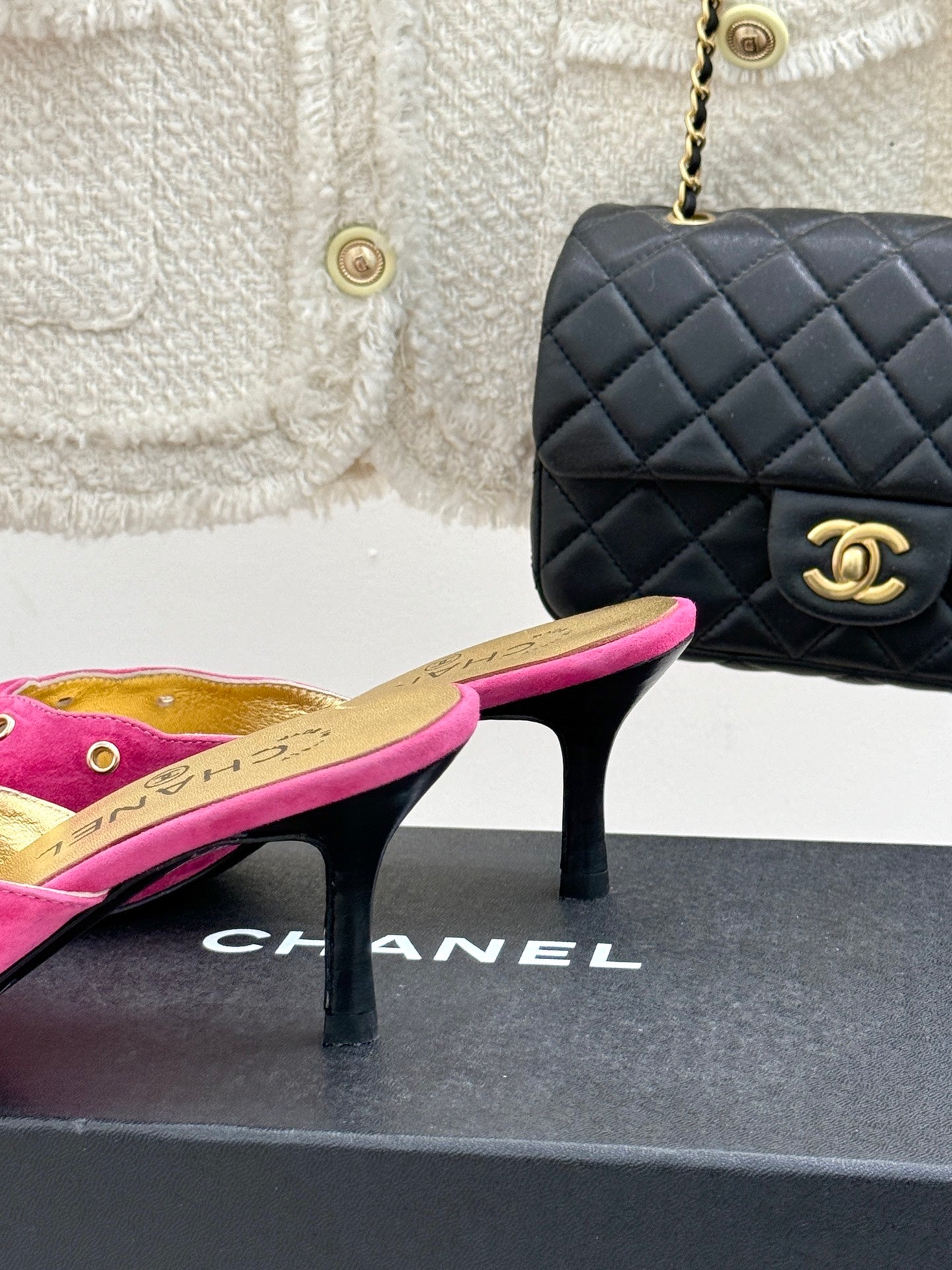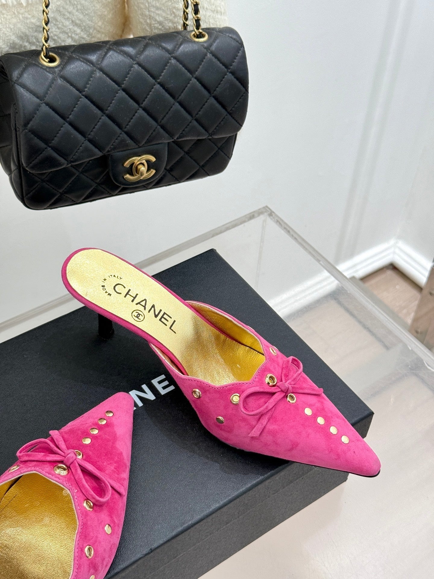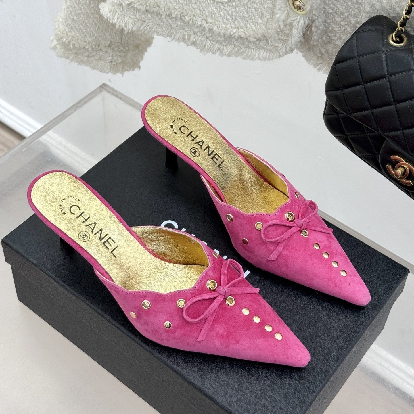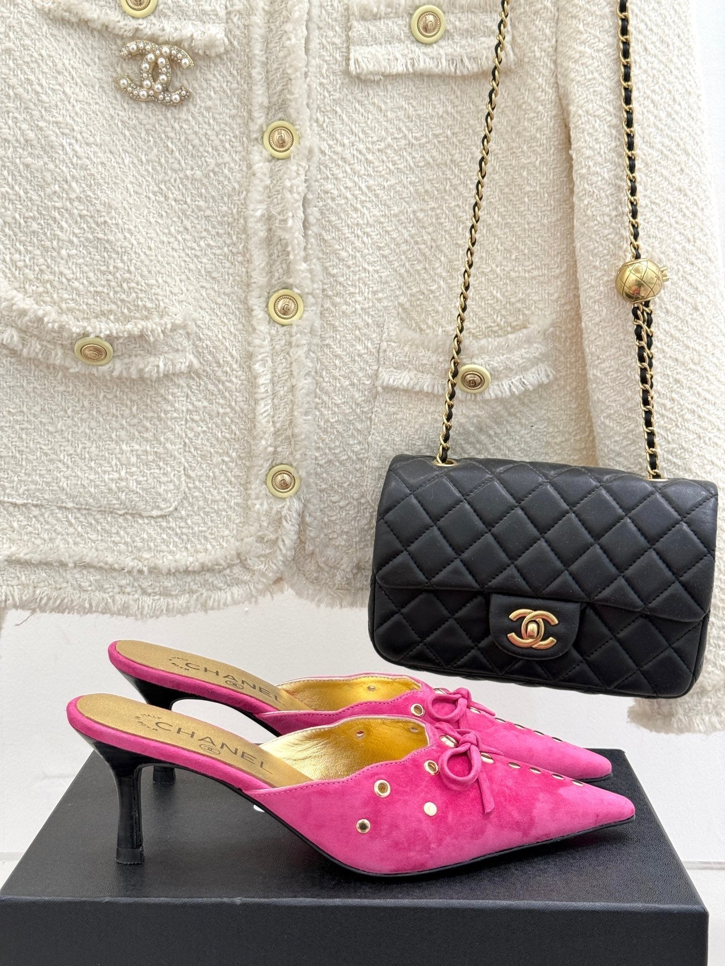 CC 25C Ciabatte con tacco alto e punta a fiocco 60 mm in pelle scamosciata rosa 265656