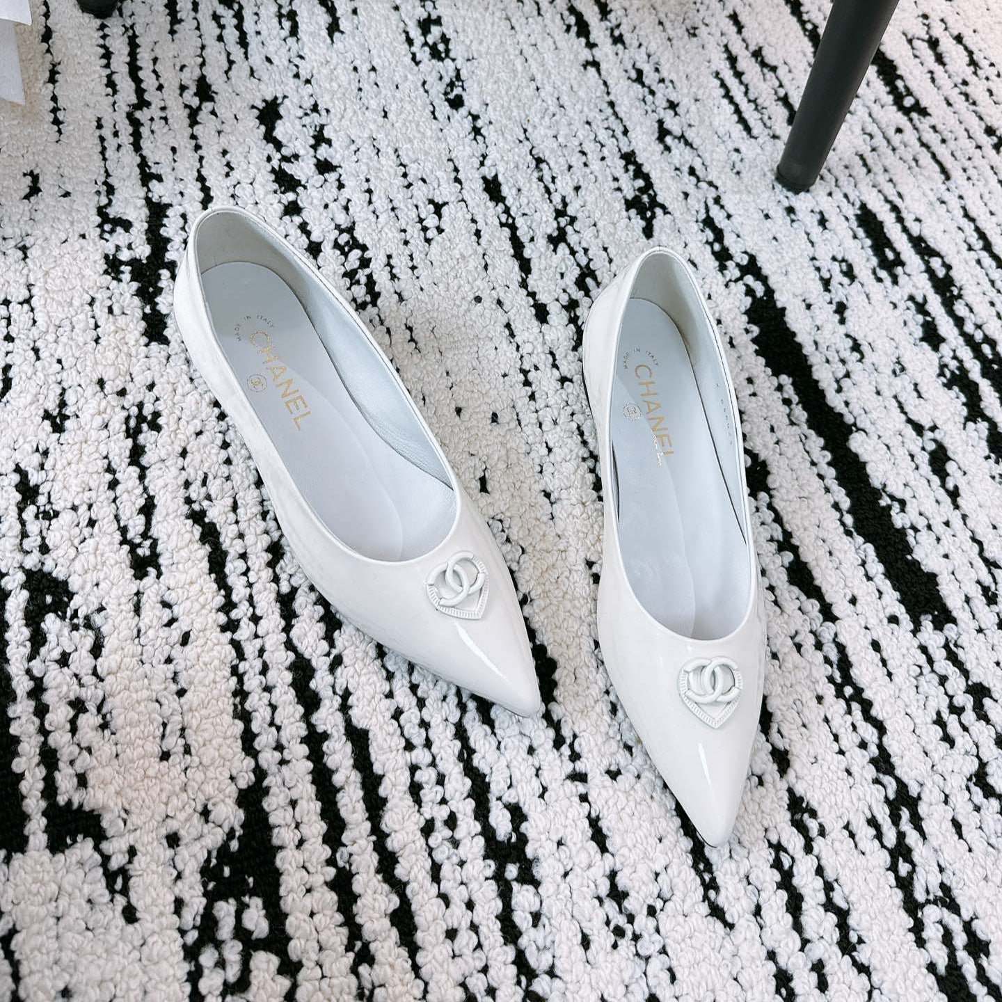 Ballerine CC in pelle di agnello bianca lucida 144669