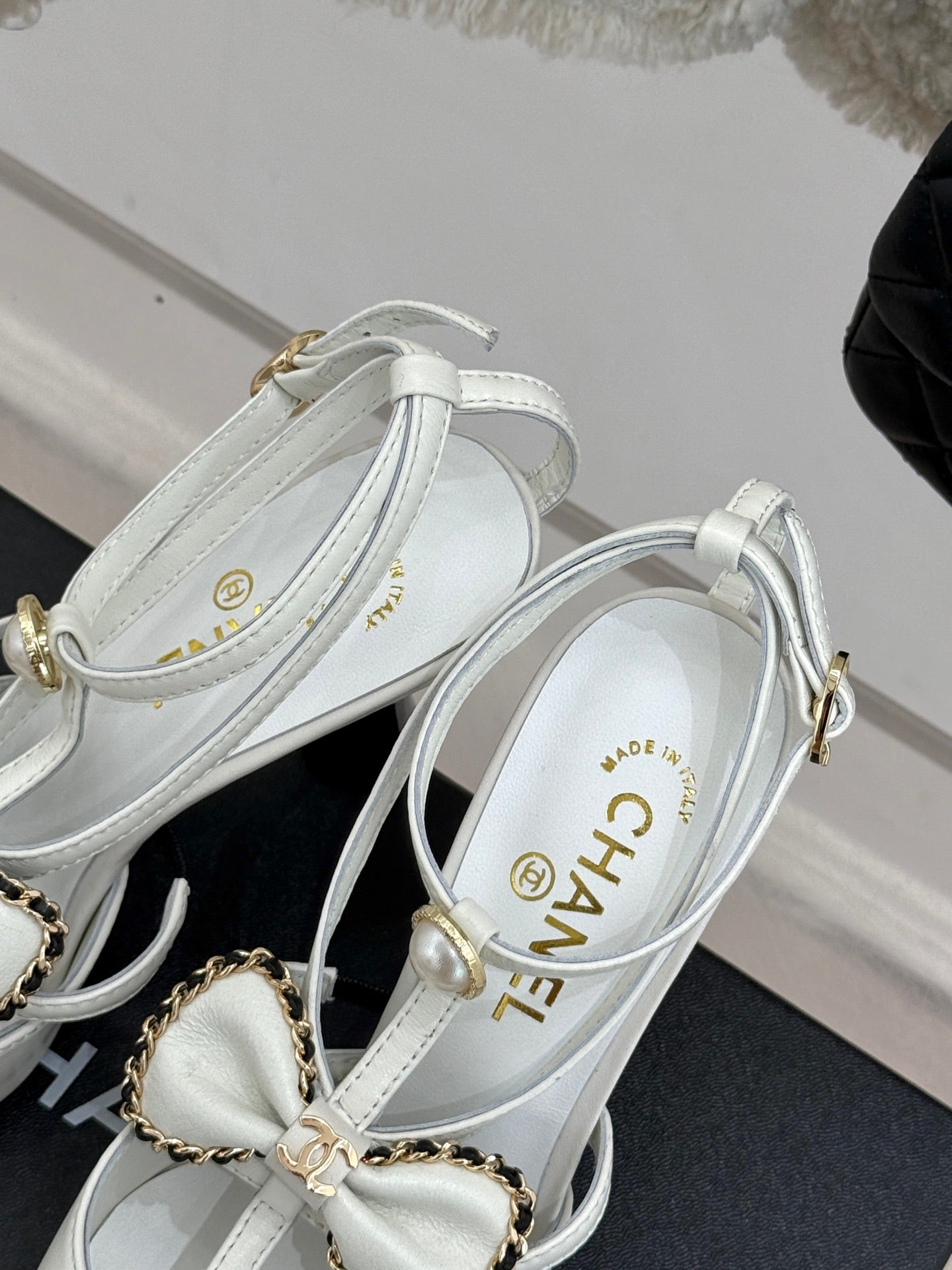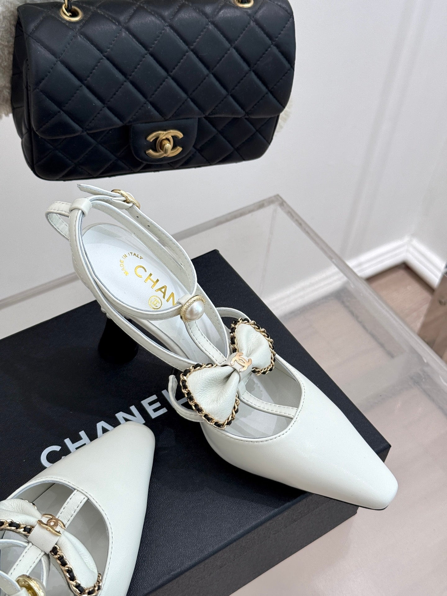 SLINGBACKS CON FIOCCO A CATENA E TACCO ALTO 8 CM IN CAMOSCIO BIANCO