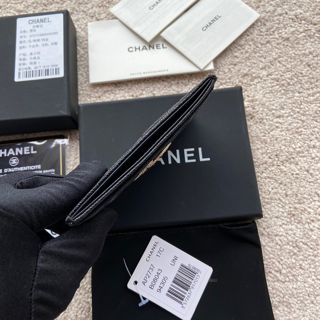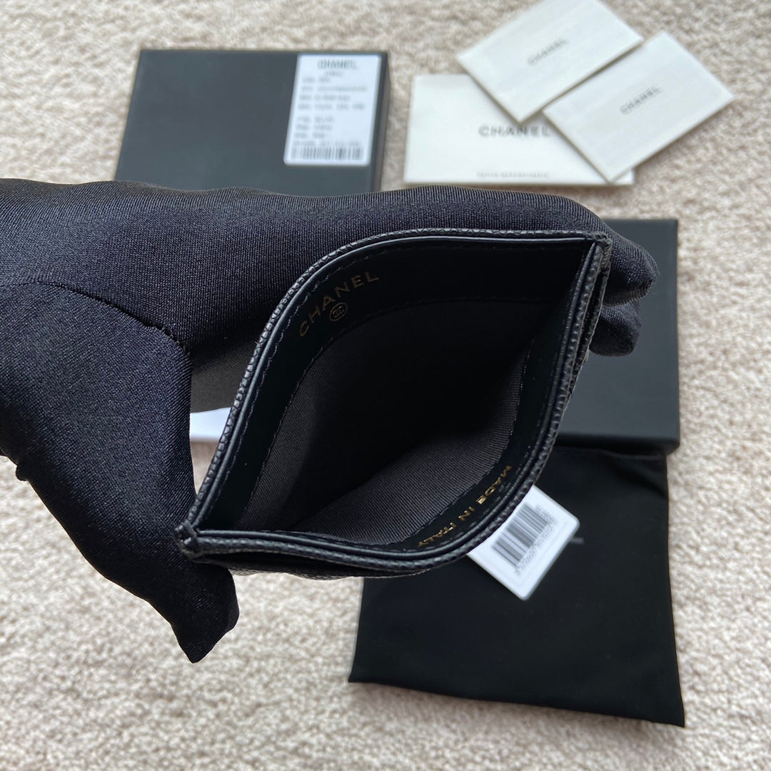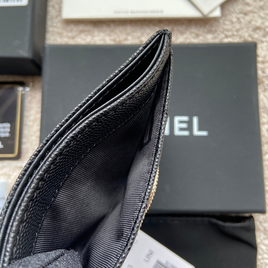 porta carte di credito 11 cm caviale nero hardware oro chiaro