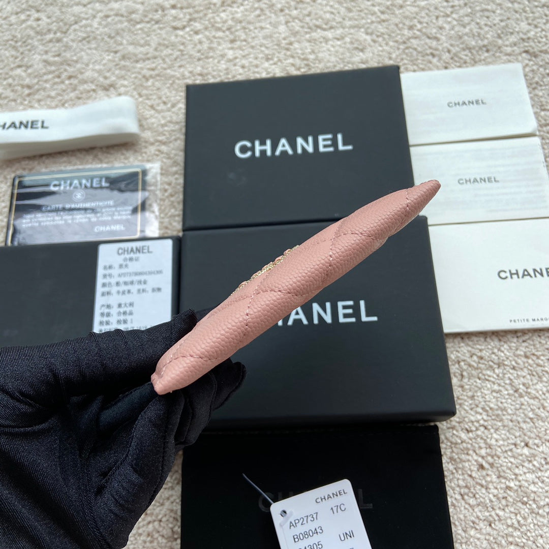 porta carte di credito 11 cm caviale rosa hardware oro chiaro