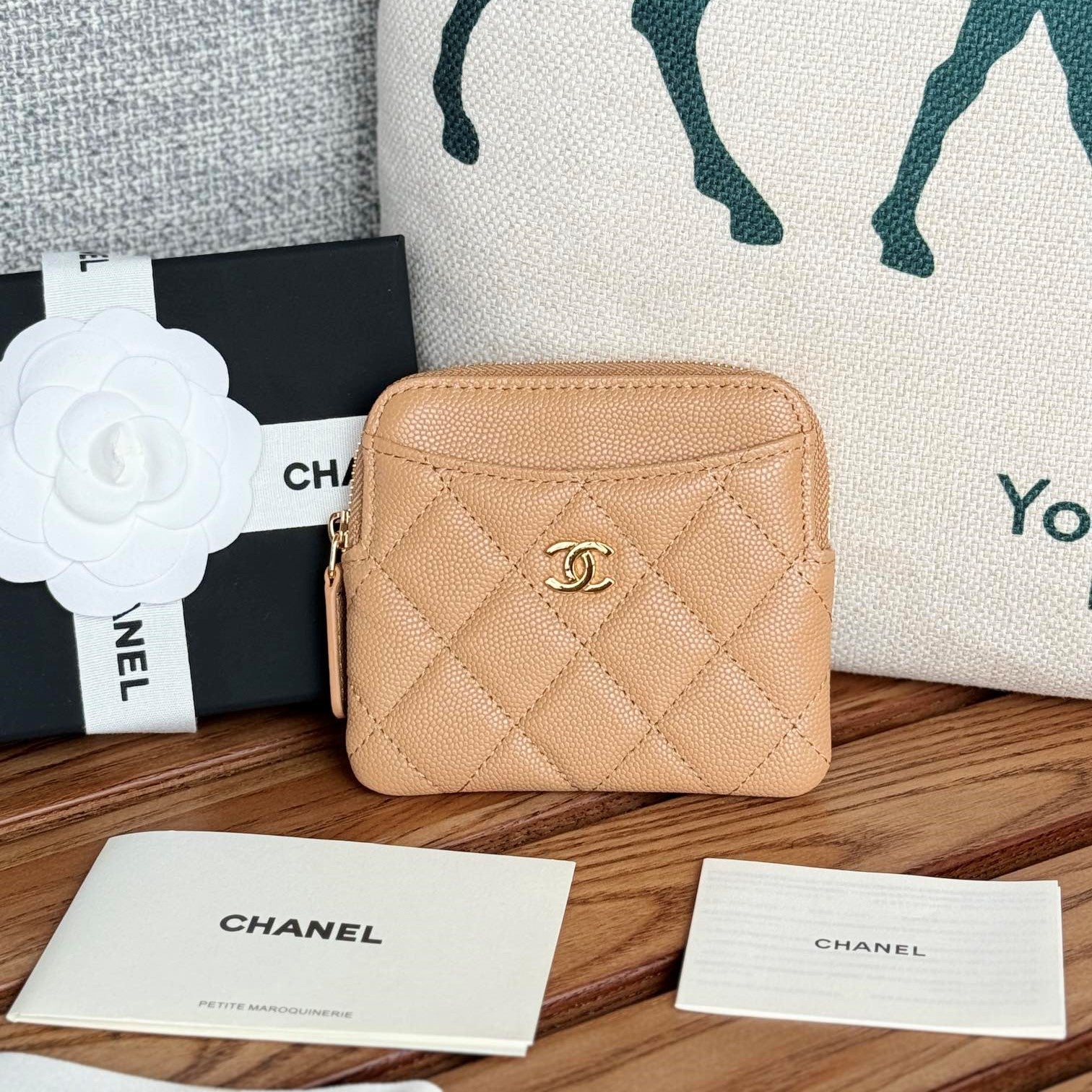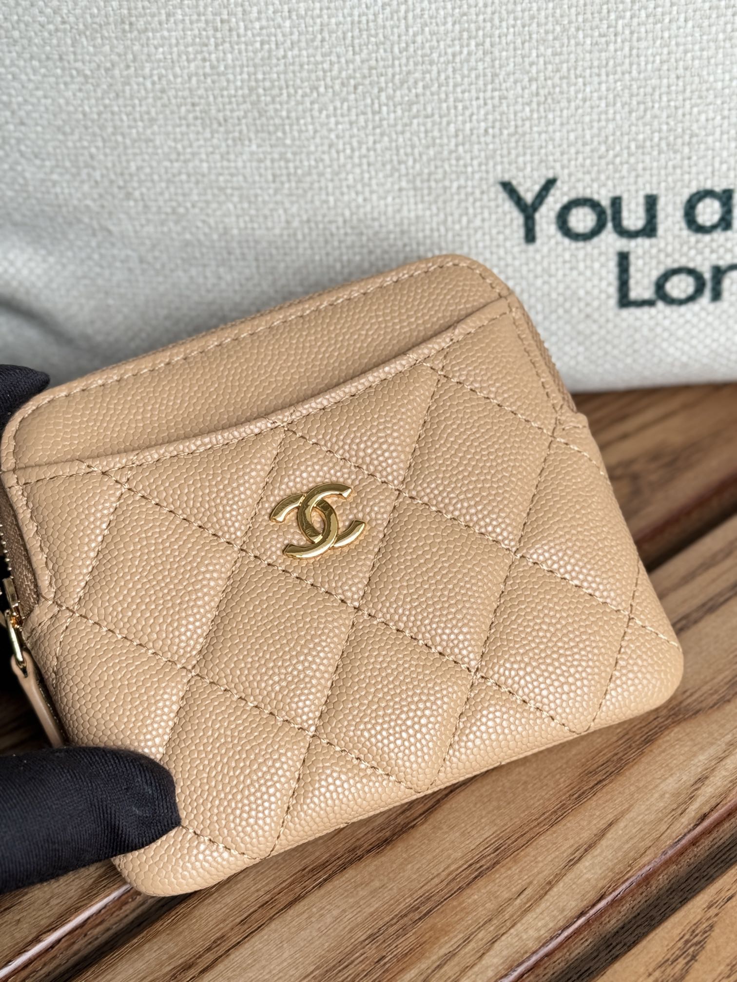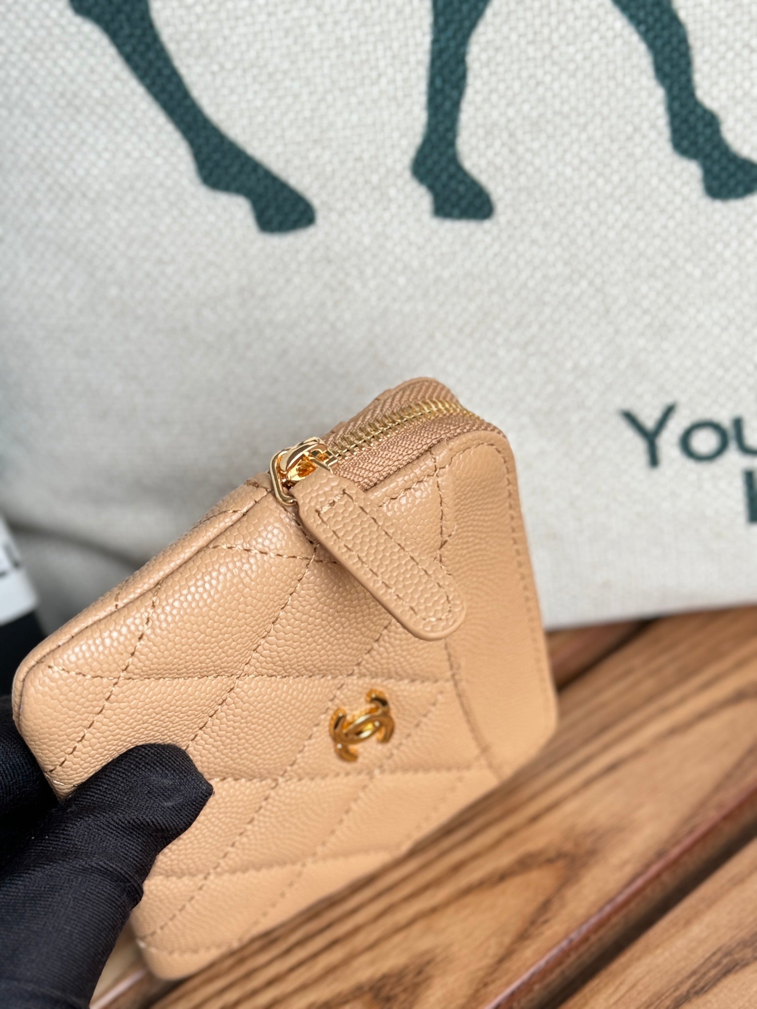 Portafoglio porta carte CC Zip Beige Gold Metal Caviar 240603