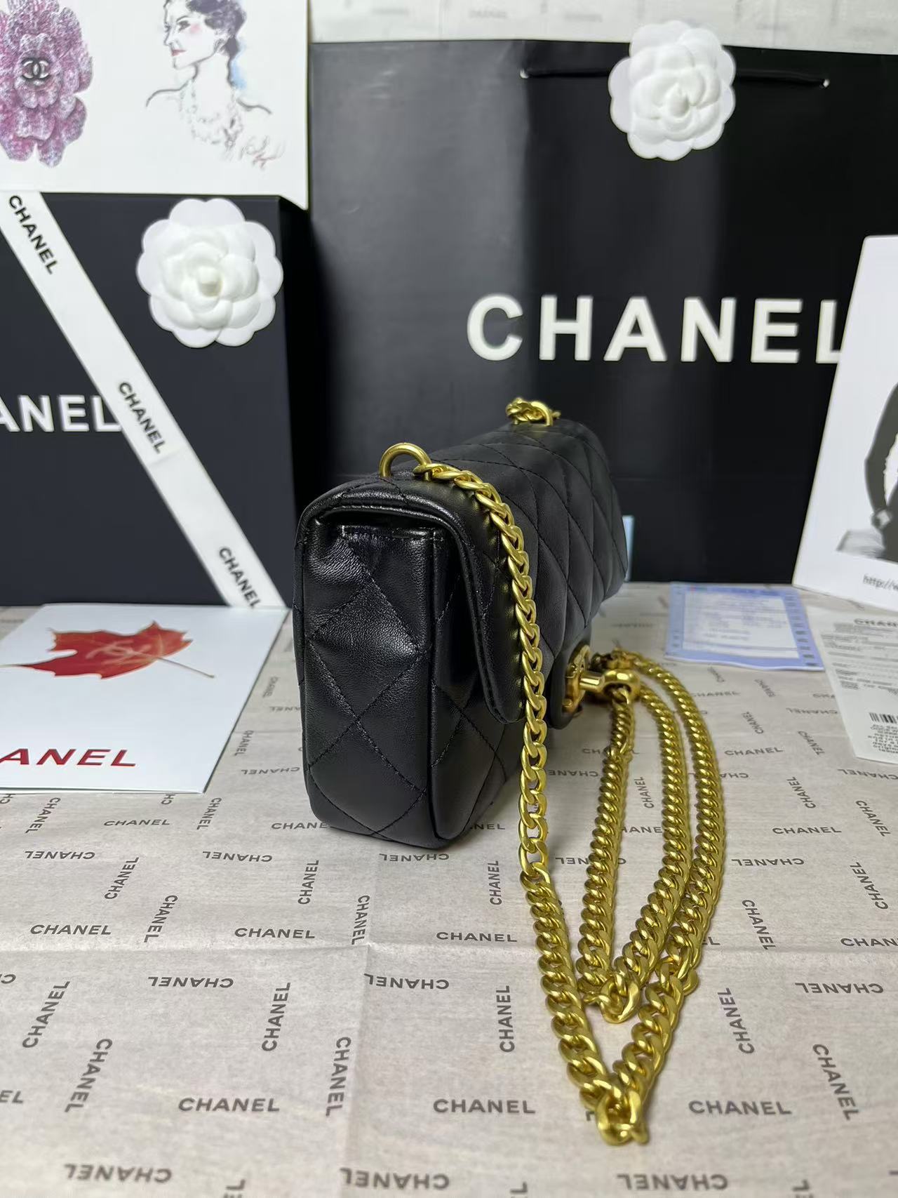25C Mini Flap 19cm Pelle di agnello nera Hardware a forma di cuore dorato
