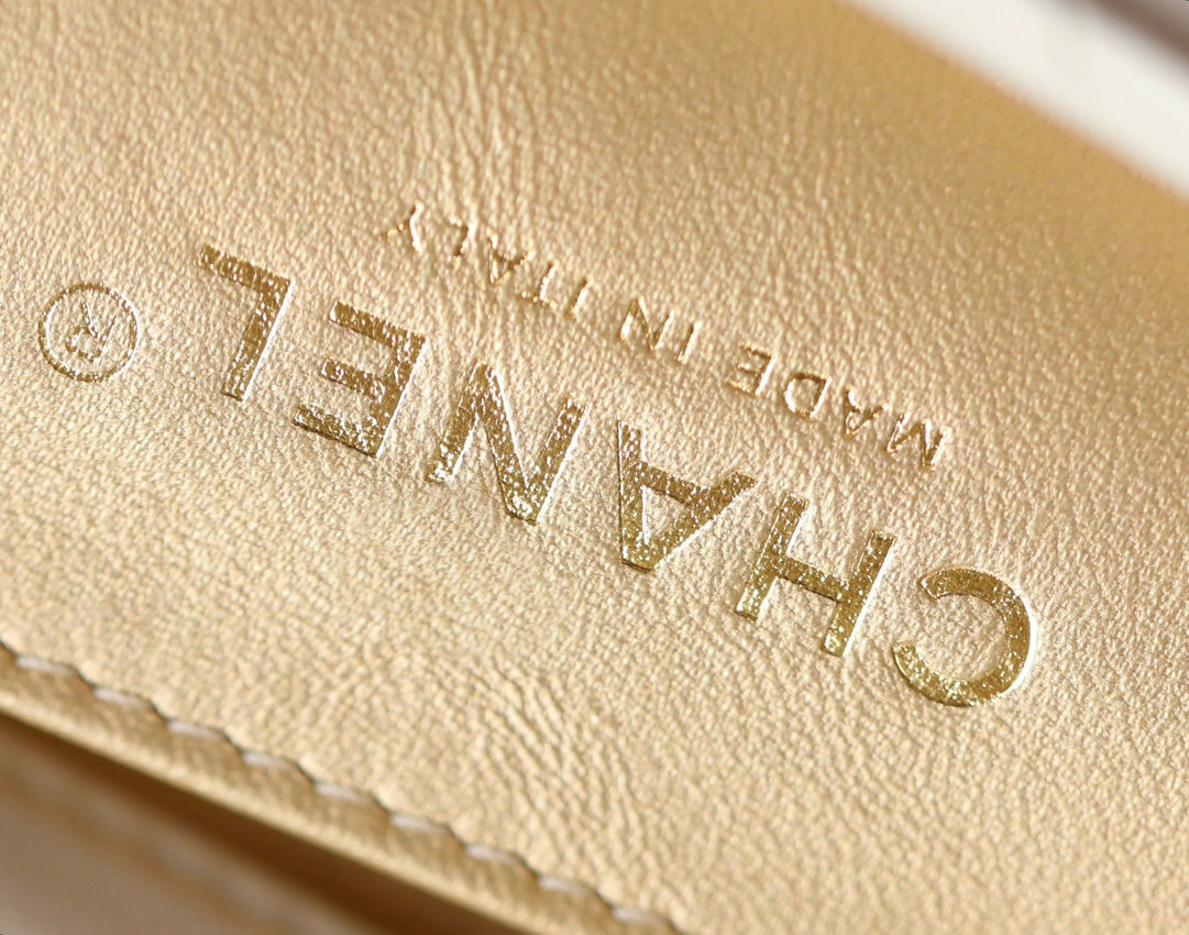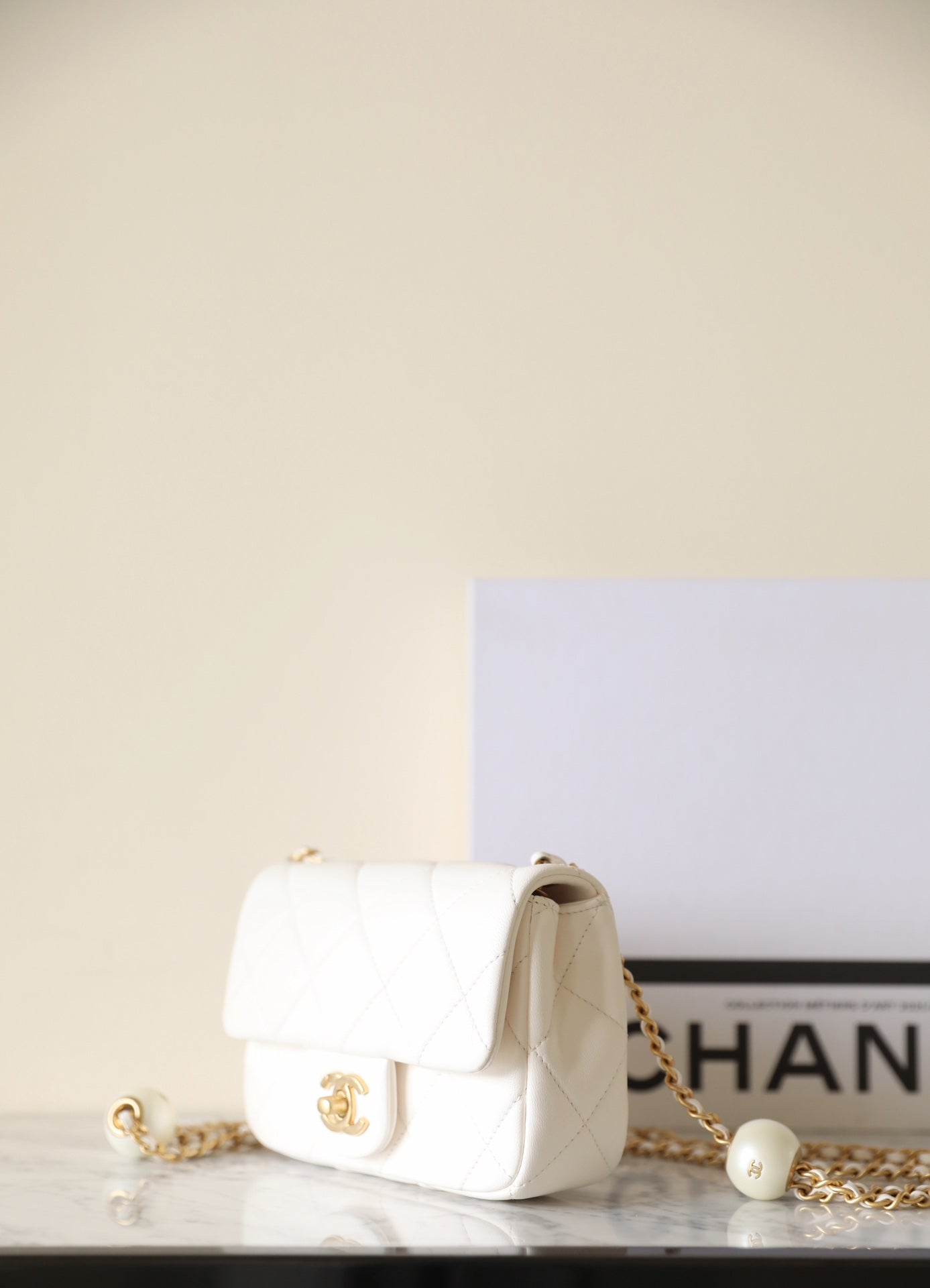 borsa mini con patta cc 24s 17cm in pelle di agnello bianca con perle