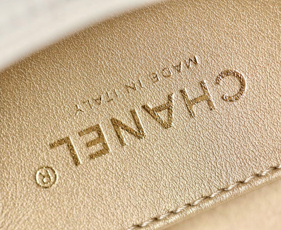 borsa mini con patta cc 24s 20 cm in pelle di agnello bianca con perle